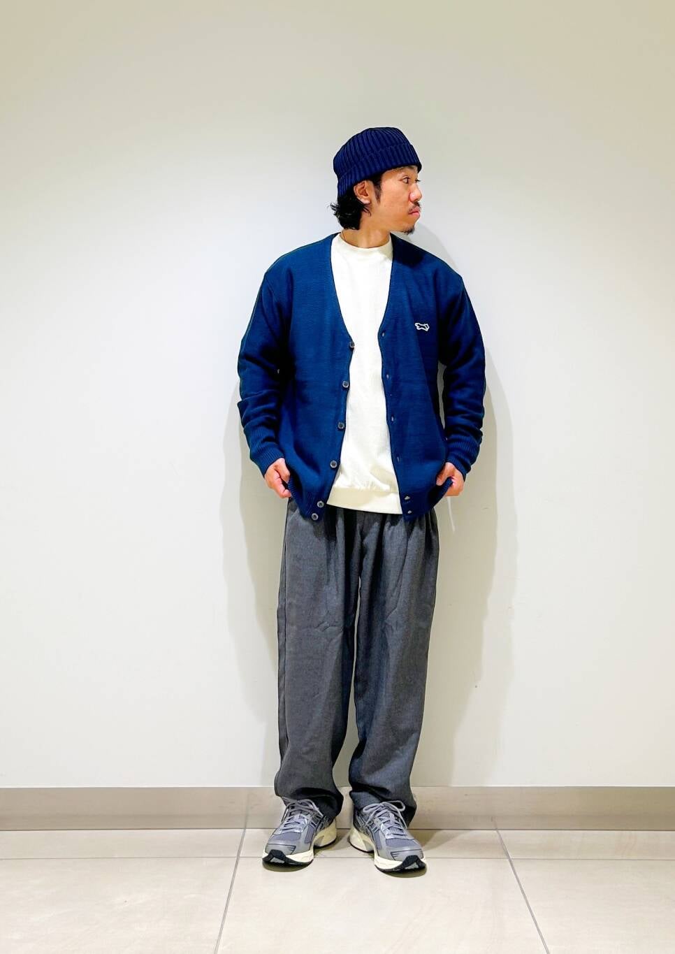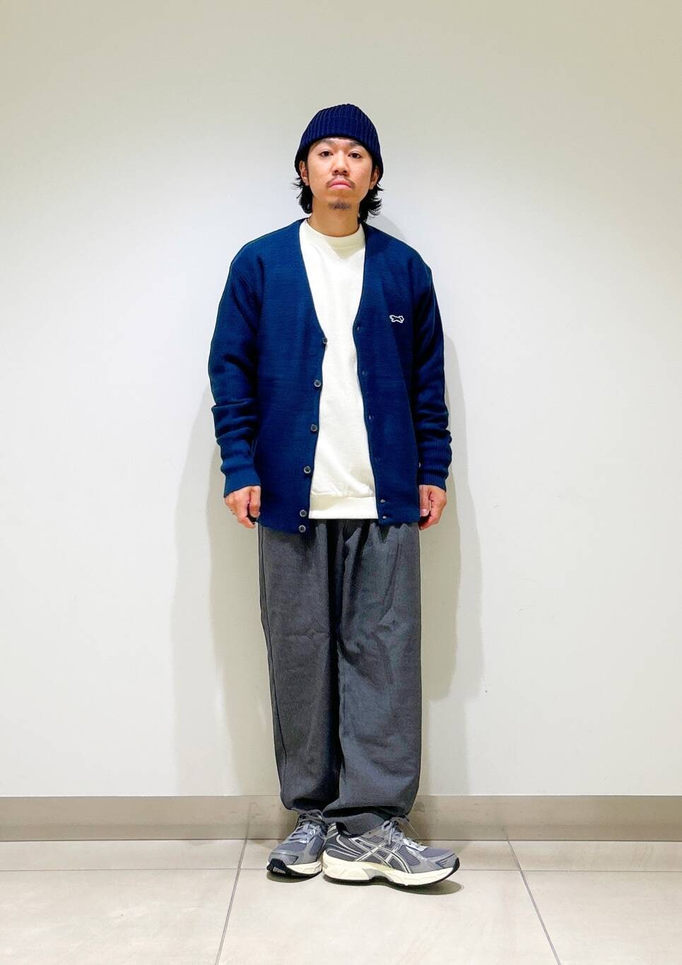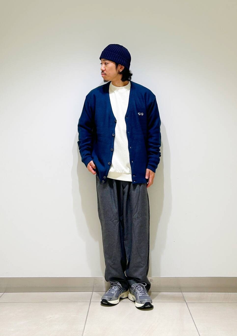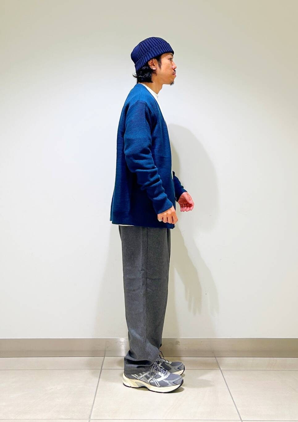 今回はfoxカーディガンとツータックイージートラウザーを使用したコーディネート。