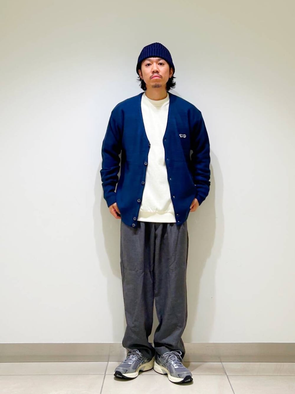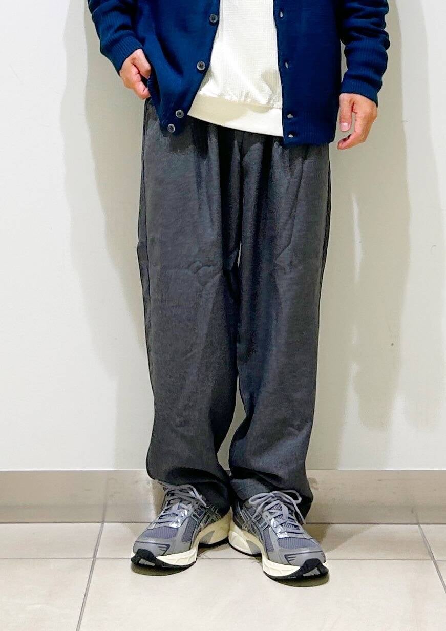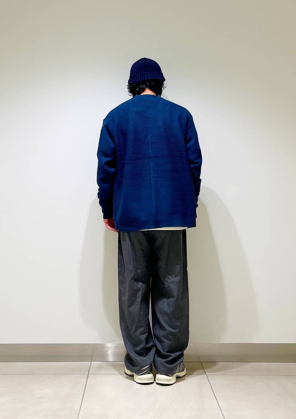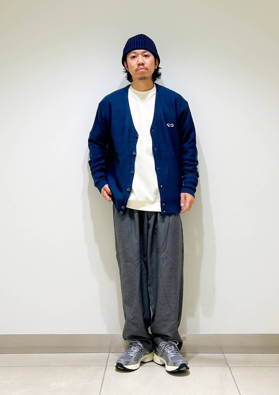 今回はfoxカーディガンとツータックイージートラウザーを使用したコーディネート。