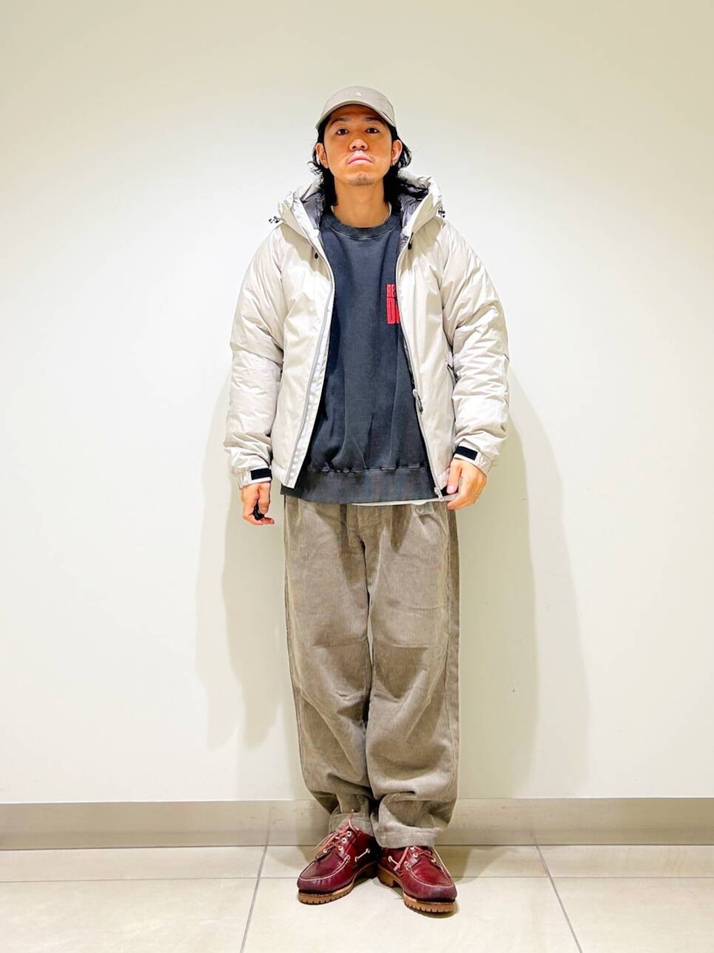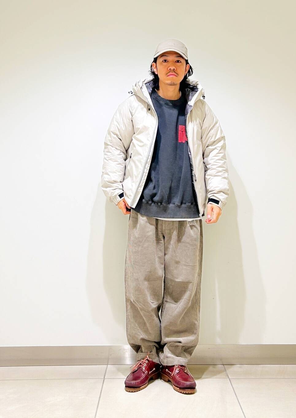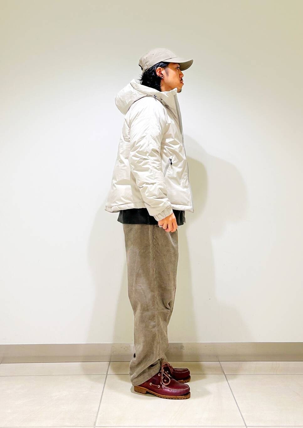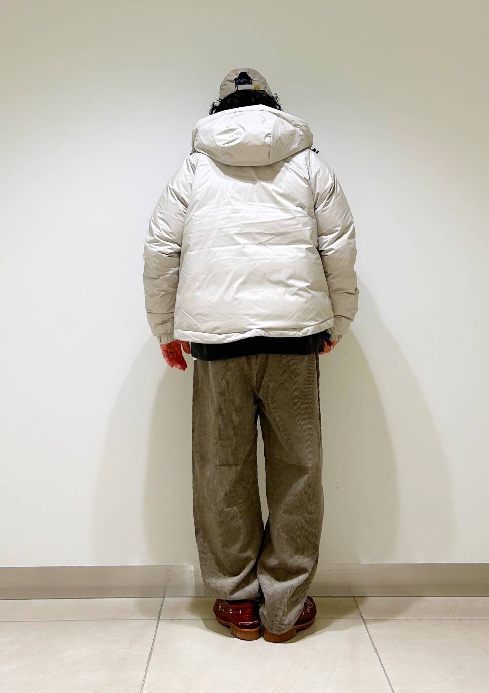 今回はnangaダウンブルゾンとコーデュロイトラウザーを使用したコーディネート。