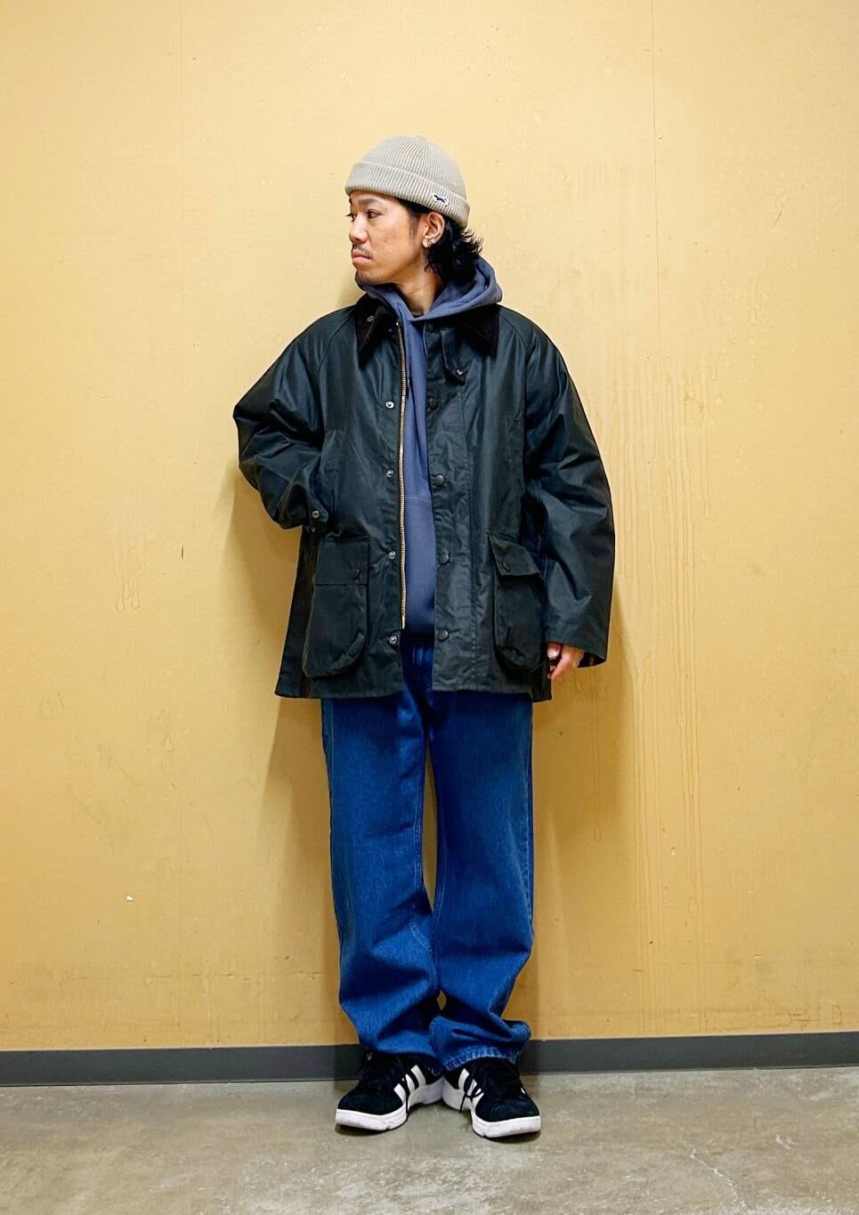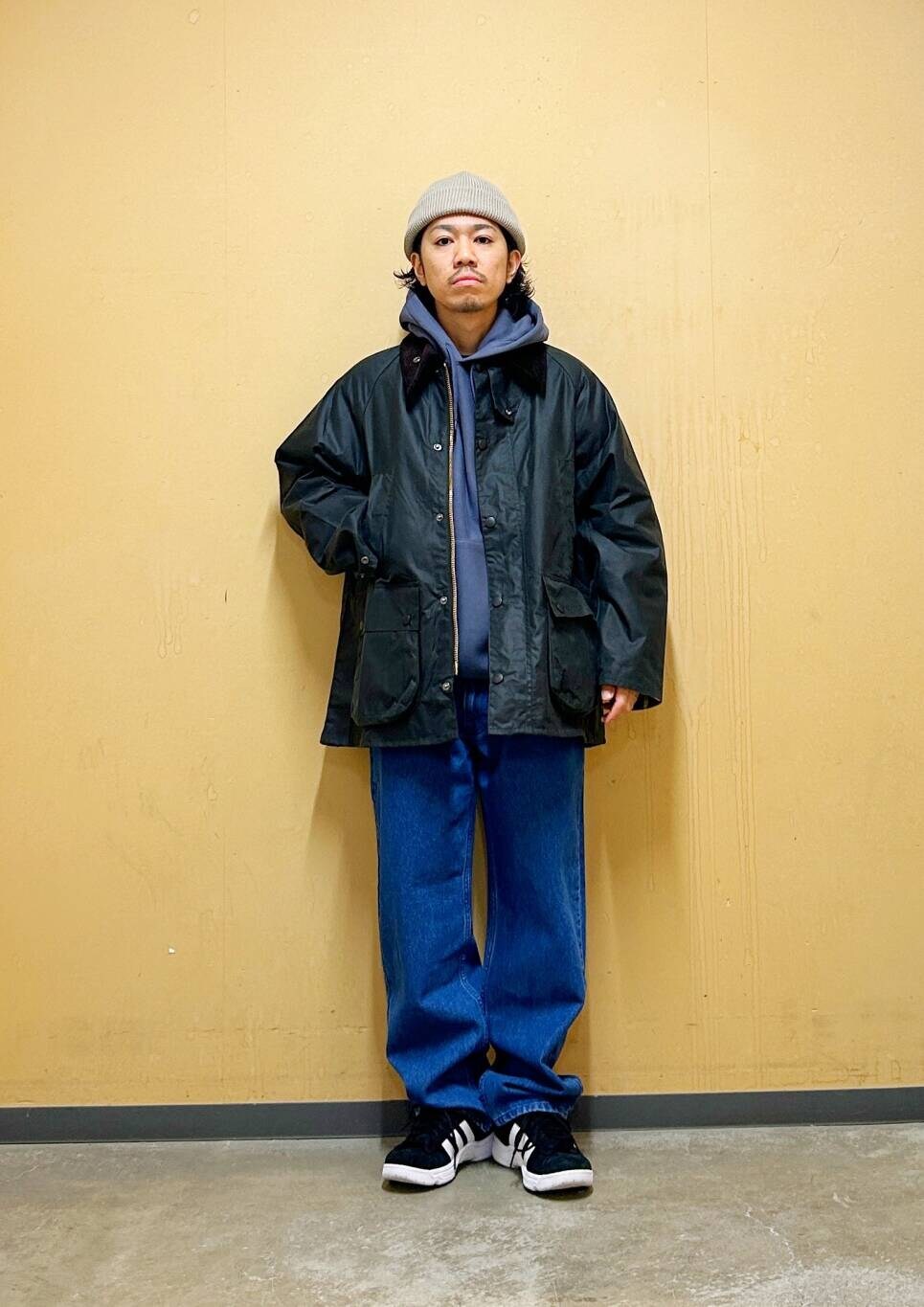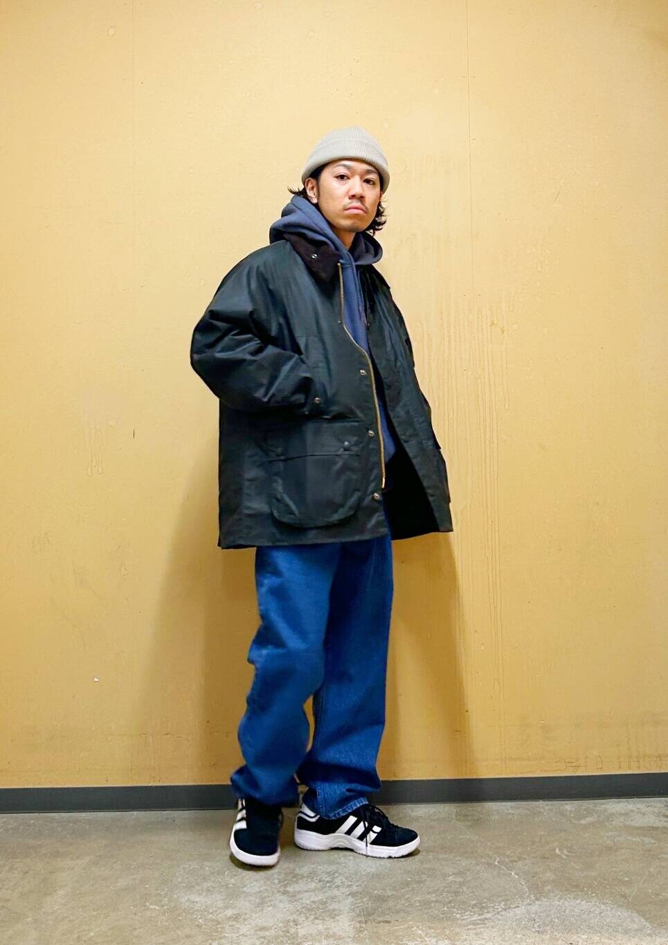 今回はBarbour OS BEDALE WAX JACKETとデニムパンツを使用したコーディネート。