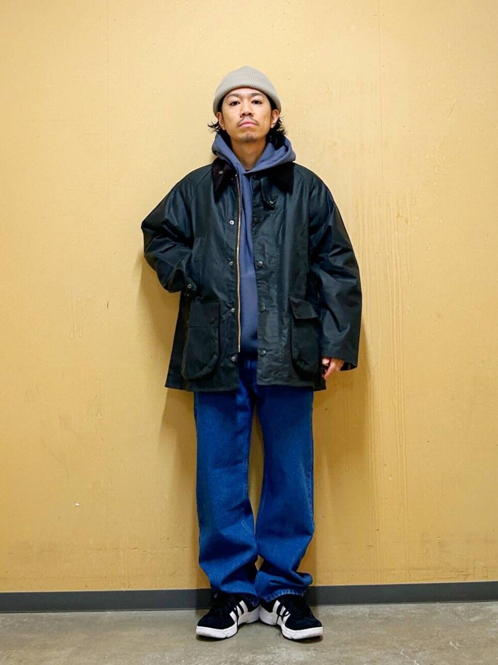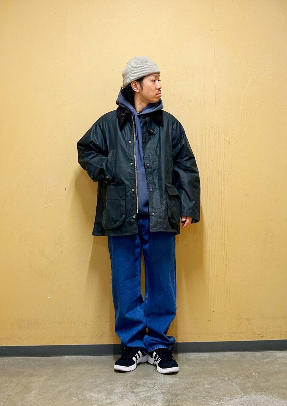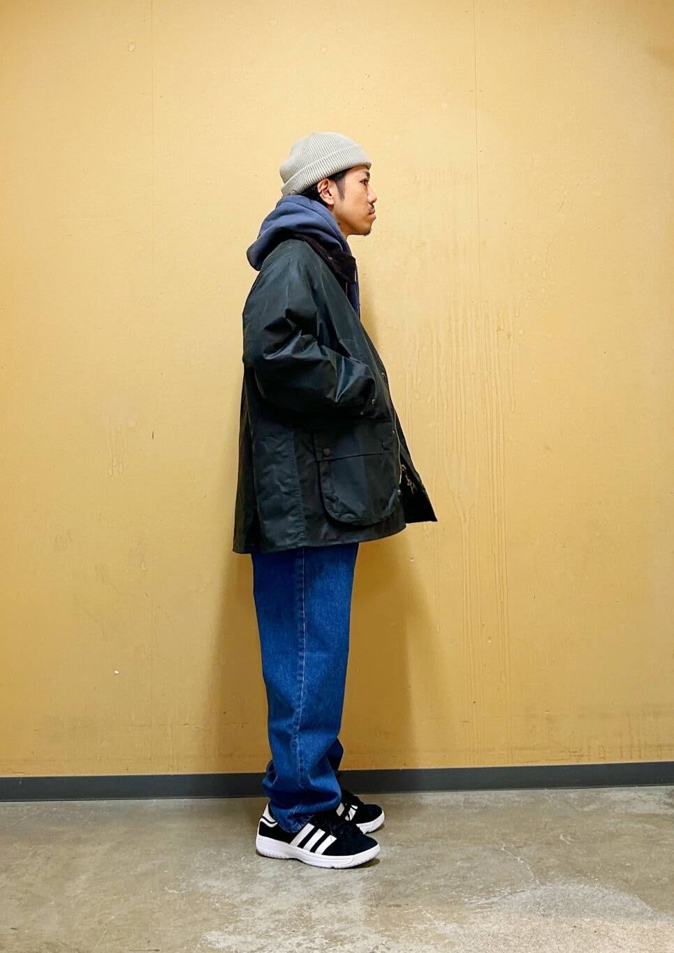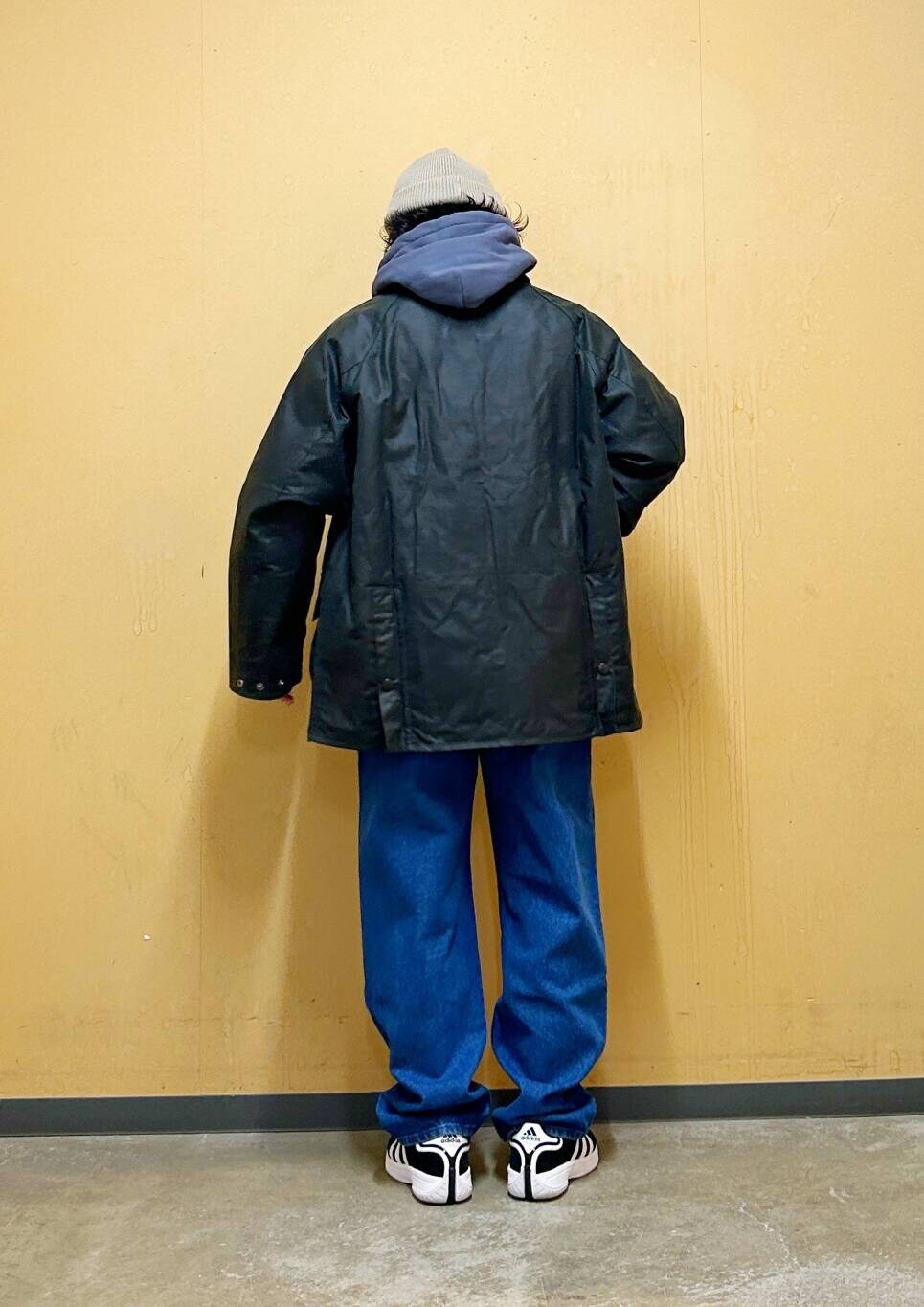 今回はBarbour OS BEDALE WAX JACKETとデニムパンツを使用したコーディネート。