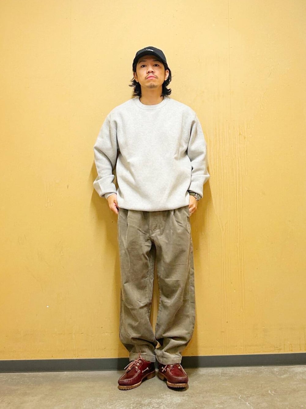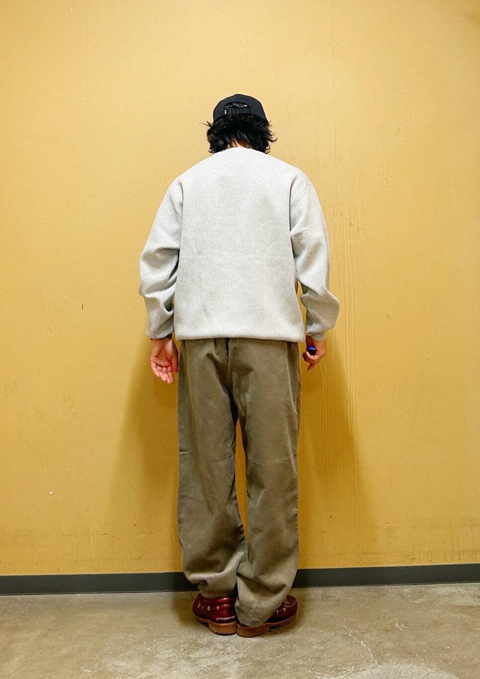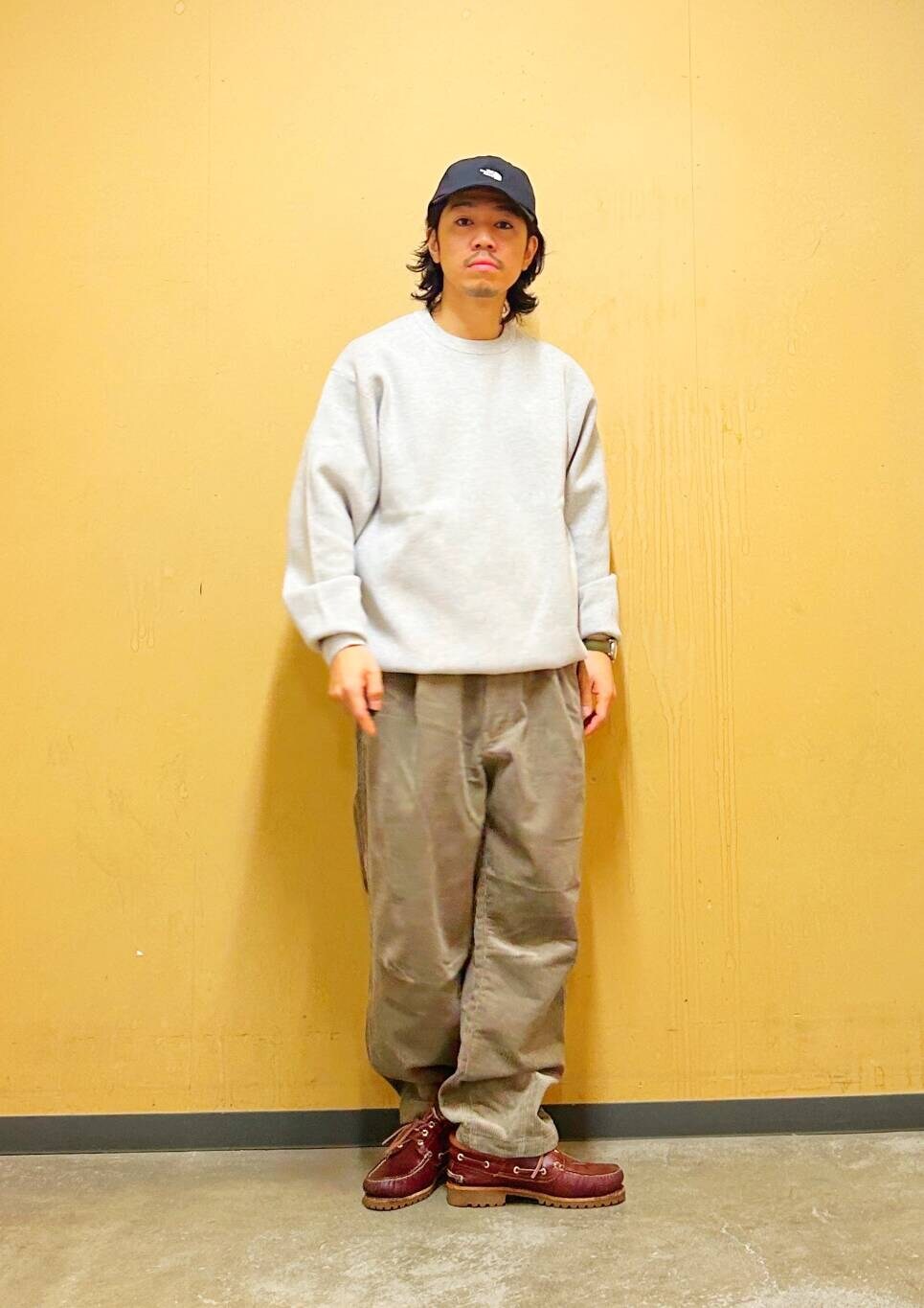 今回はミラノリブクルーネックニットとコーデュロイトラウザーを使用したコーディネート。