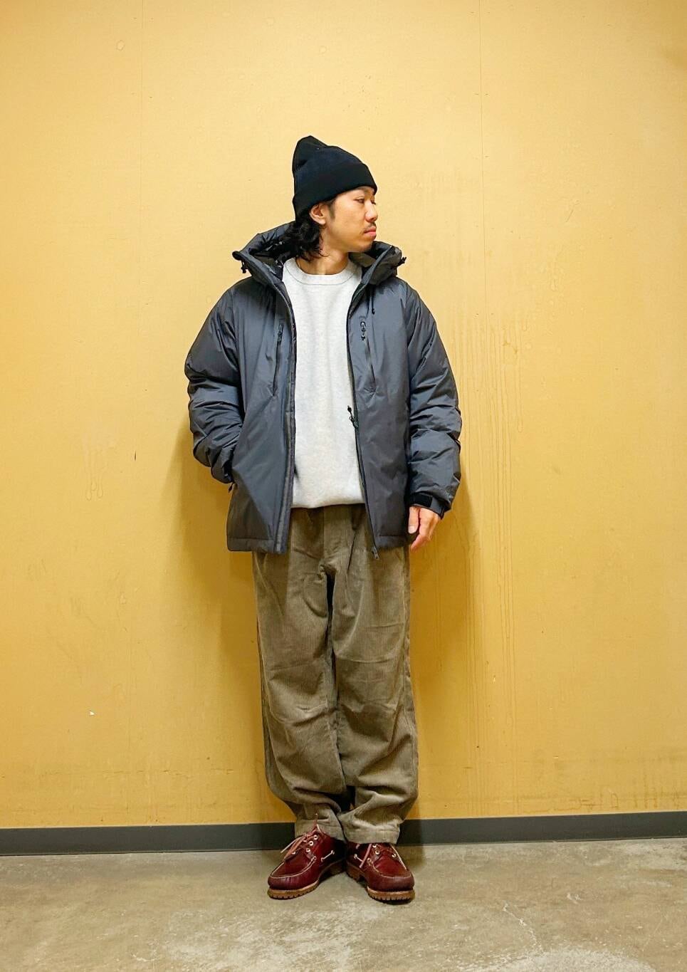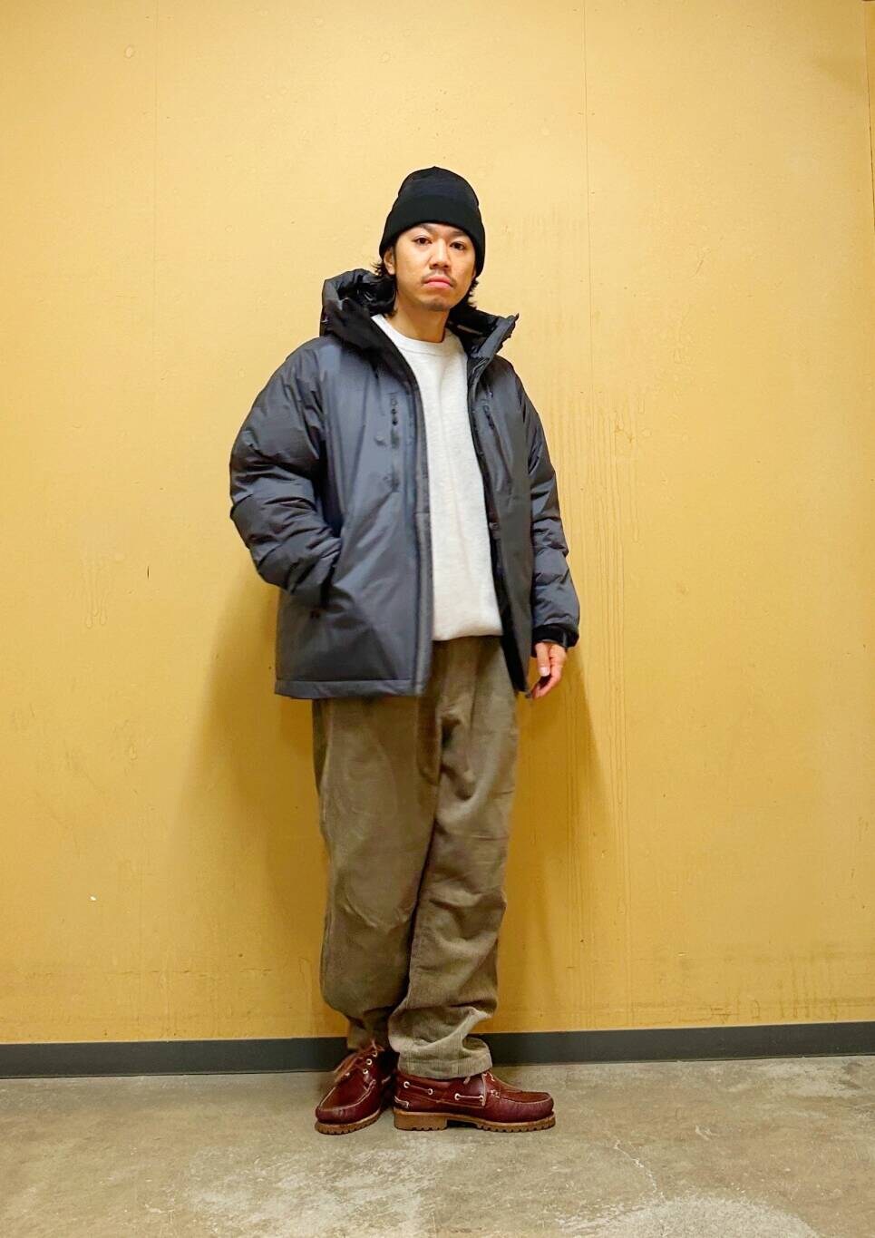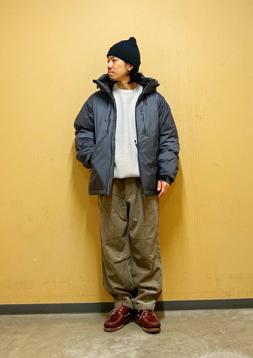 今回はnangaダウンブルゾンとコーデュロイトラウザーを使用したコーディネート。