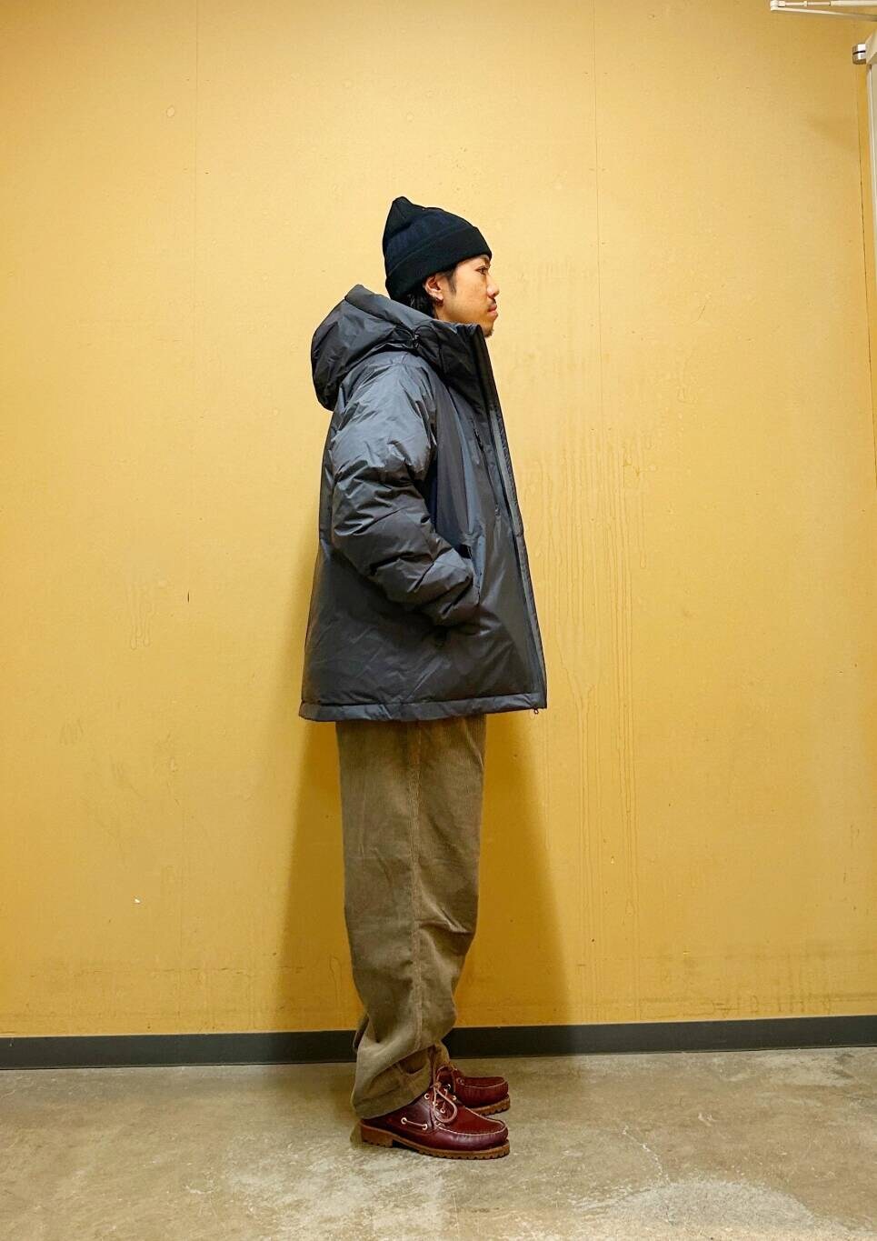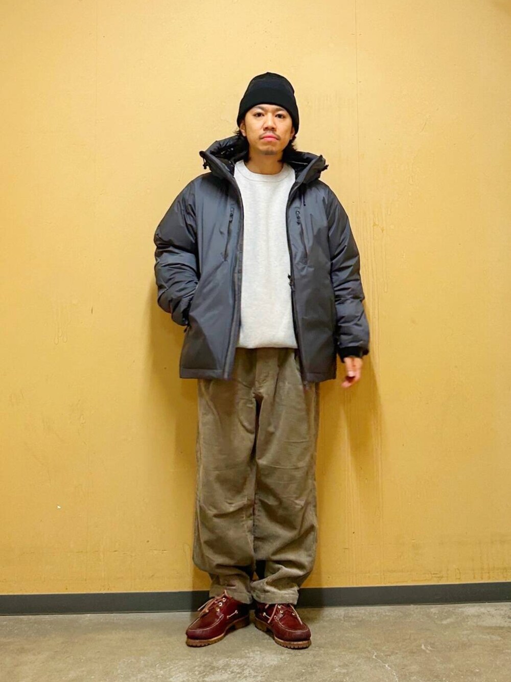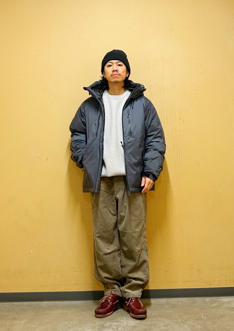 今回はnangaダウンブルゾンとコーデュロイトラウザーを使用したコーディネート。