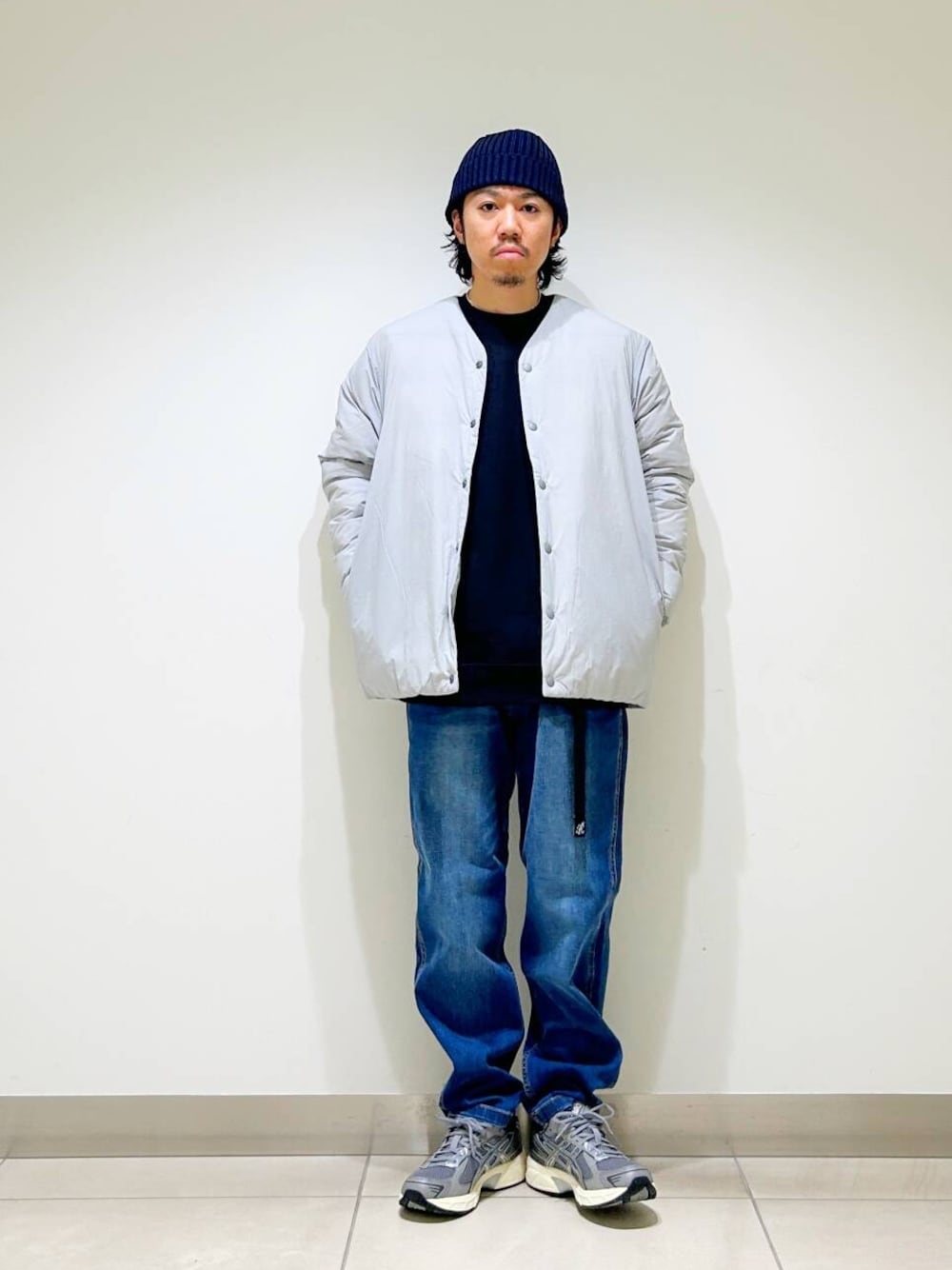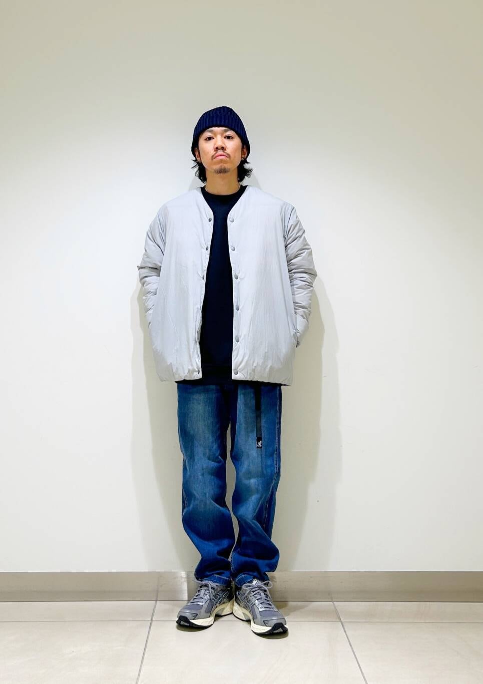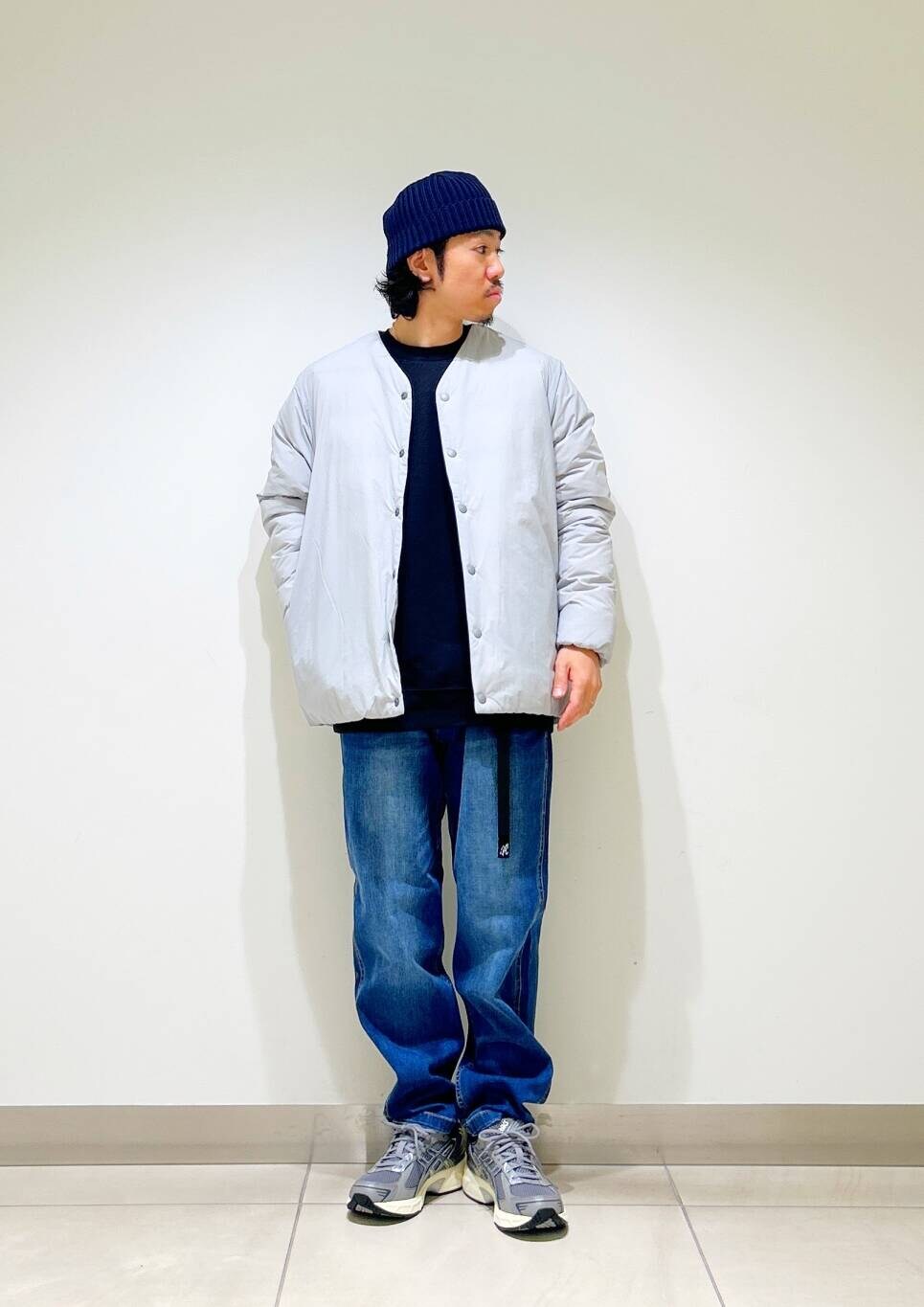 今回はnangaインナーダウンとグラミチ別注デニムパンツを使用したコーディネート。