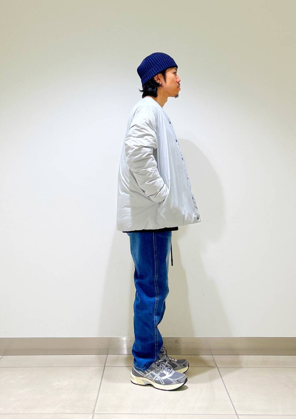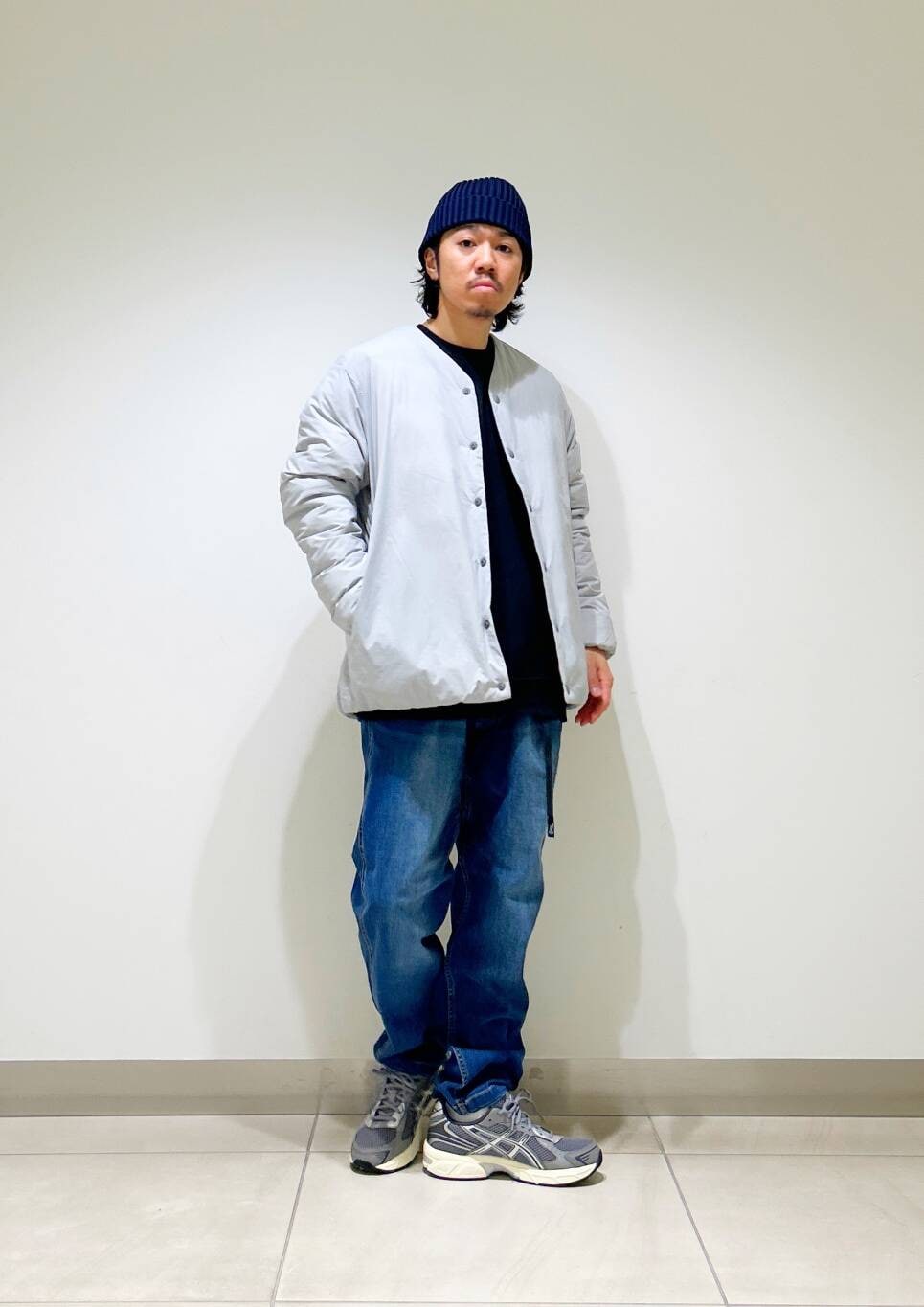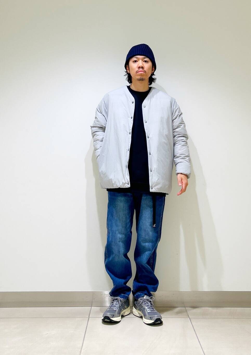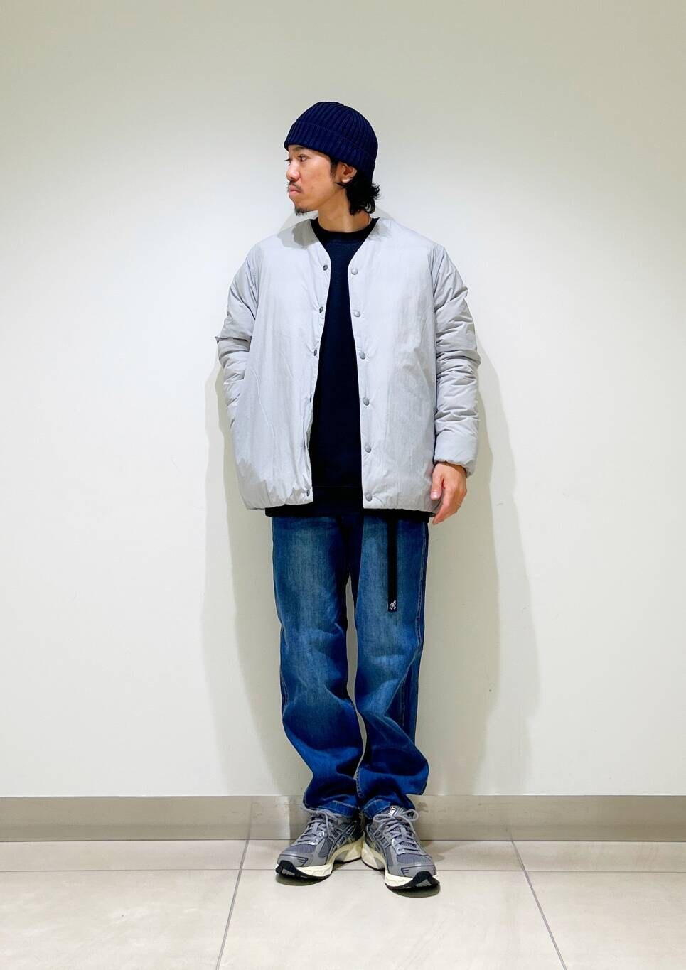 今回はnangaインナーダウンとグラミチ別注デニムパンツを使用したコーディネート。
