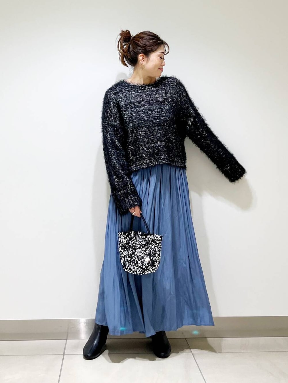 デコルテが綺麗に見える抜け感あるニットがおしゃれで可愛いです◎