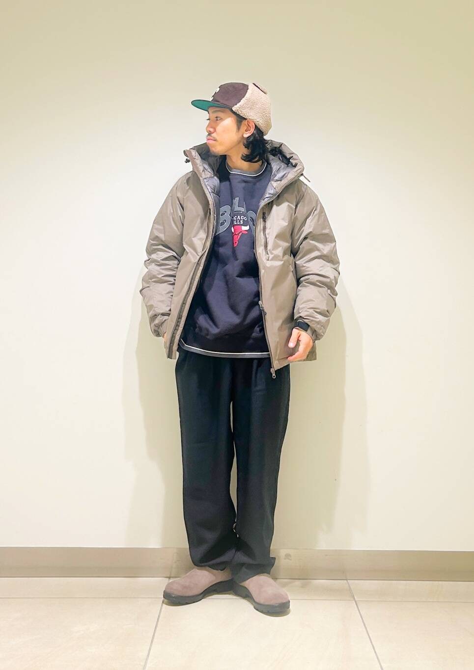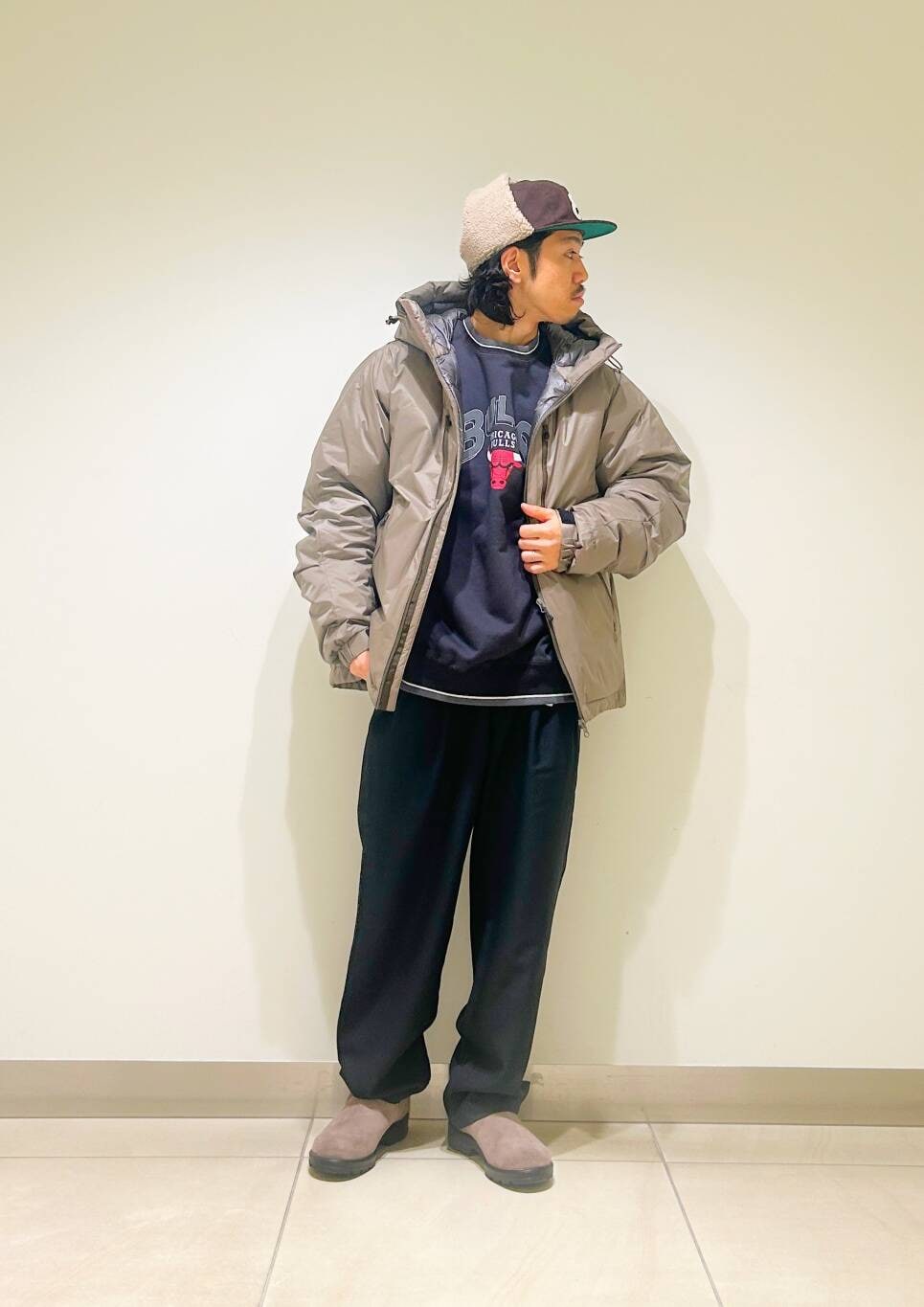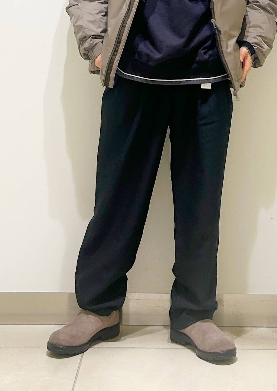 今回はnangaダウンブルゾンとツータックイージートラウザーを使用したコーディネート。 リラックスした履き心地にきれいなシルエット。