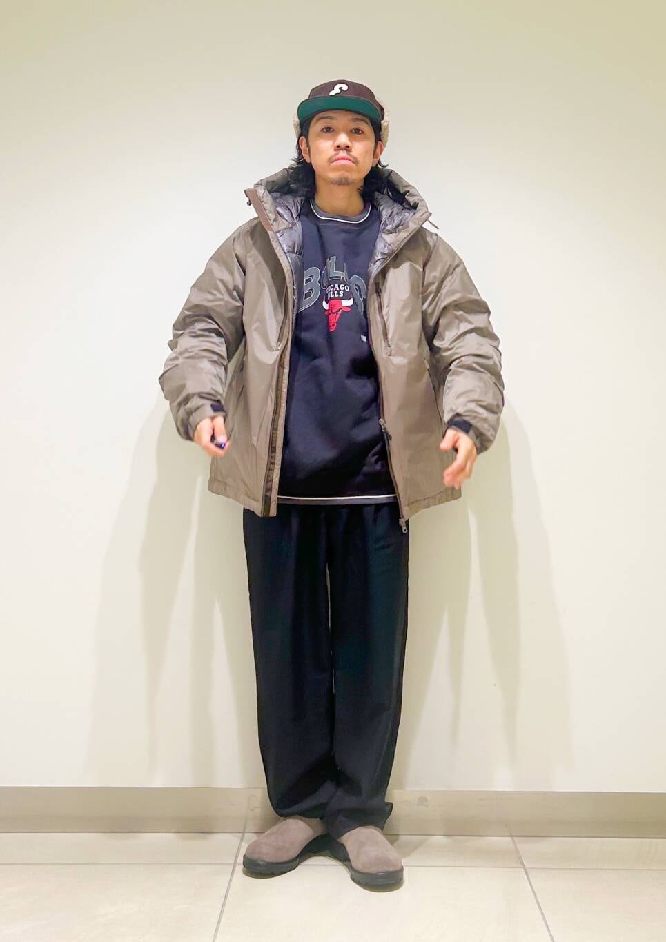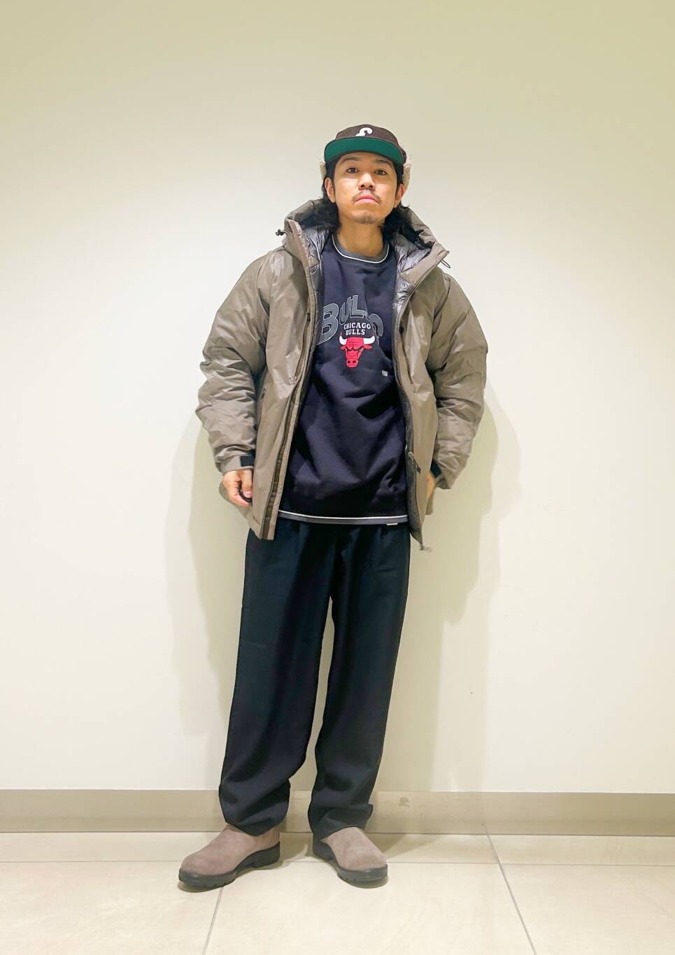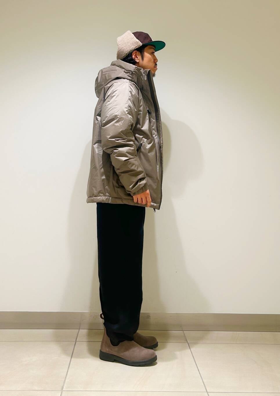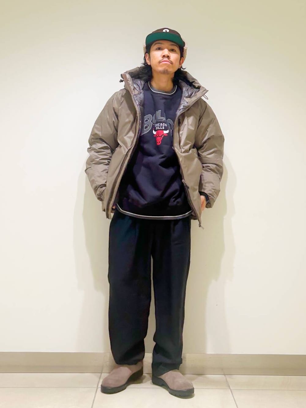 今回はnangaダウンブルゾンとツータックイージートラウザーを使用したコーディネート。 リラックスした履き心地にきれいなシルエット。