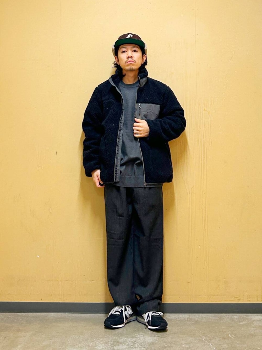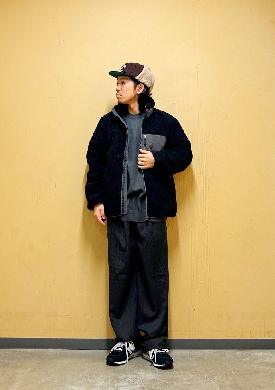 今回はurdボアブルゾンとウールライクトラウザーを使用したコーディネート。 風を通さない"防風ボアジャケット"