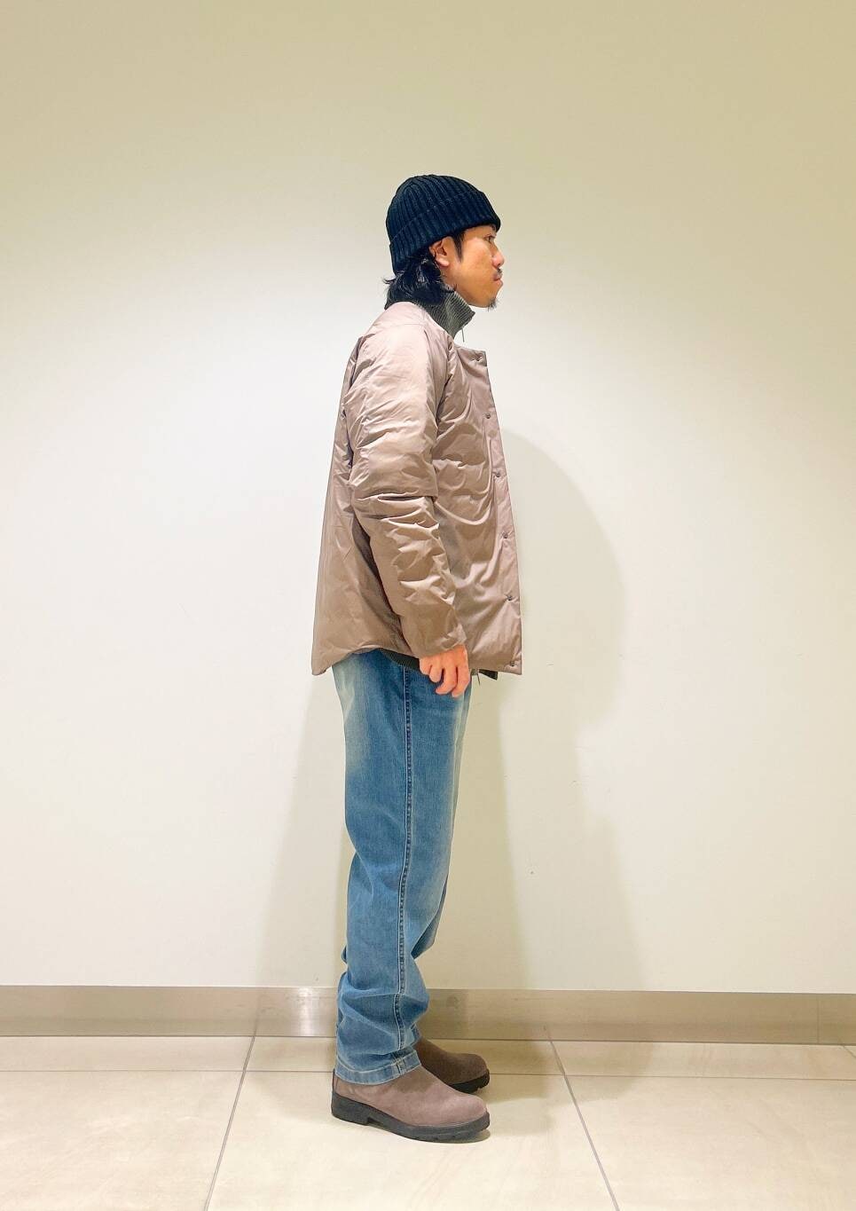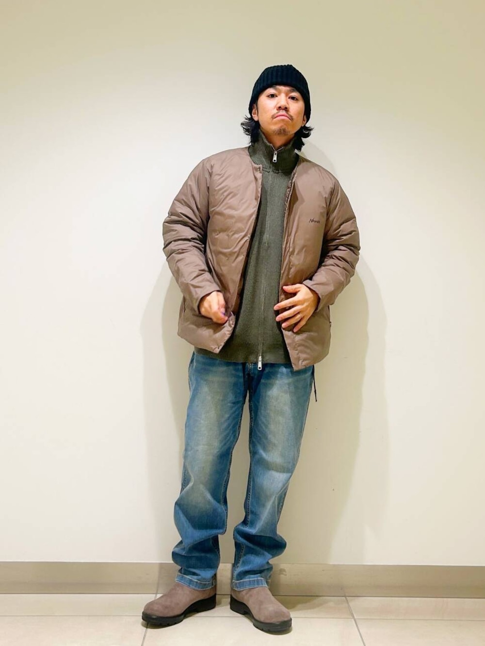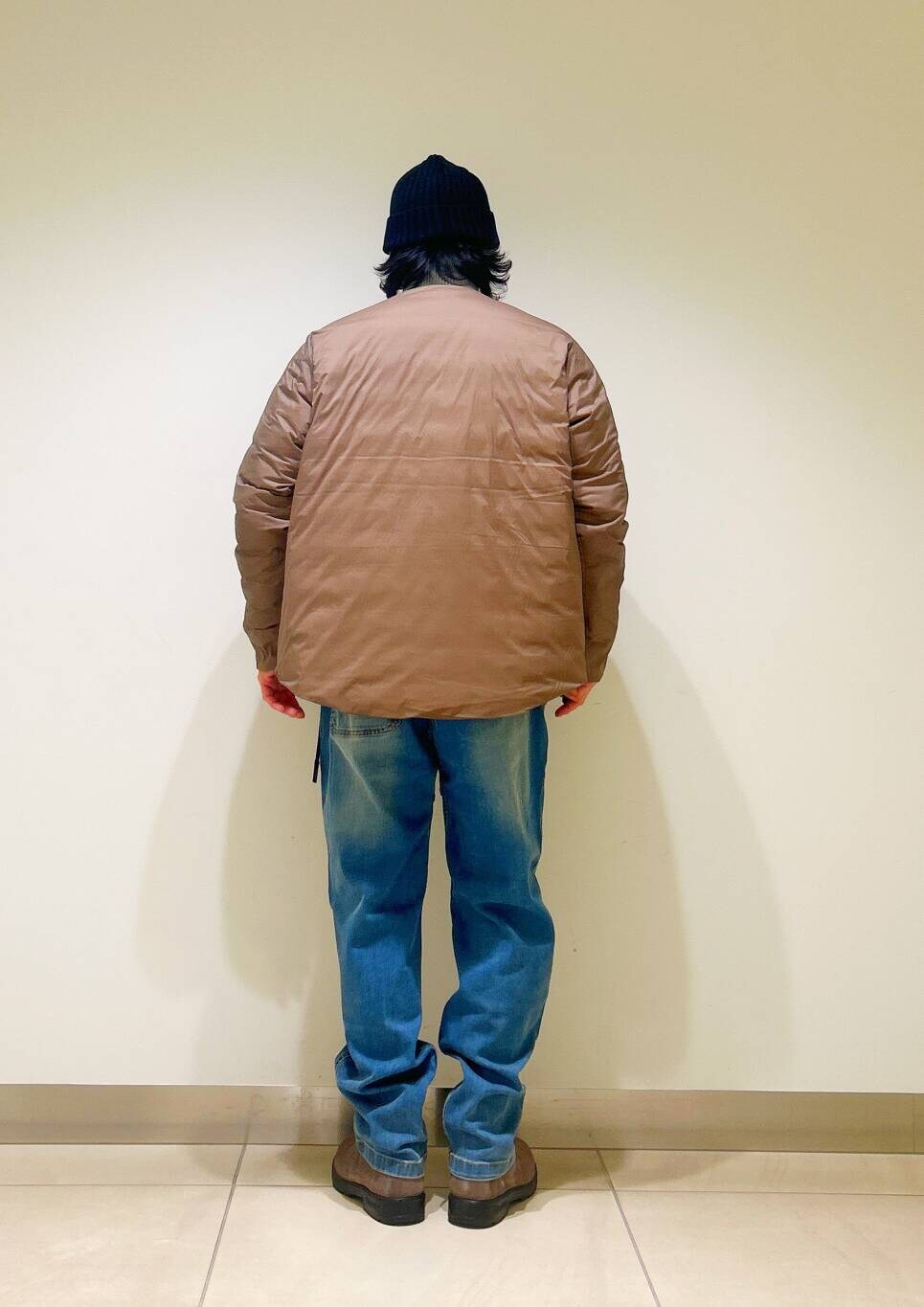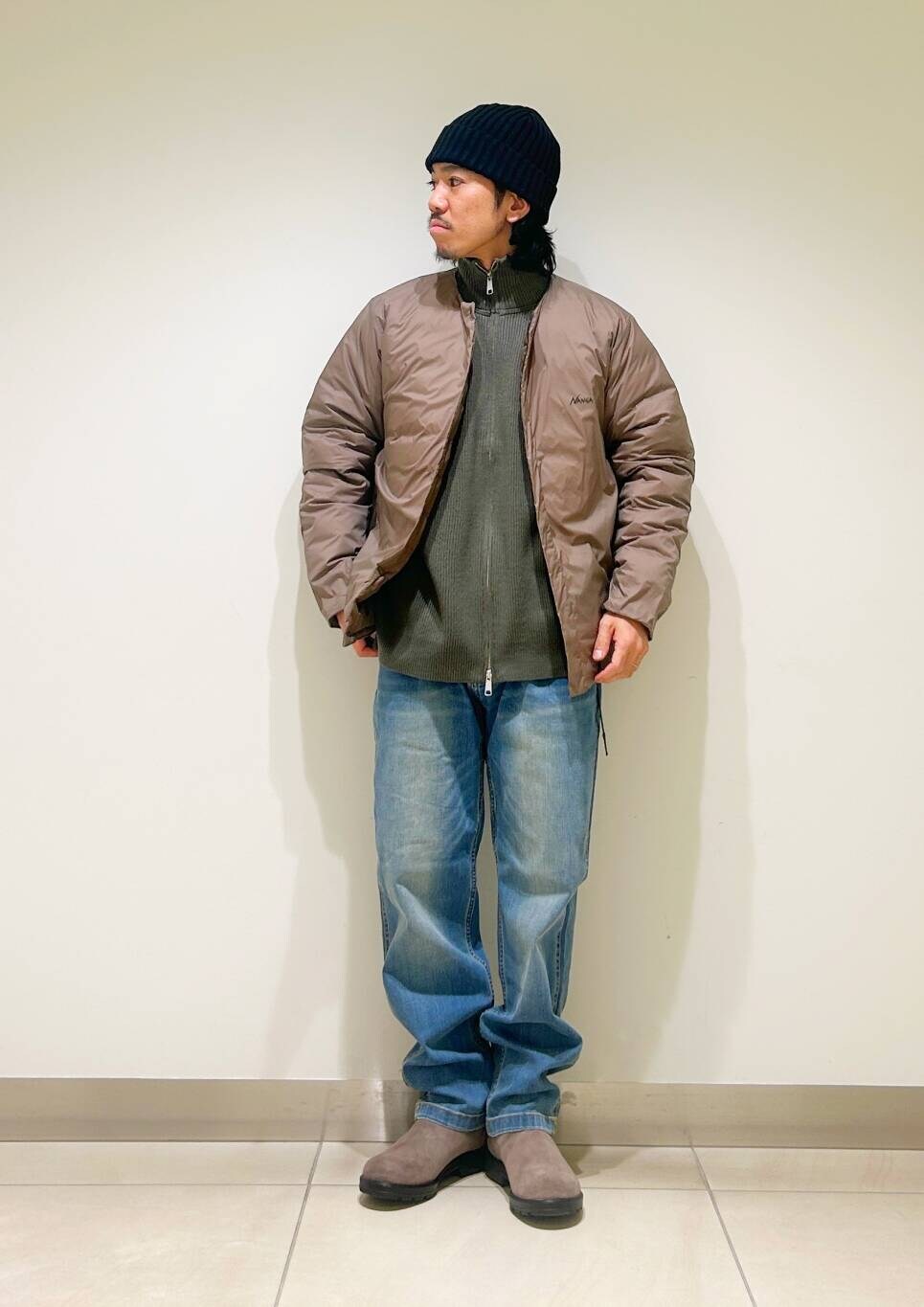 今回はnangaインナーダウンとグラミチ別注デニムパンツを使用したコーディネート。