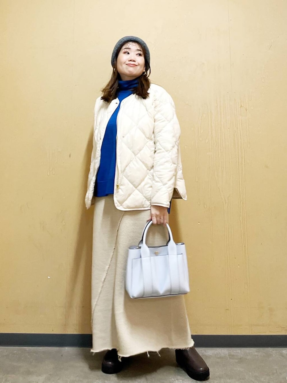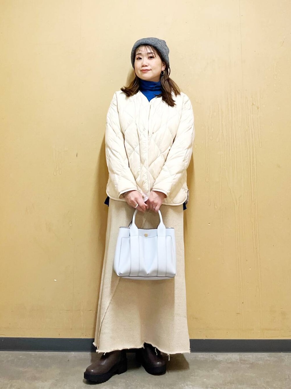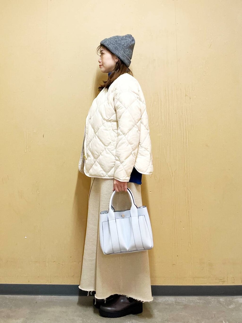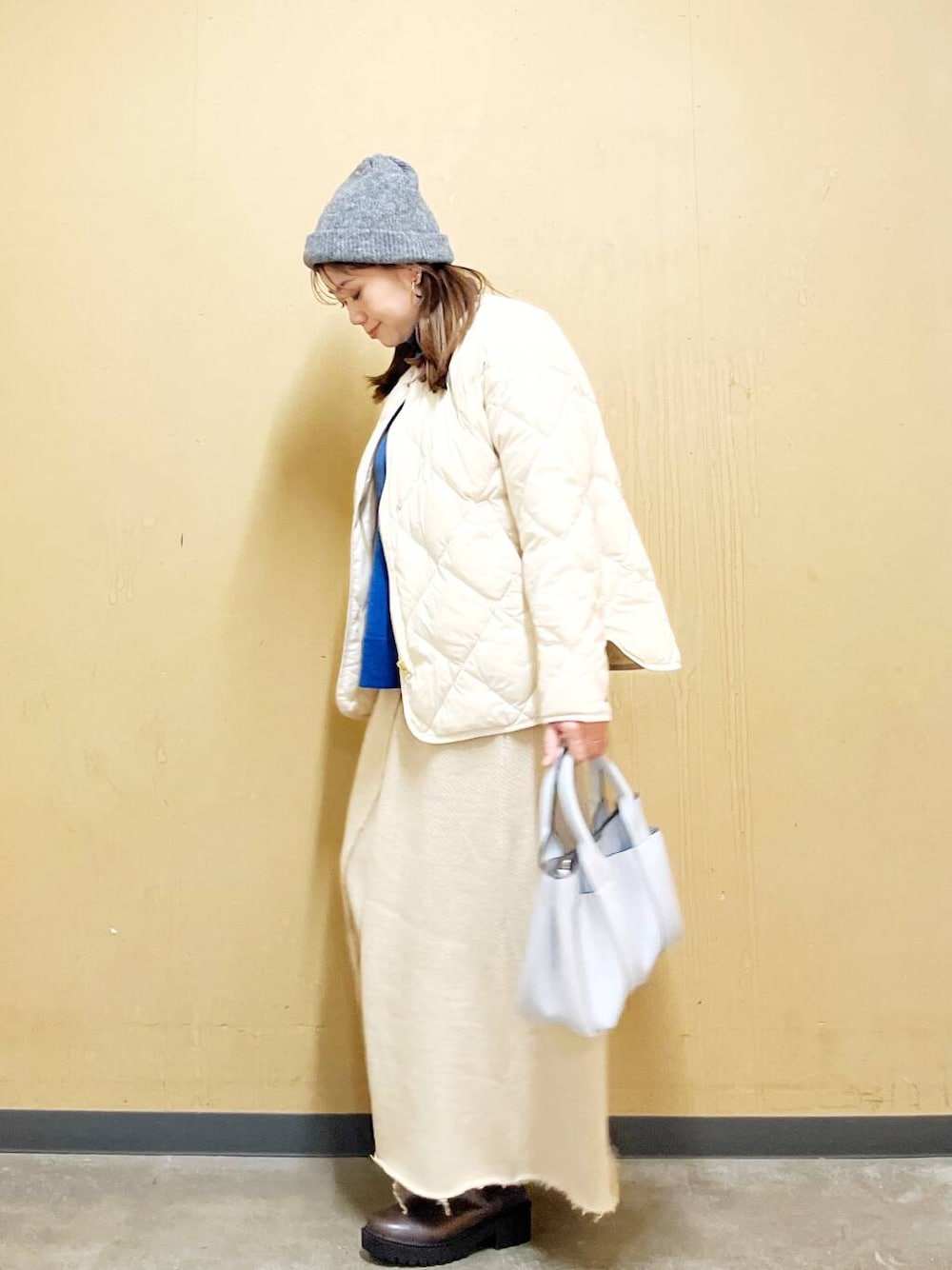 柔らかなトーン合わせになるようアウターは白をチョイス☆