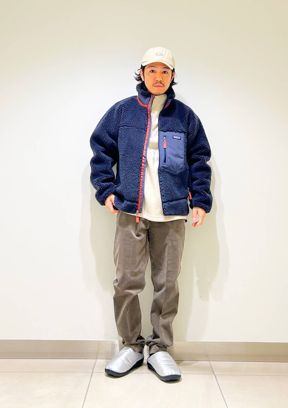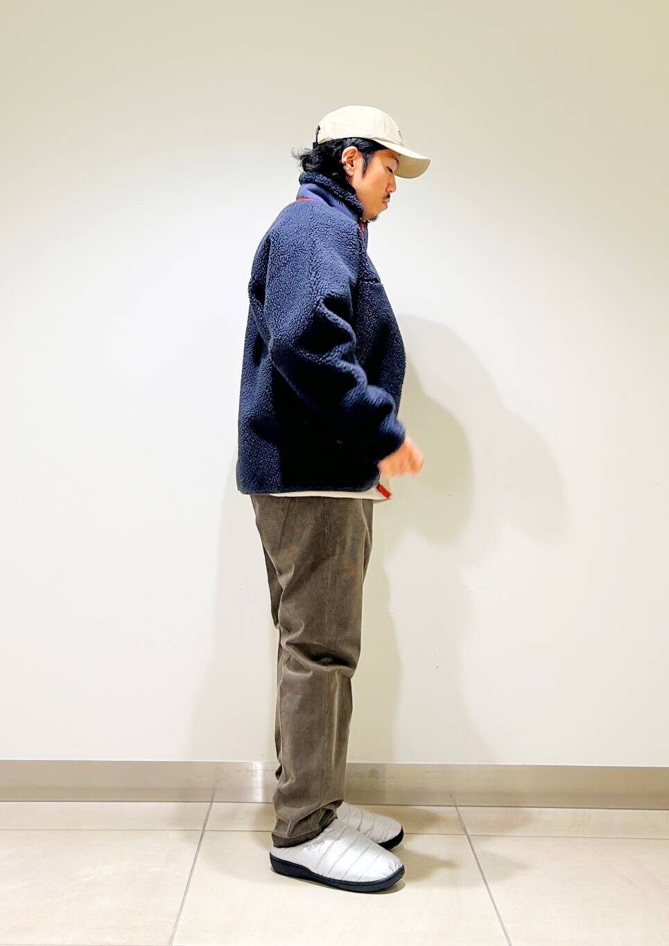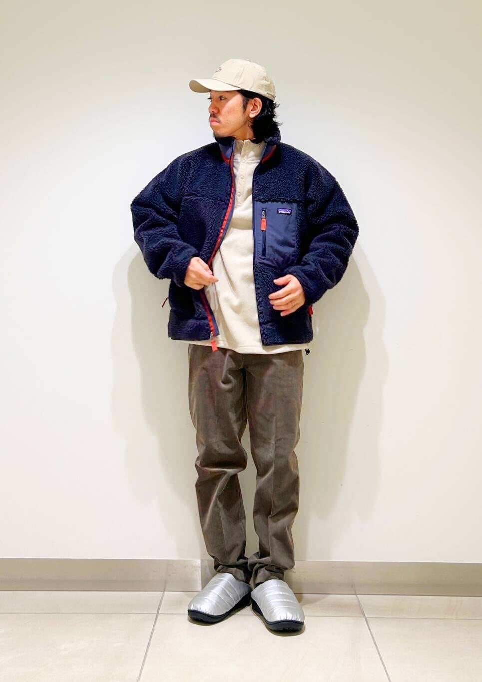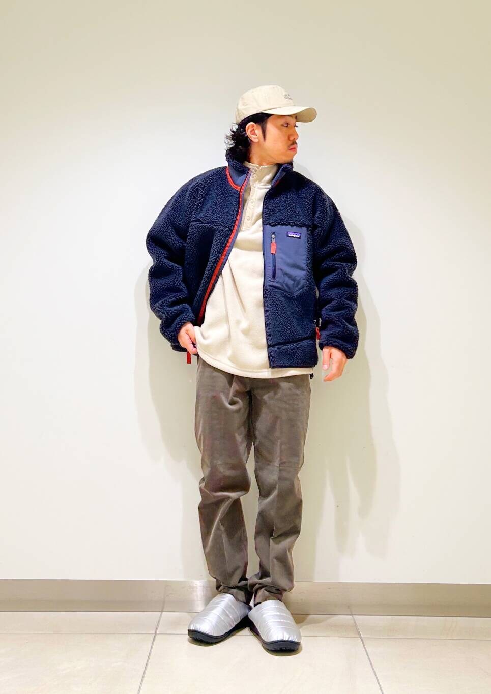 今回はpatagonia Ms Classic Retro-X JACKETとコーデュロイトラウザーを使用したコーディネート。