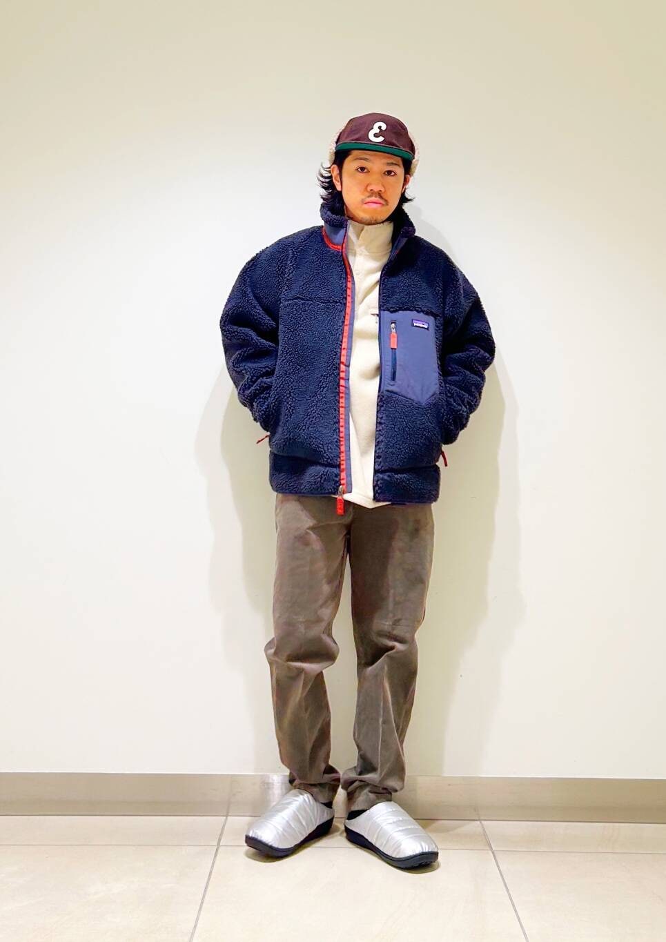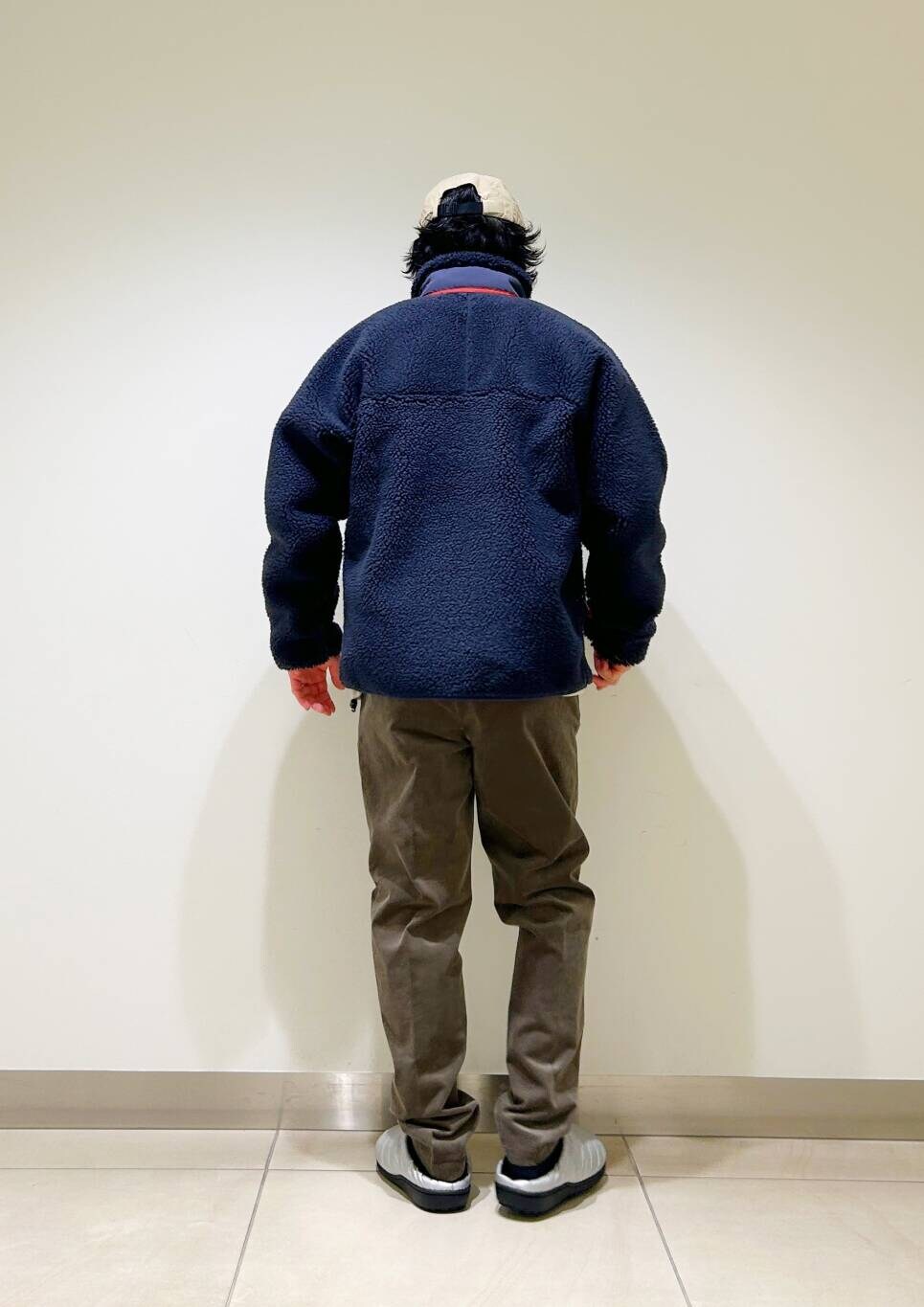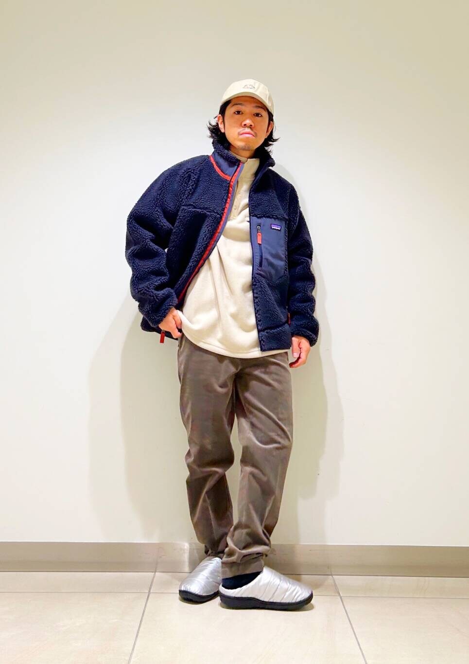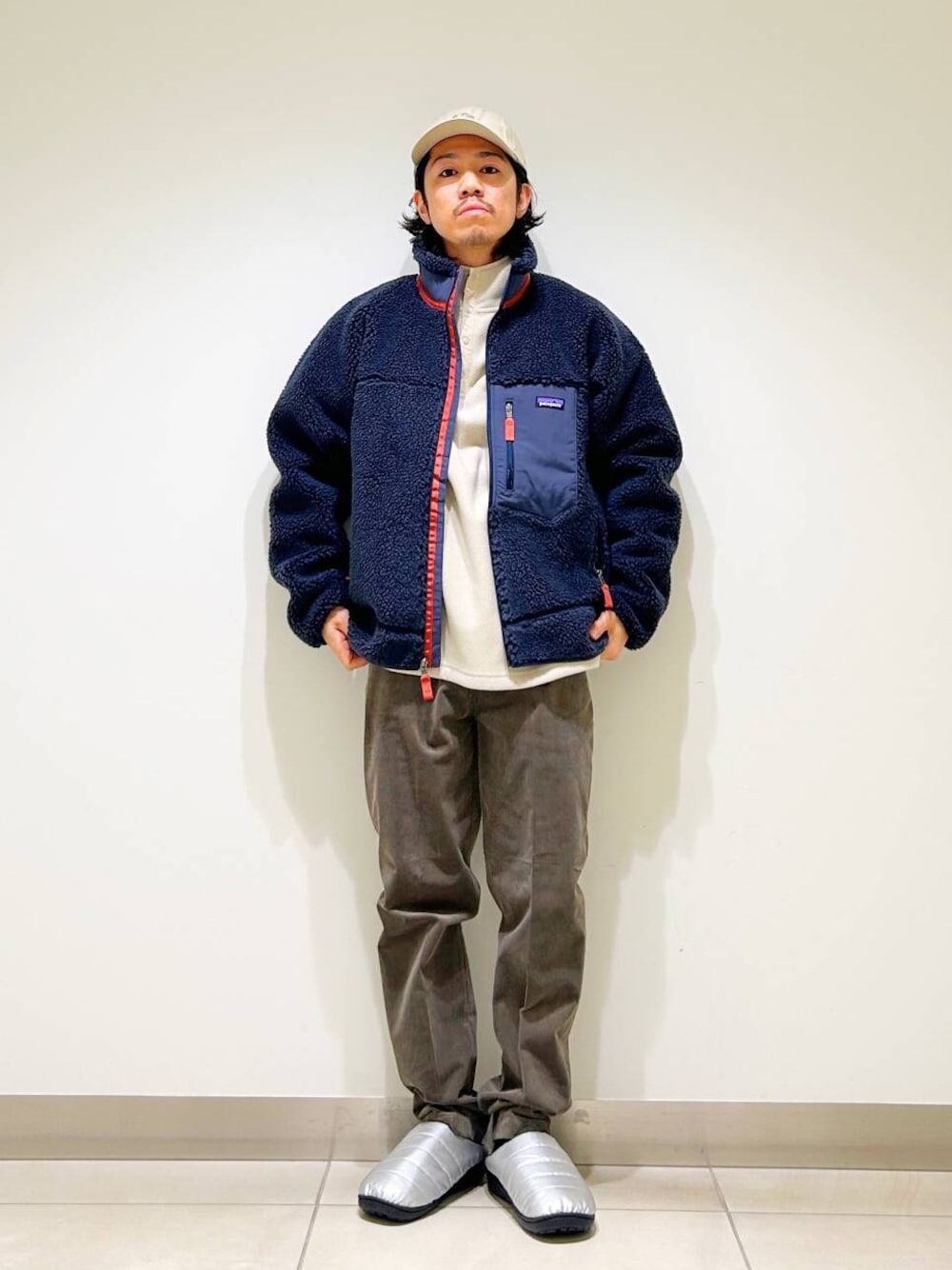 今回はpatagonia Ms Classic Retro-X JACKETとコーデュロイトラウザーを使用したコーディネート。