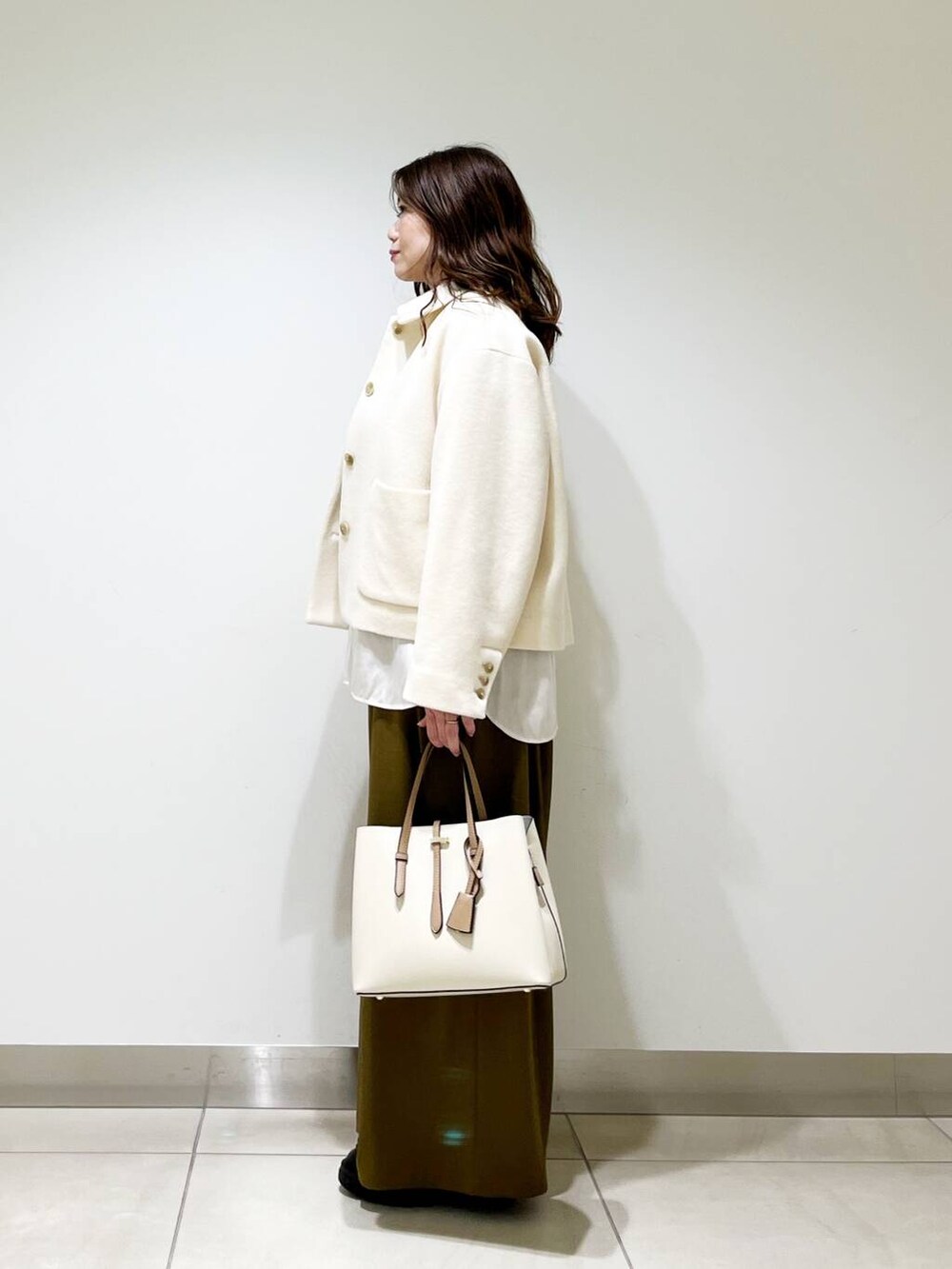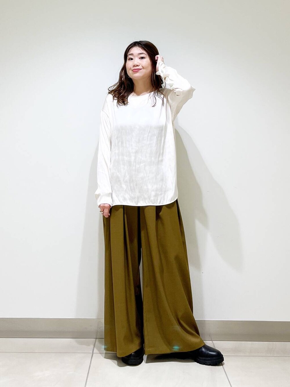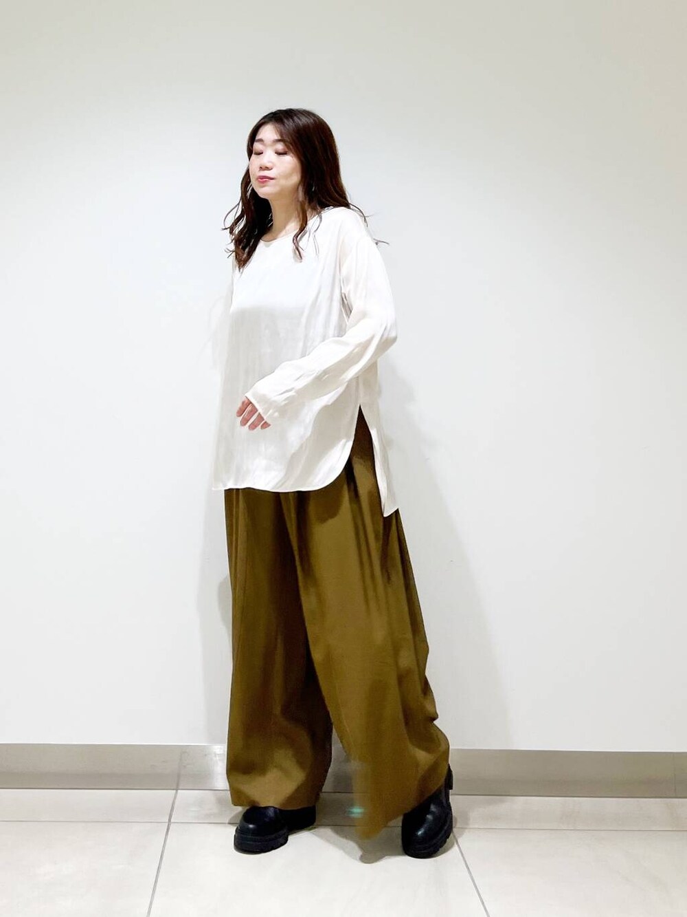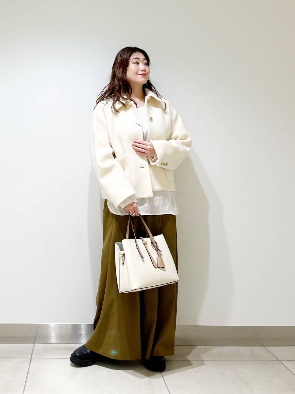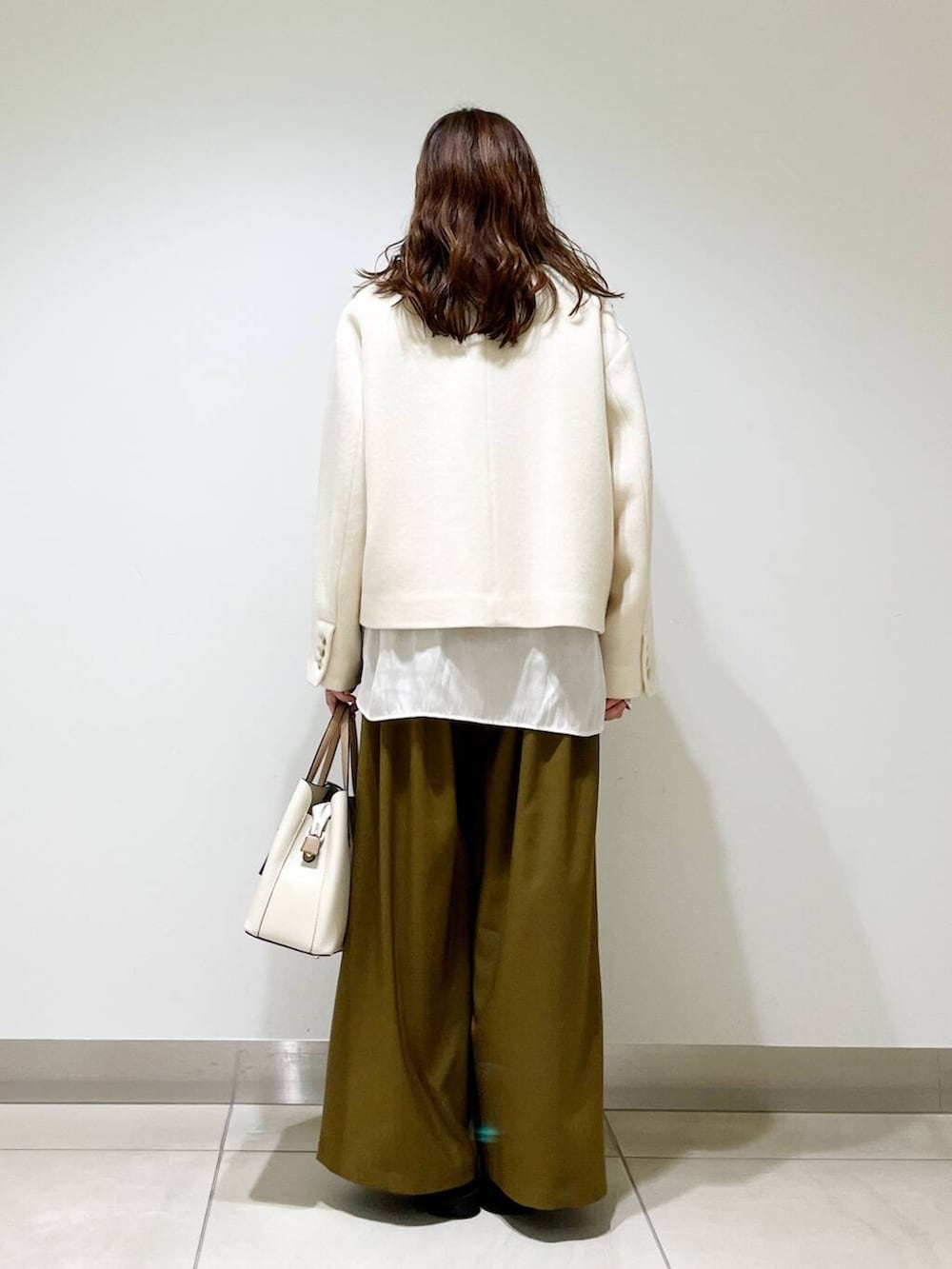 淡い白系のトーンでまとめてパンツには締まりが来るよう濃いベージュを合わせました◎