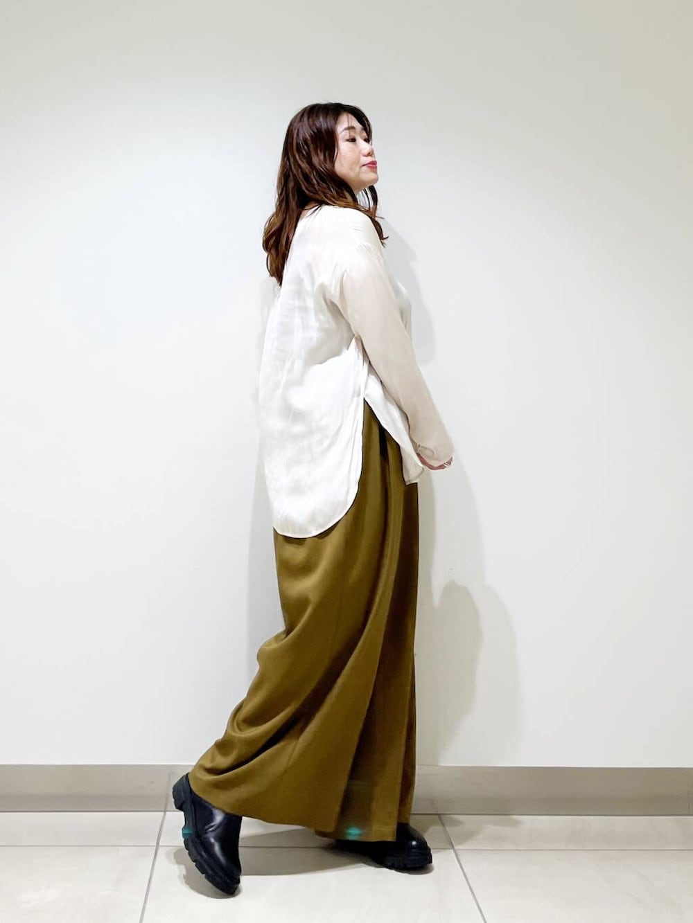 サテン生地が大人の女性らしい印象で着れるブラウスです☆