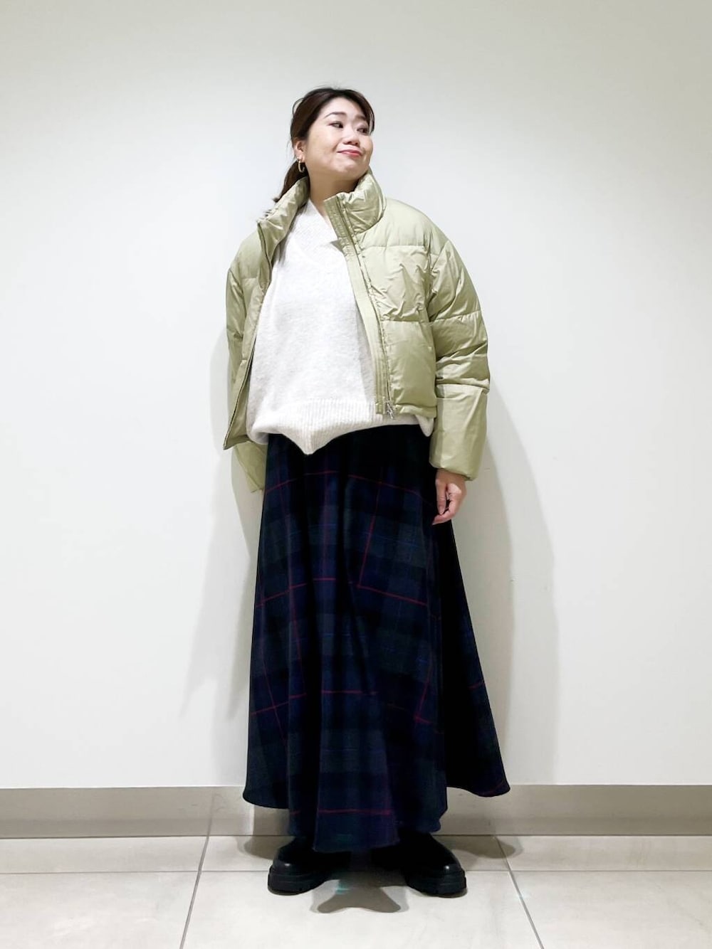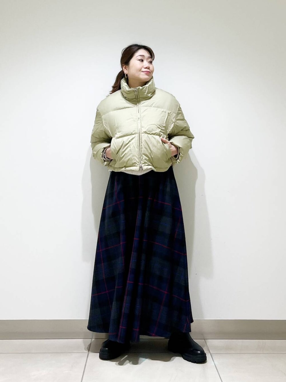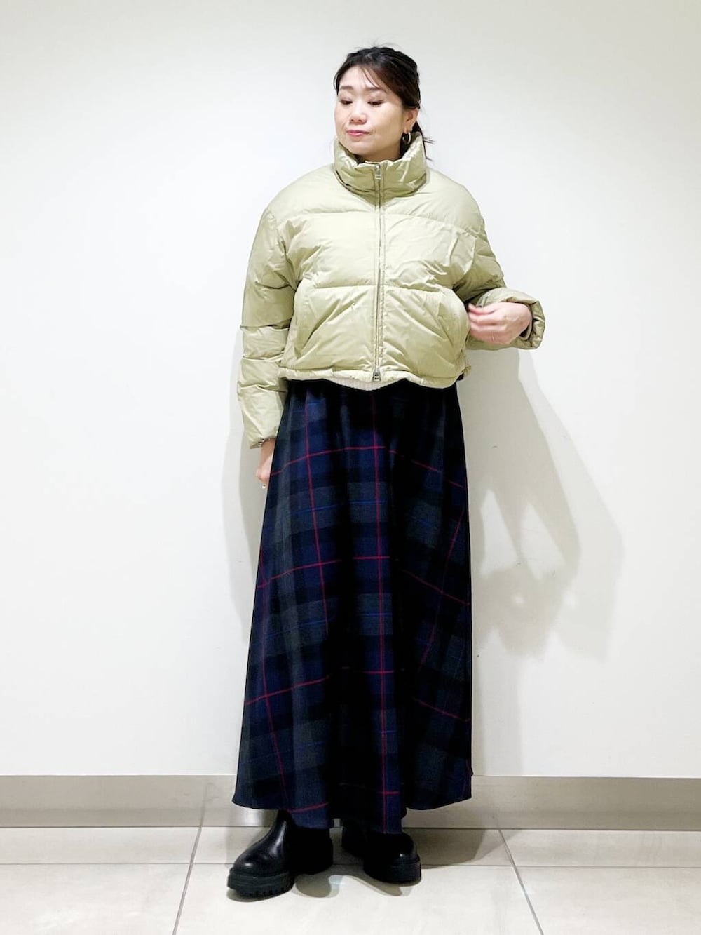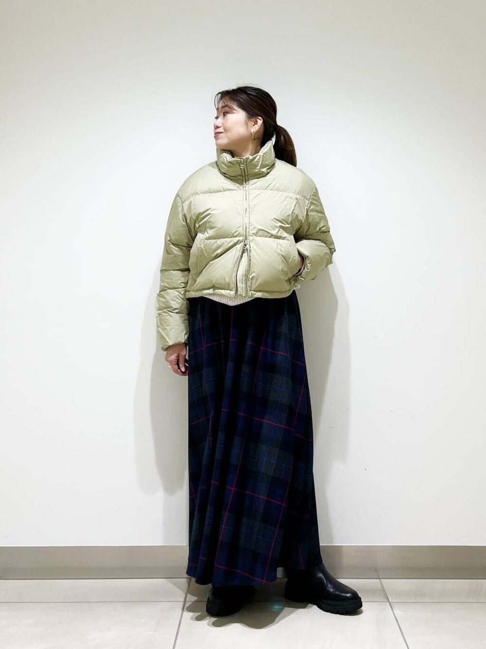 ショート丈のダウンは低身長の方にもオススメです!!特にスカート合わせがかわいいです!