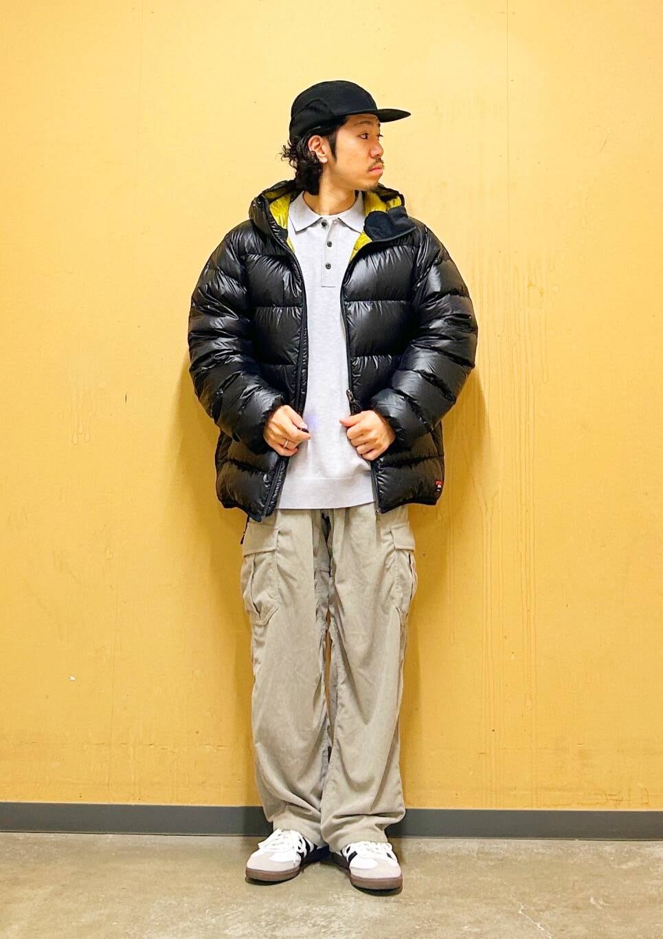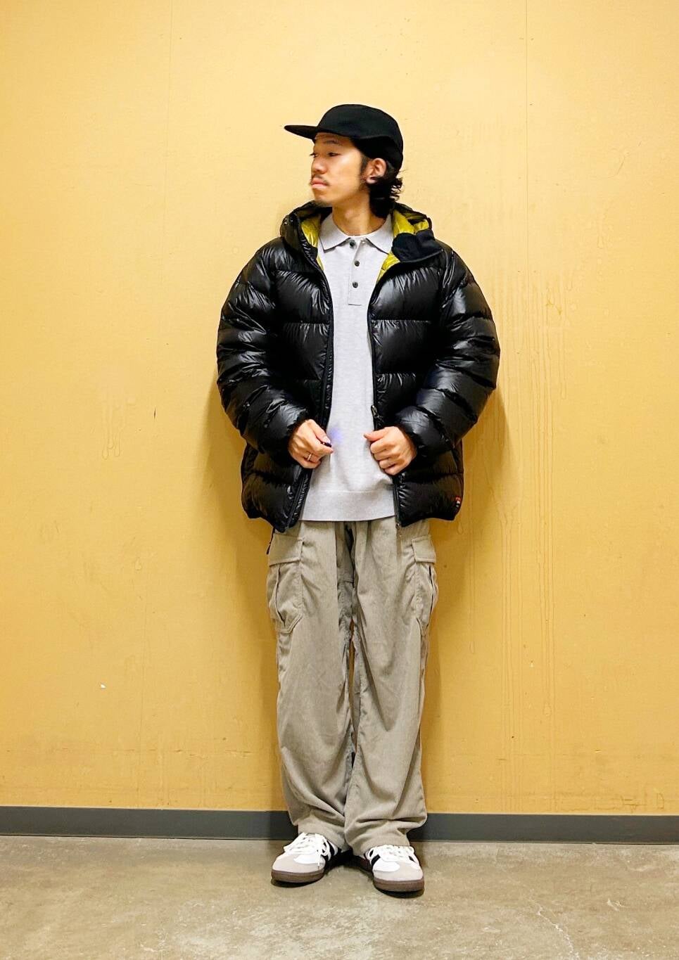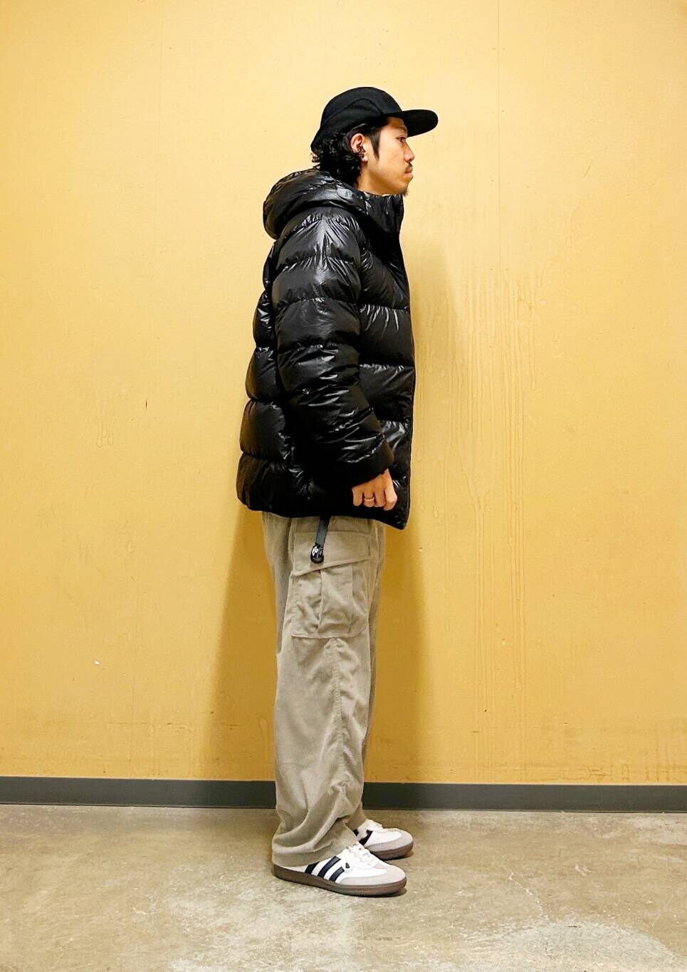 今回はNANGAダウンブルゾンとコーデュロイカーゴパンツを使用したコーディネート。