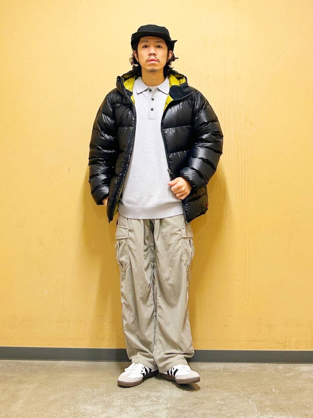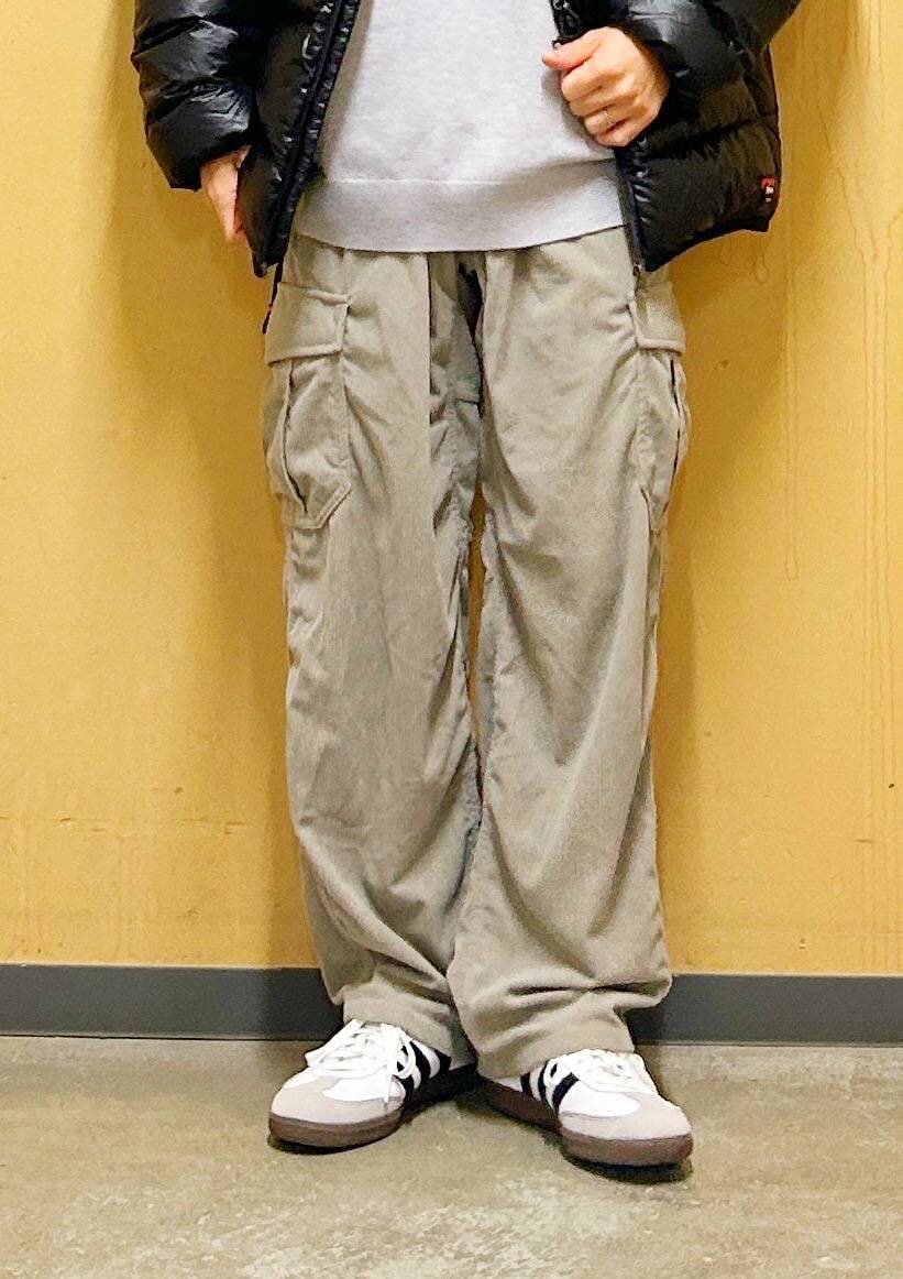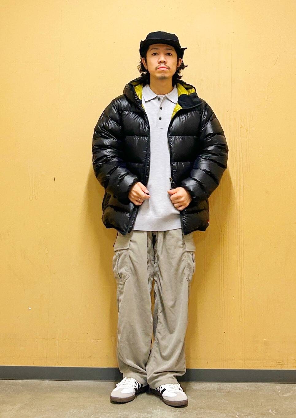 今回はNANGAダウンブルゾンとコーデュロイカーゴパンツを使用したコーディネート。