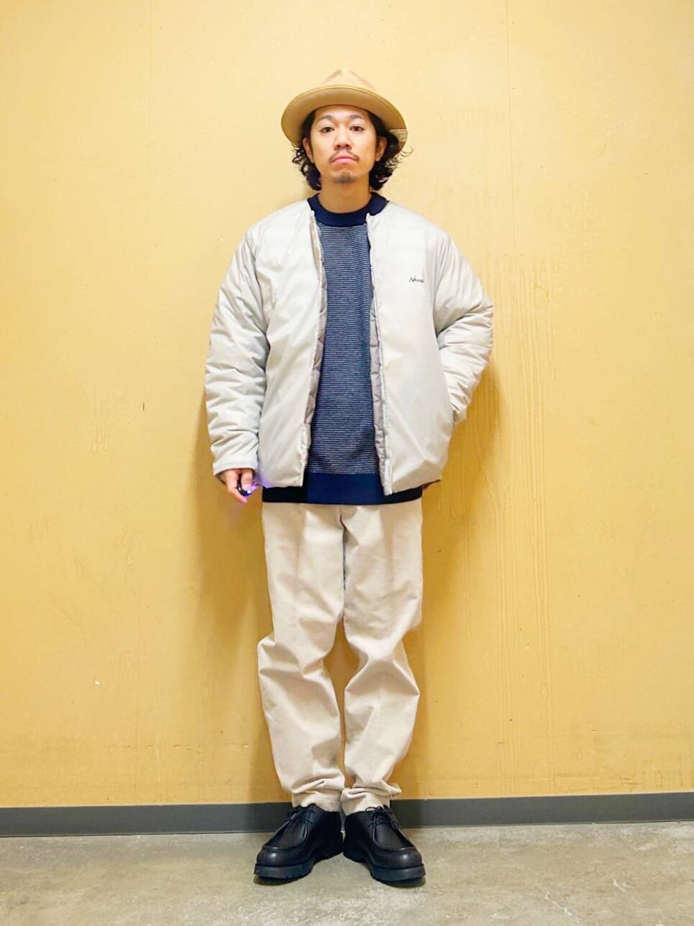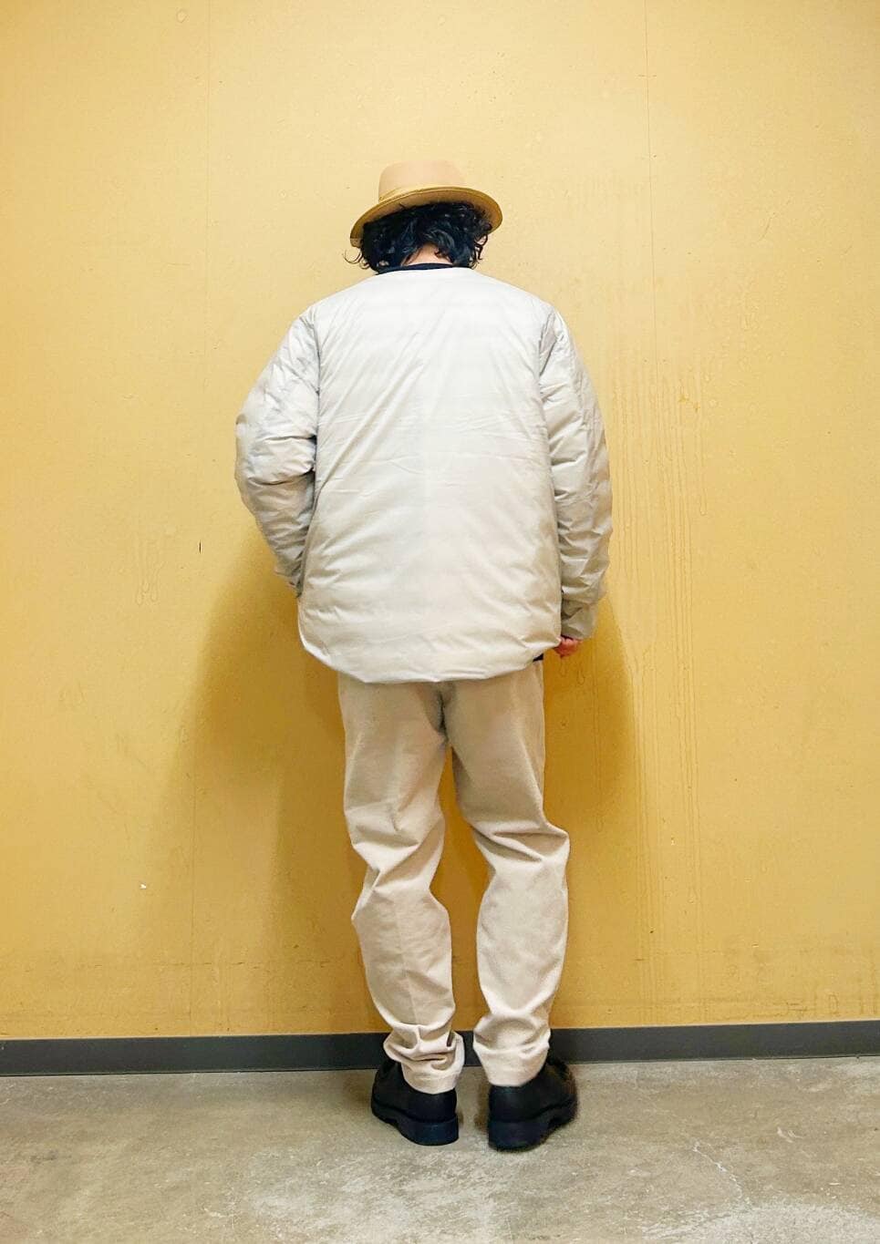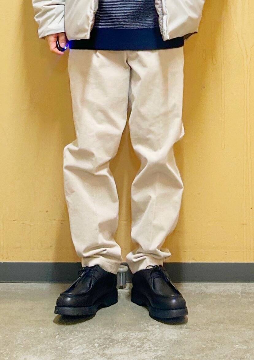 今回はNANGAインナーダウンとコーデュロイトラウザーを使用したコーディネート。