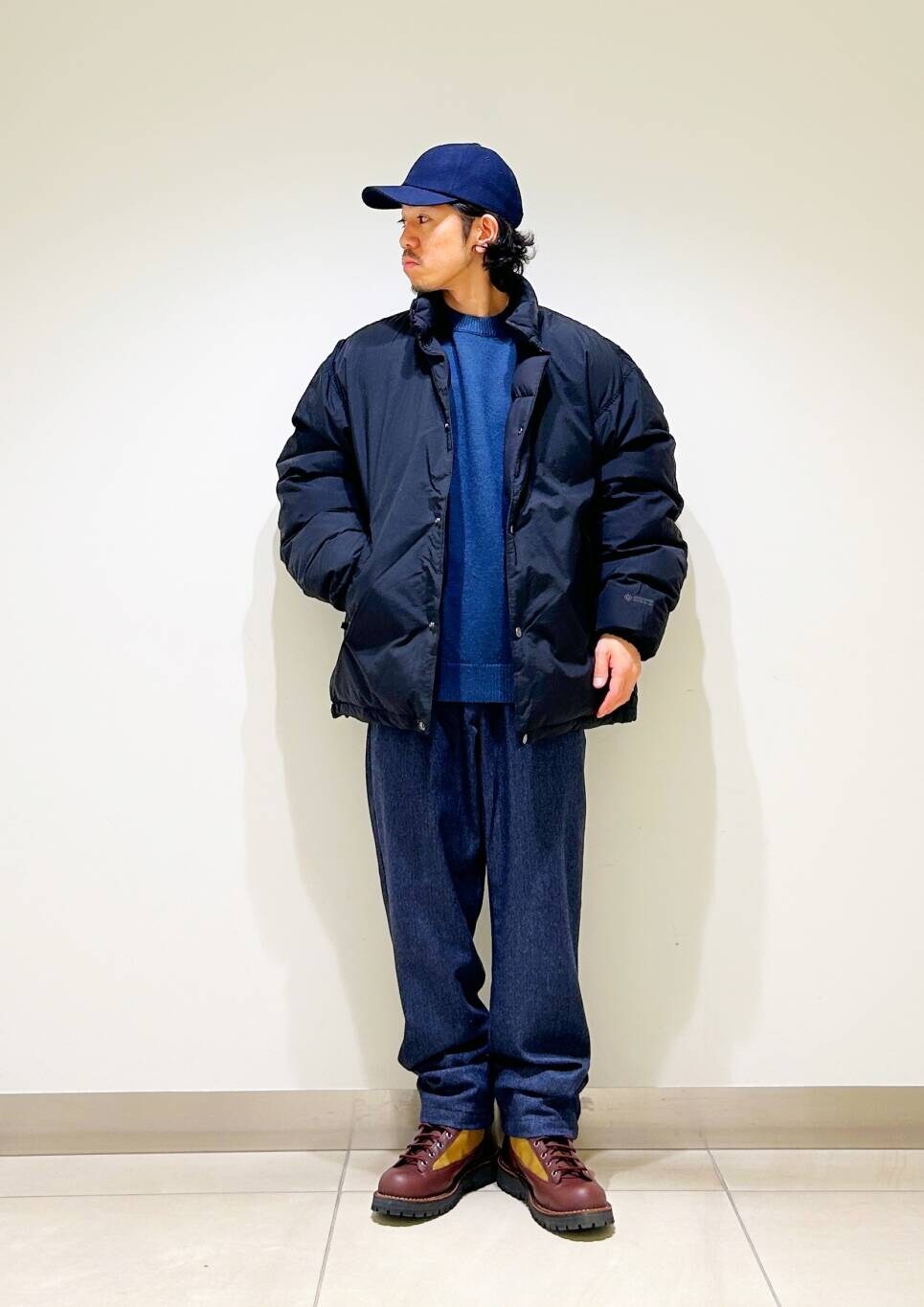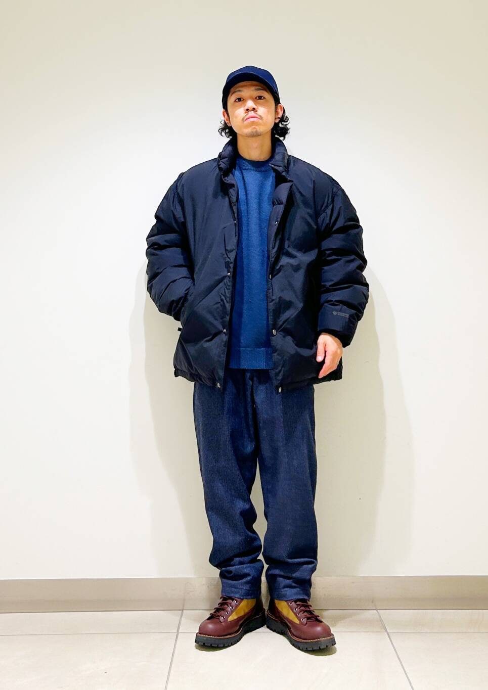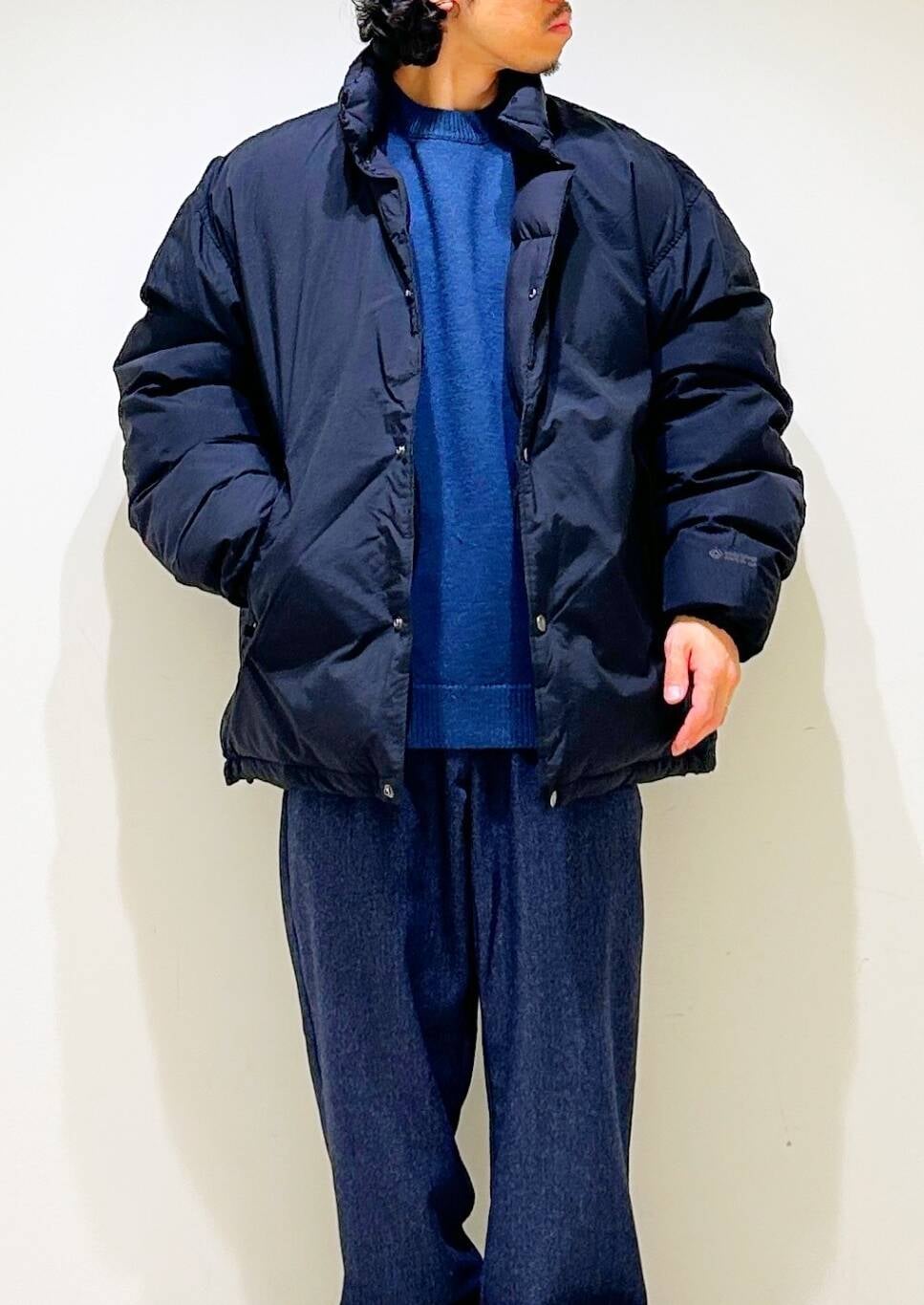 マットな質感の生地に、パッカリングを効かせてスポーティ感を抑えています。中わたはリサイクルダウンを封入し、保温性と軽さを追求。裏地にGORE-TEX WINDSTOPPER 2層構造を使用し、風の侵入を軽減しています。衿元と後ろ肩に同色のロゴ刺繍を配置。着合わせや脱ぎ着のしやすさを考慮し、身幅や袖幅はゆったりめに仕上げています。