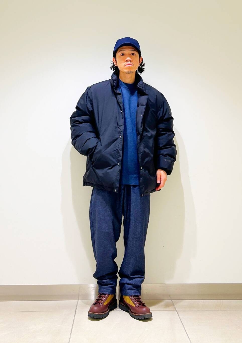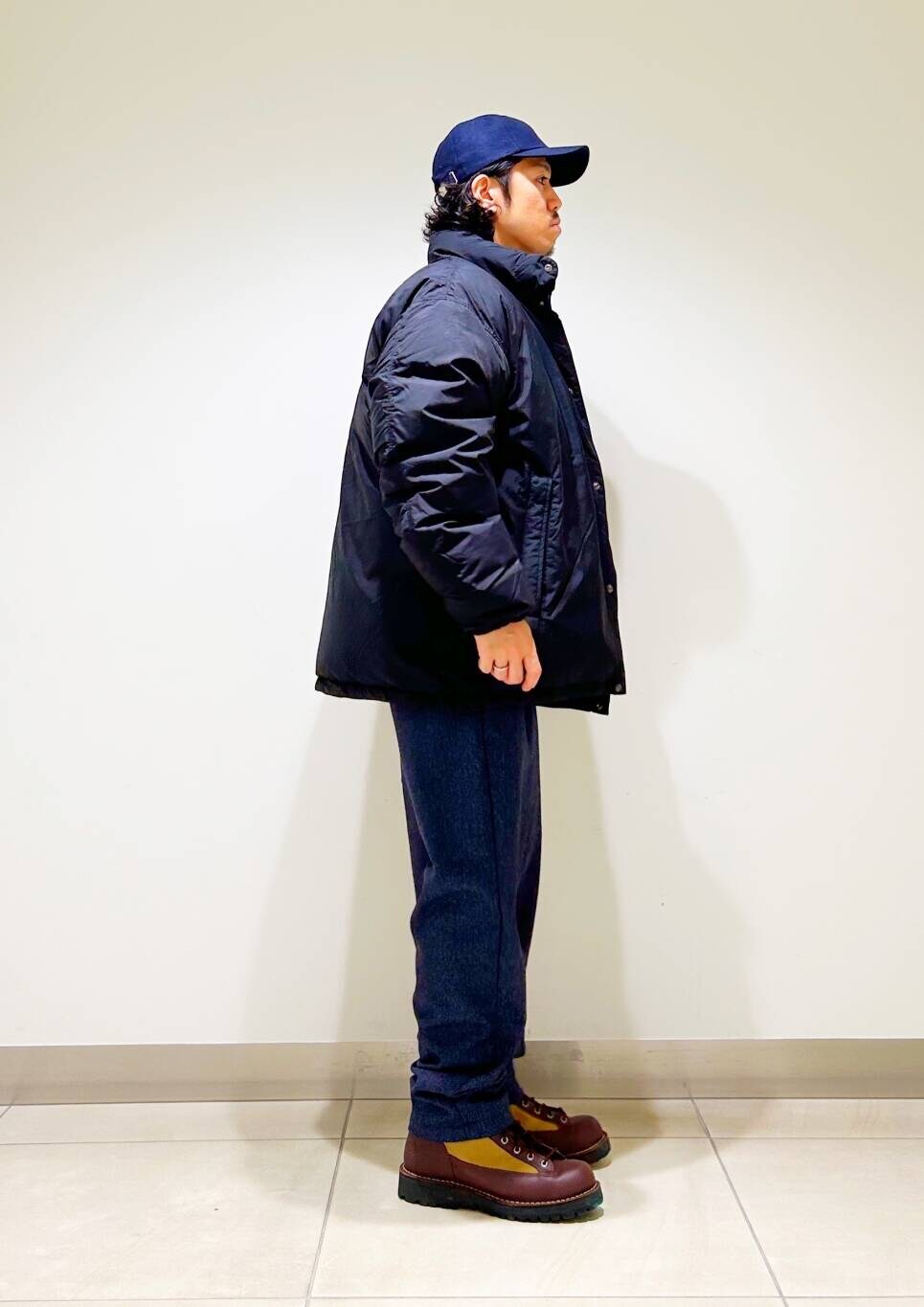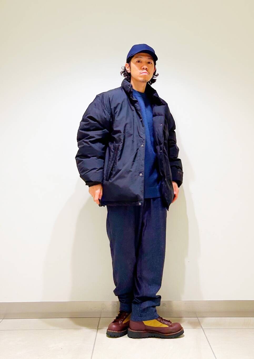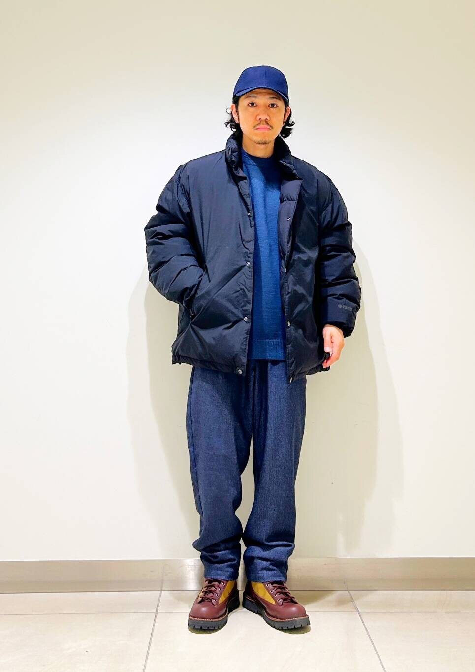 マットな質感の生地に、パッカリングを効かせてスポーティ感を抑えています。中わたはリサイクルダウンを封入し、保温性と軽さを追求。裏地にGORE-TEX WINDSTOPPER 2層構造を使用し、風の侵入を軽減しています。衿元と後ろ肩に同色のロゴ刺繍を配置。着合わせや脱ぎ着のしやすさを考慮し、身幅や袖幅はゆったりめに仕上げています。