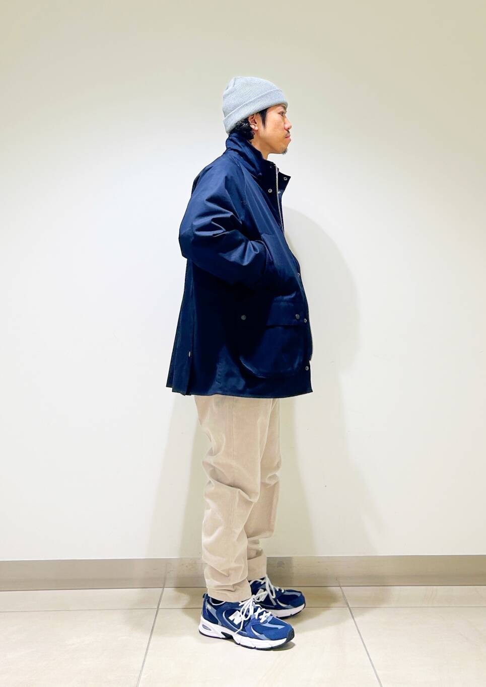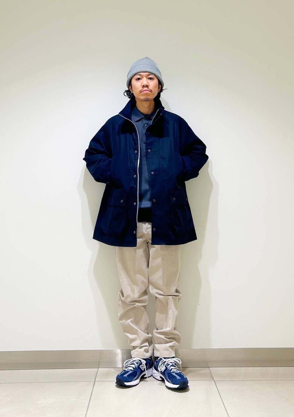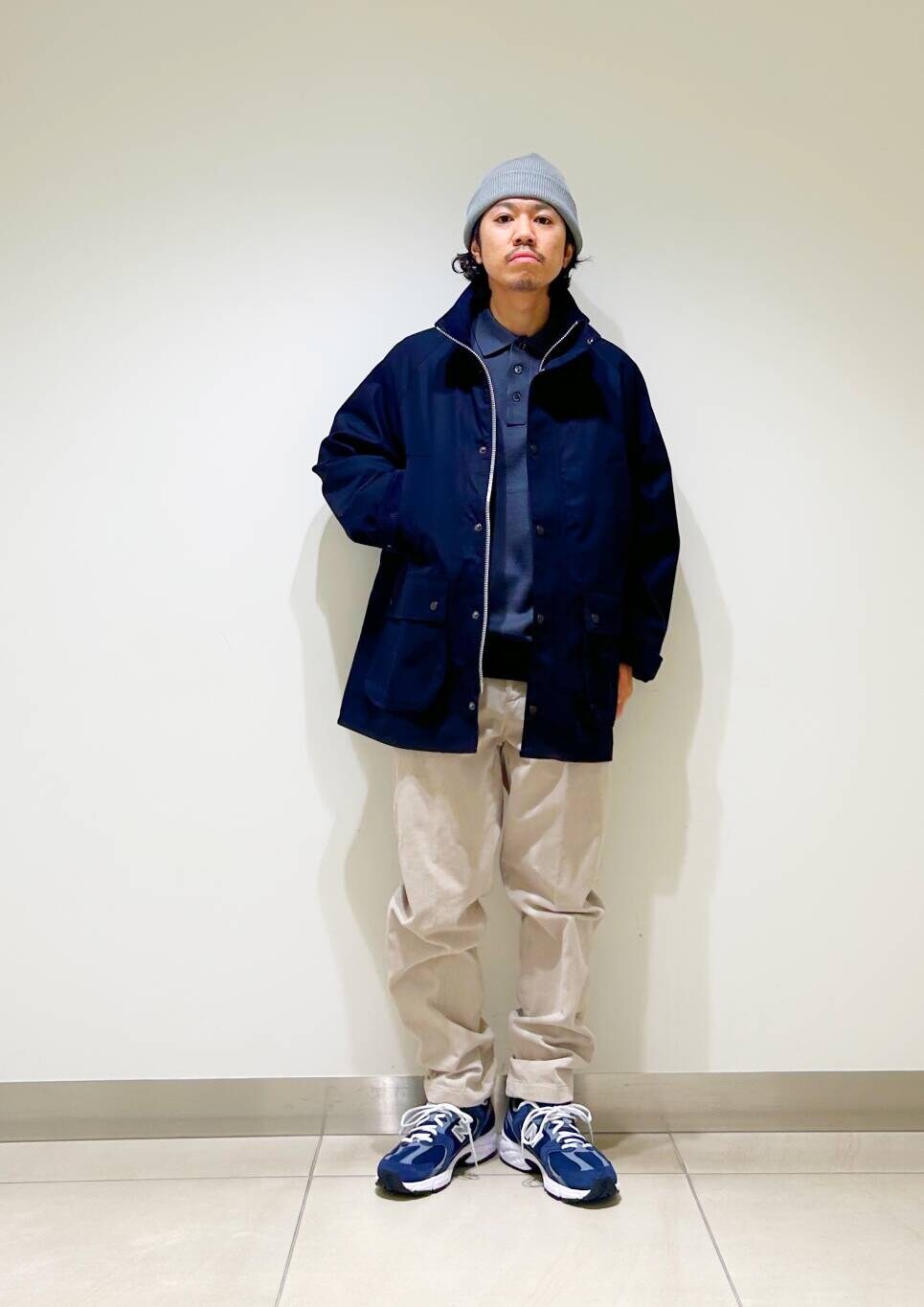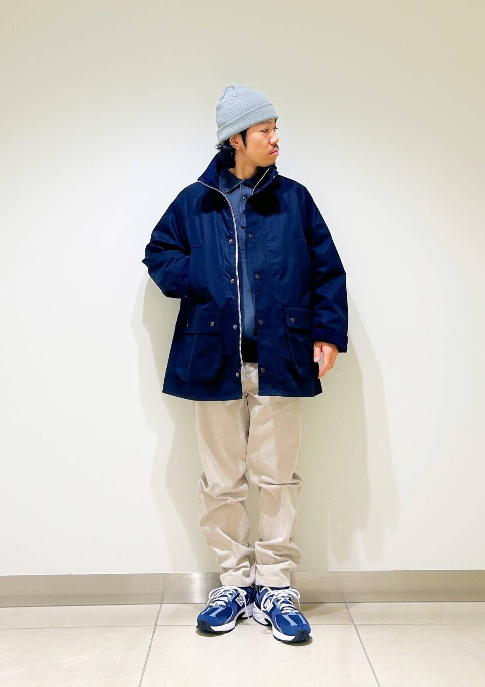 今回はBarbour×DOORS OS BEDALE STANDCOLLARとコーデュロイトラウザーを使用したコーディネート。