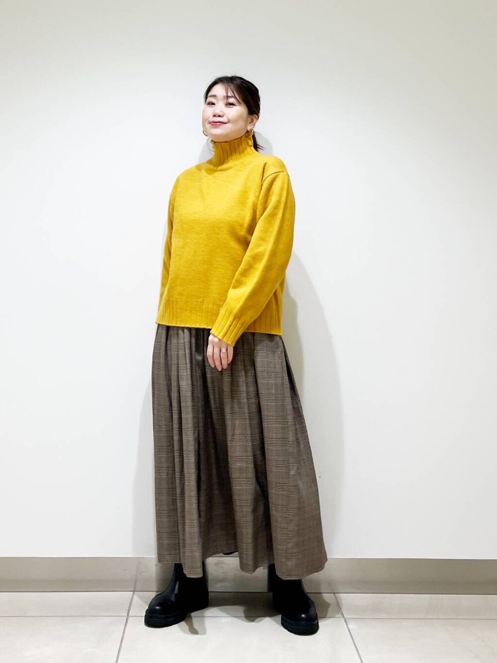 鮮やかなイエローのニットが映えて、お持ちのアイテムをアップデートさせてくれます◎