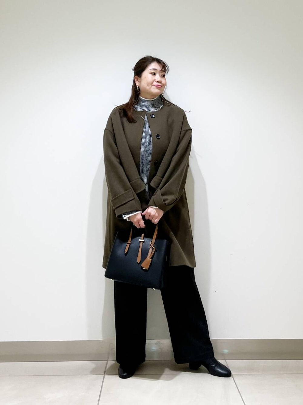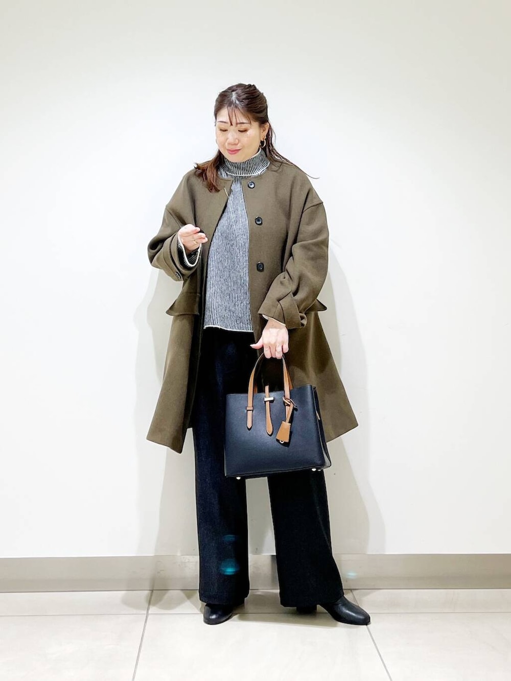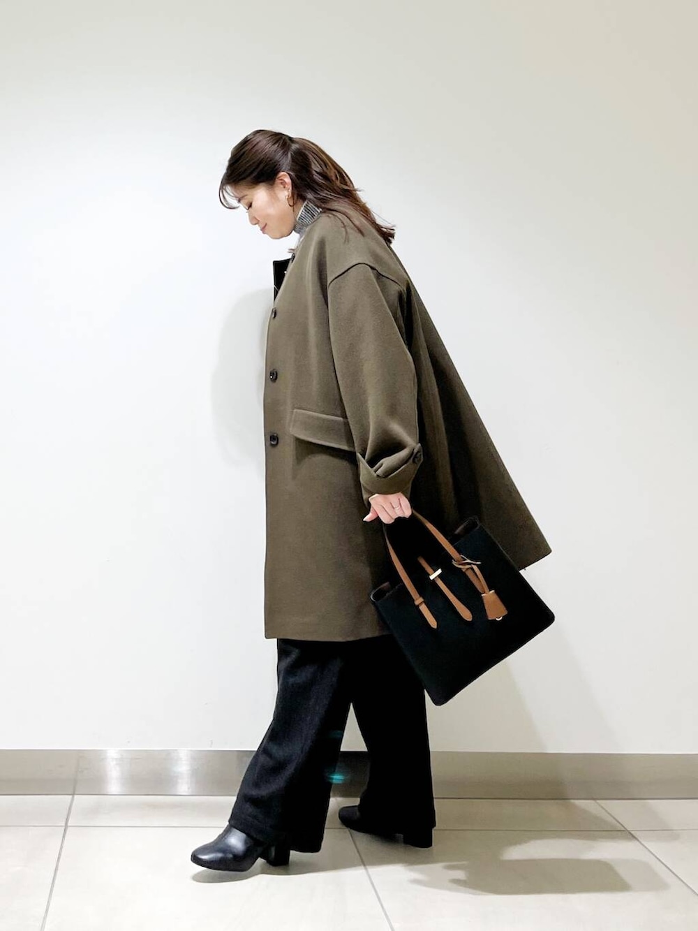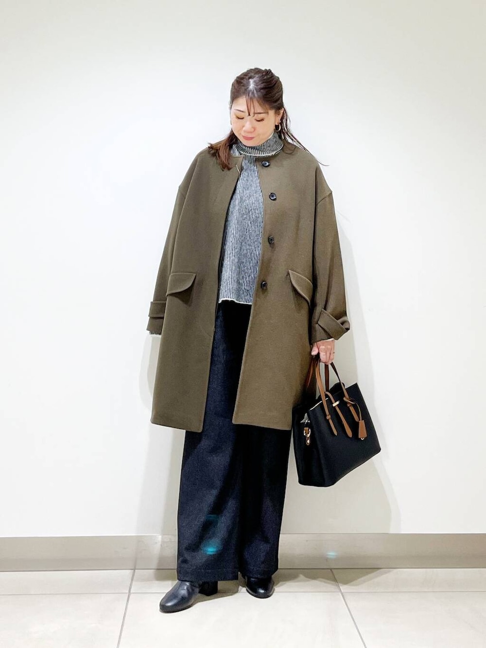 ハイネックニットとノーカラーコートの相性は抜群です☆そして、大人気のブラッシュドパンツが入荷してます!!あったかくてシルエットもきれいです〜!