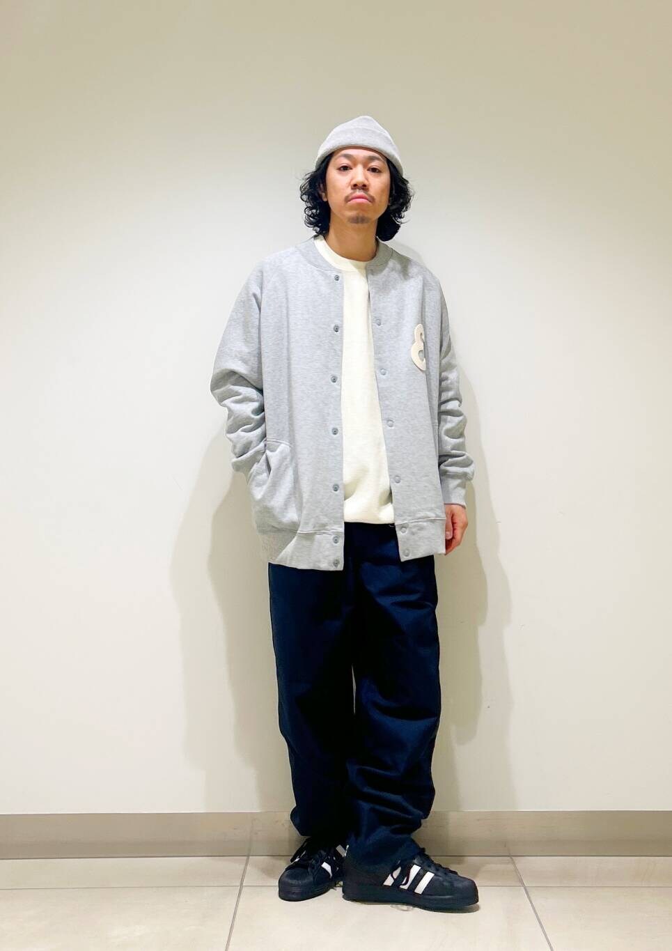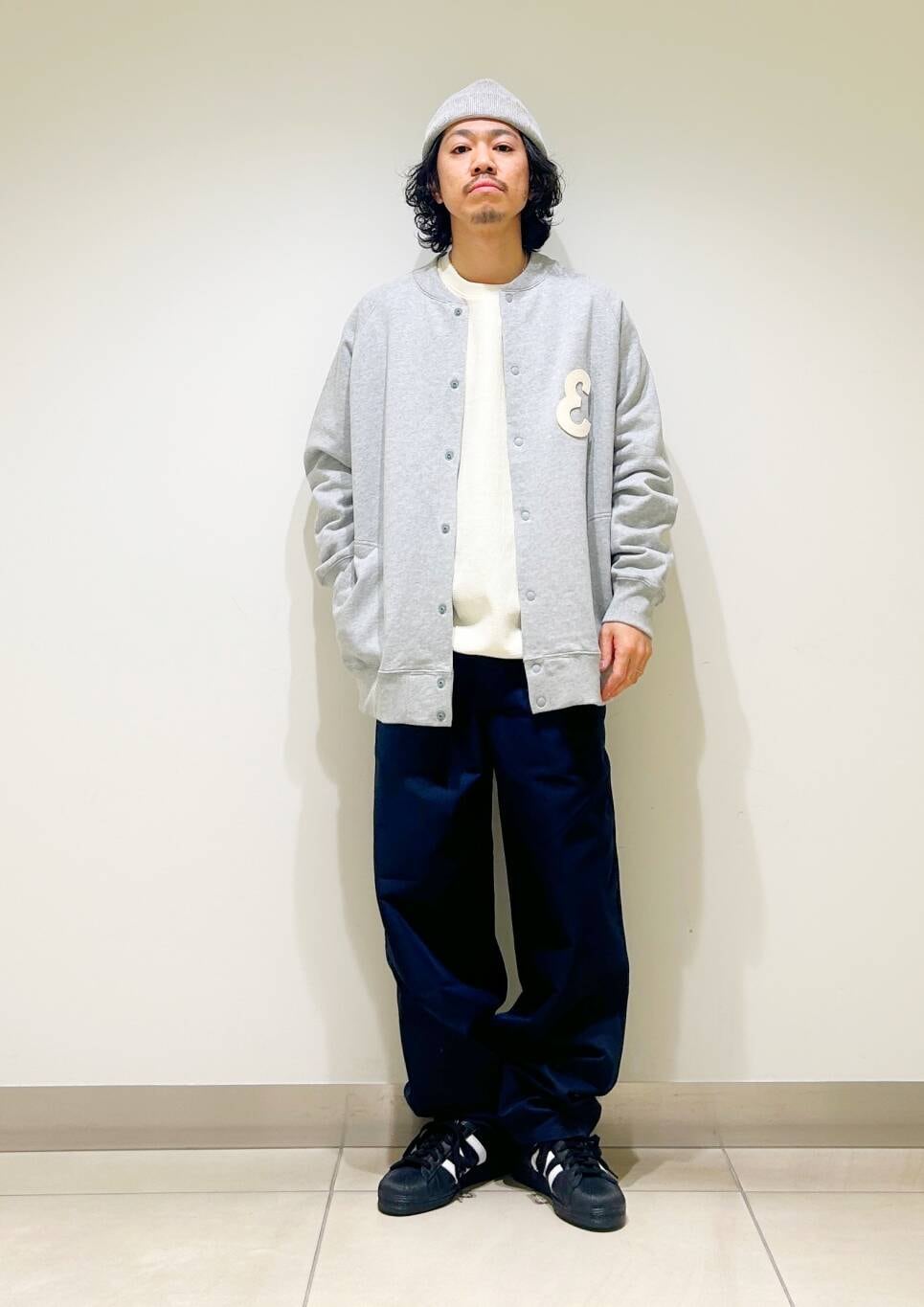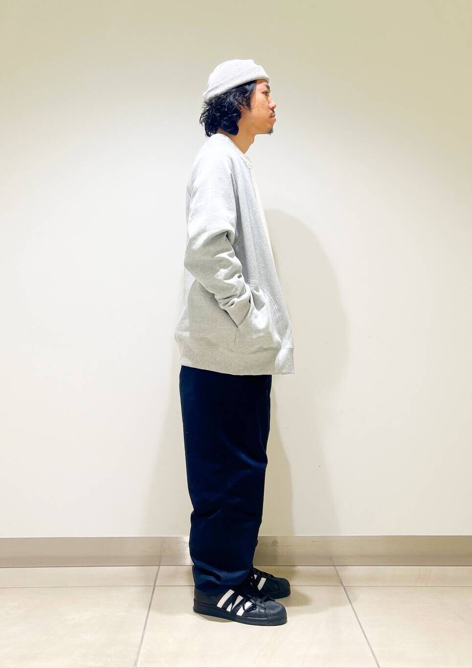 今回はロゴスウェットカーディガンとイージーパンツを使用したコーディネート。
