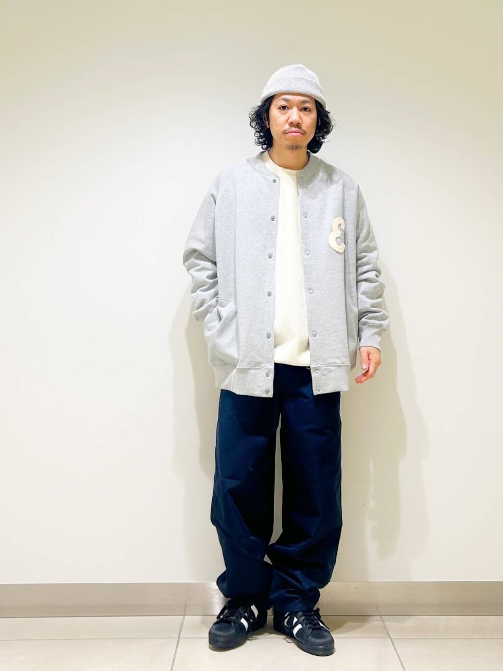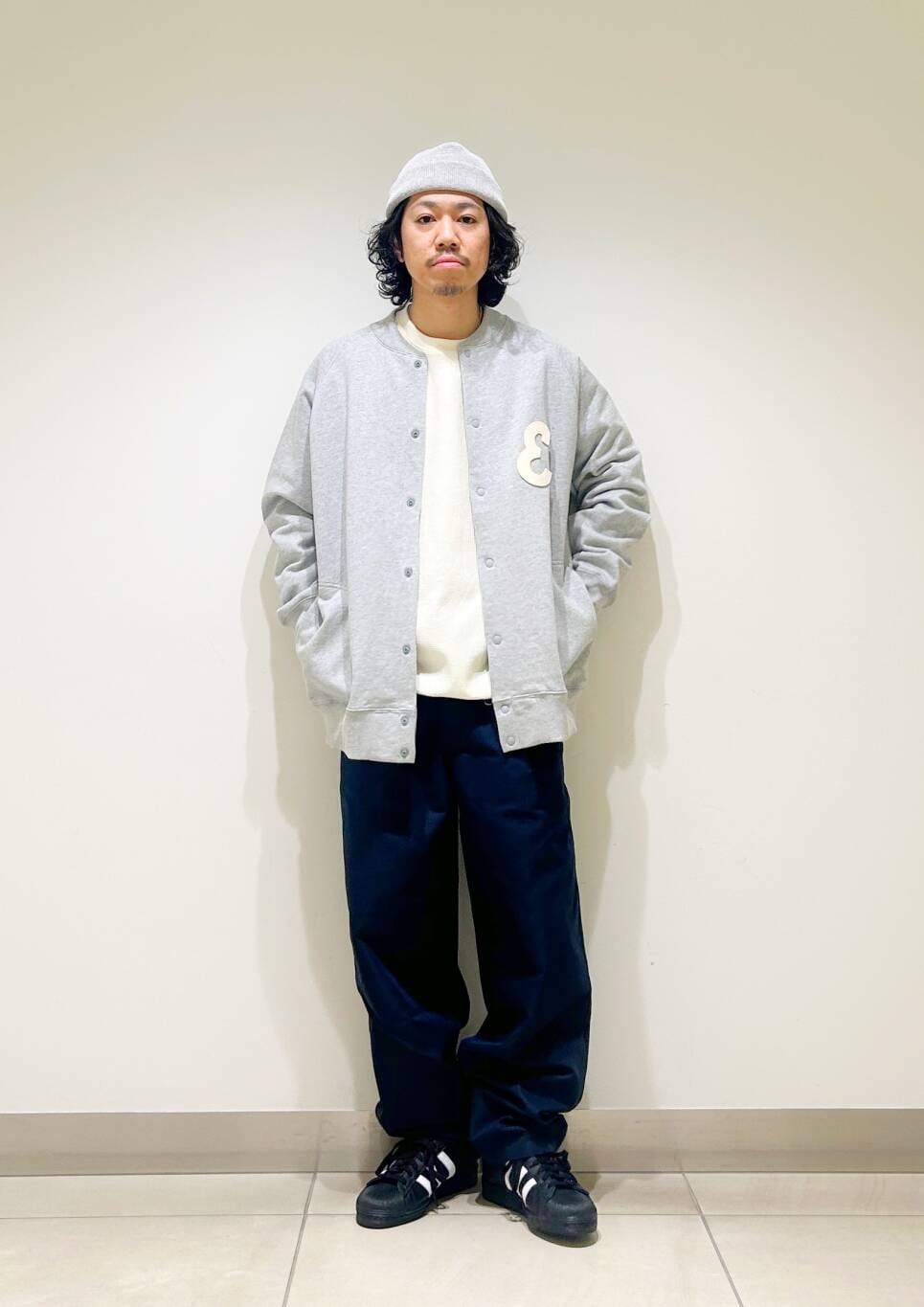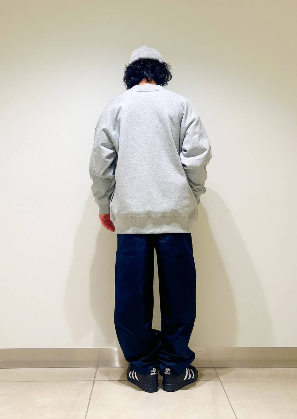 今回はロゴスウェットカーディガンとイージーパンツを使用したコーディネート。