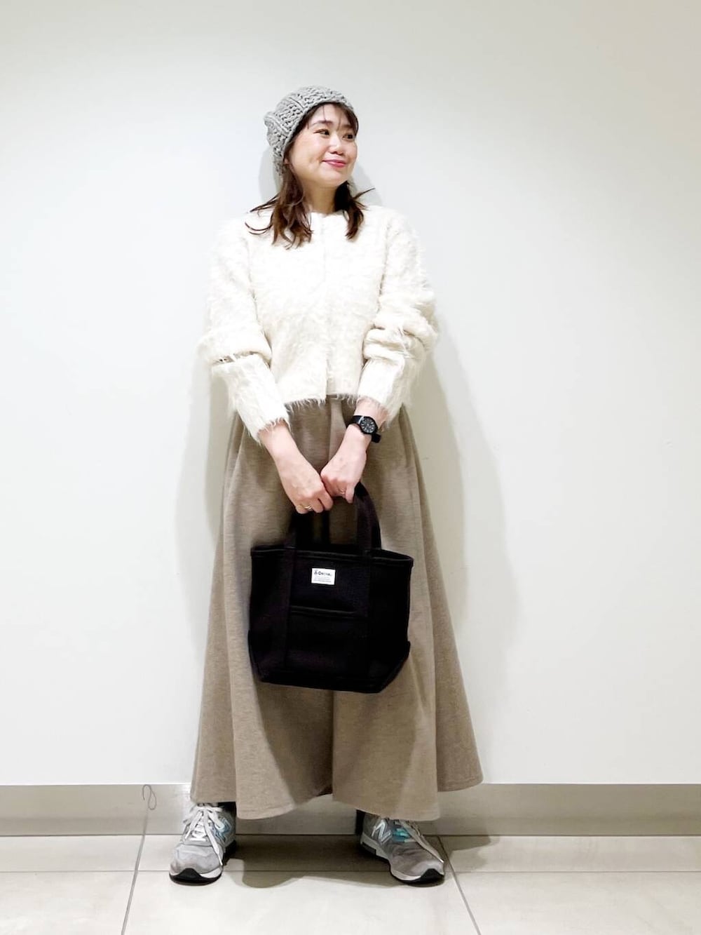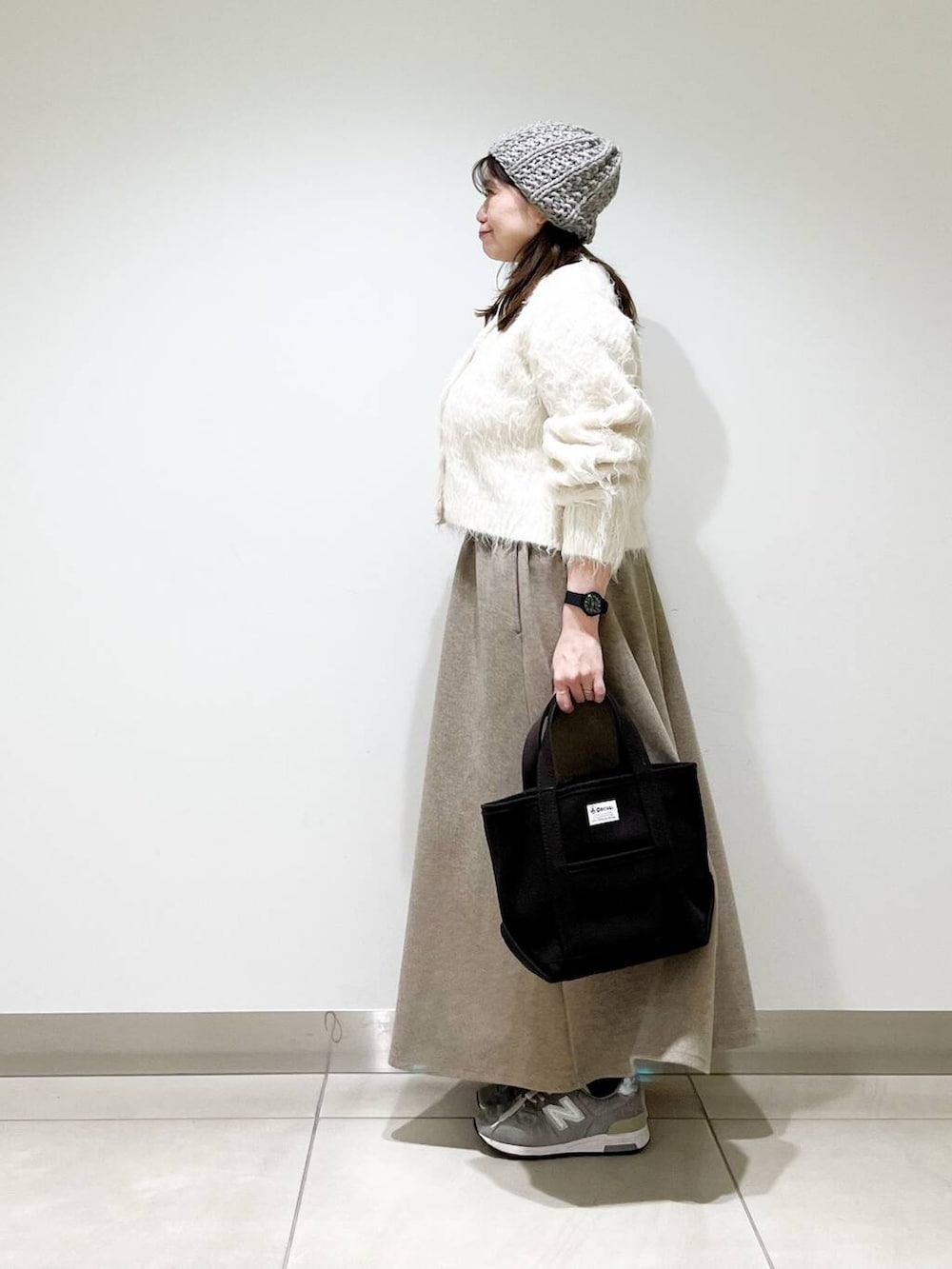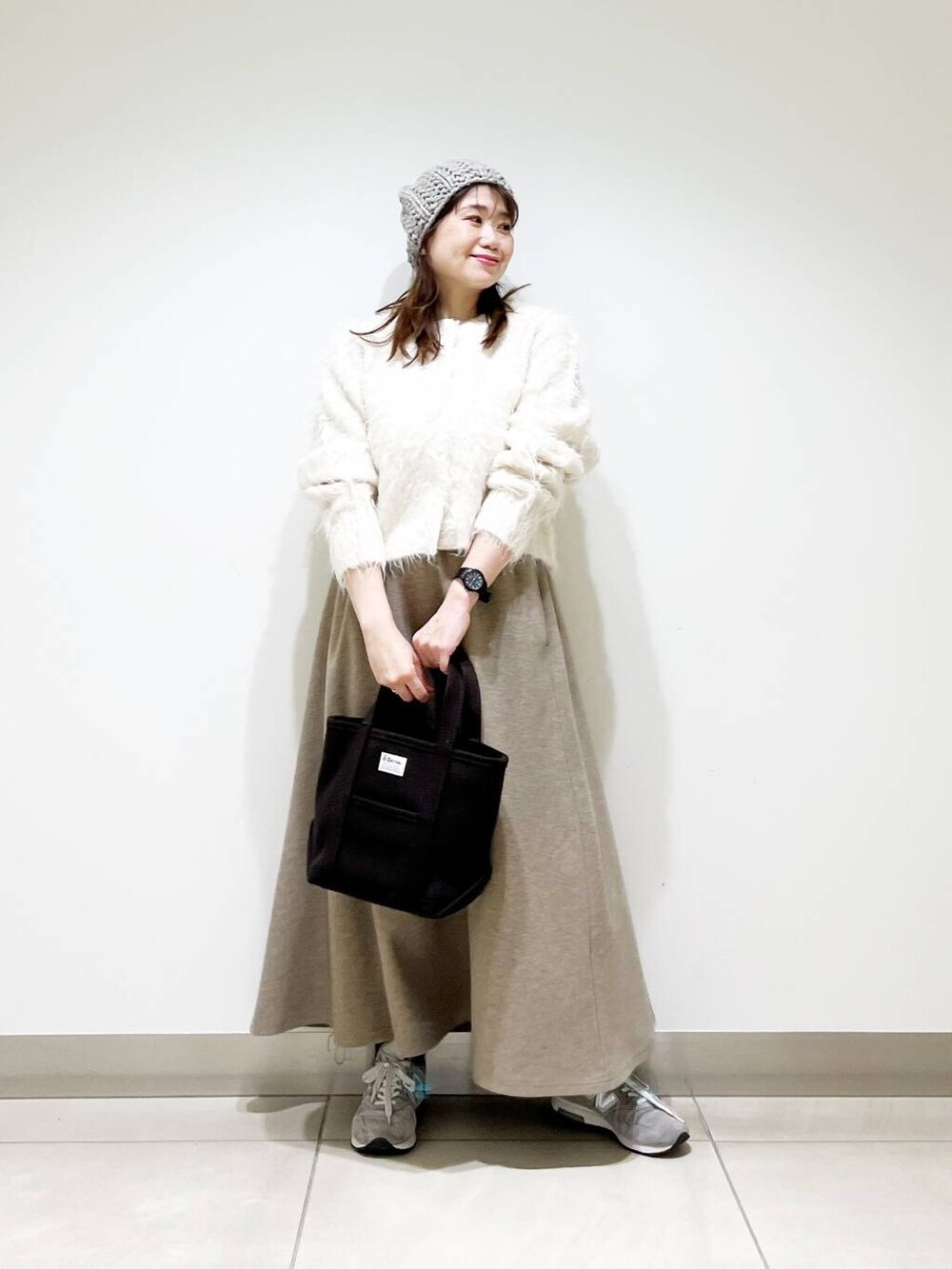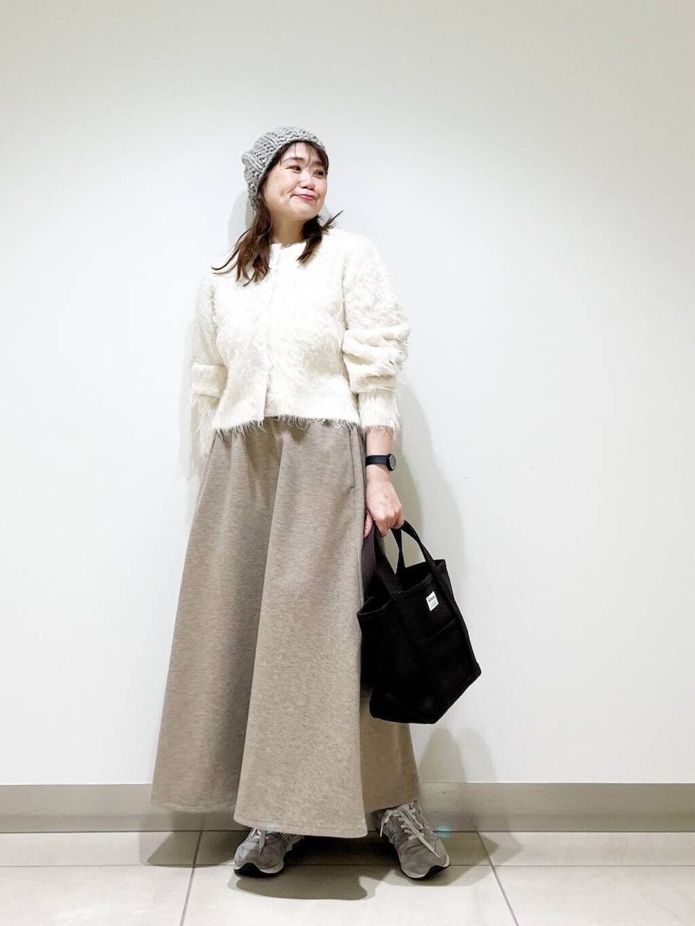 落ち着きあるライトベージュ、グレートーンで合わせたスタイリングにしました☆