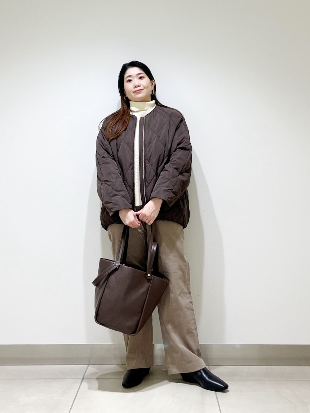 ノーカラーのダウンはタートルネックとの相性がとっても良いです☆