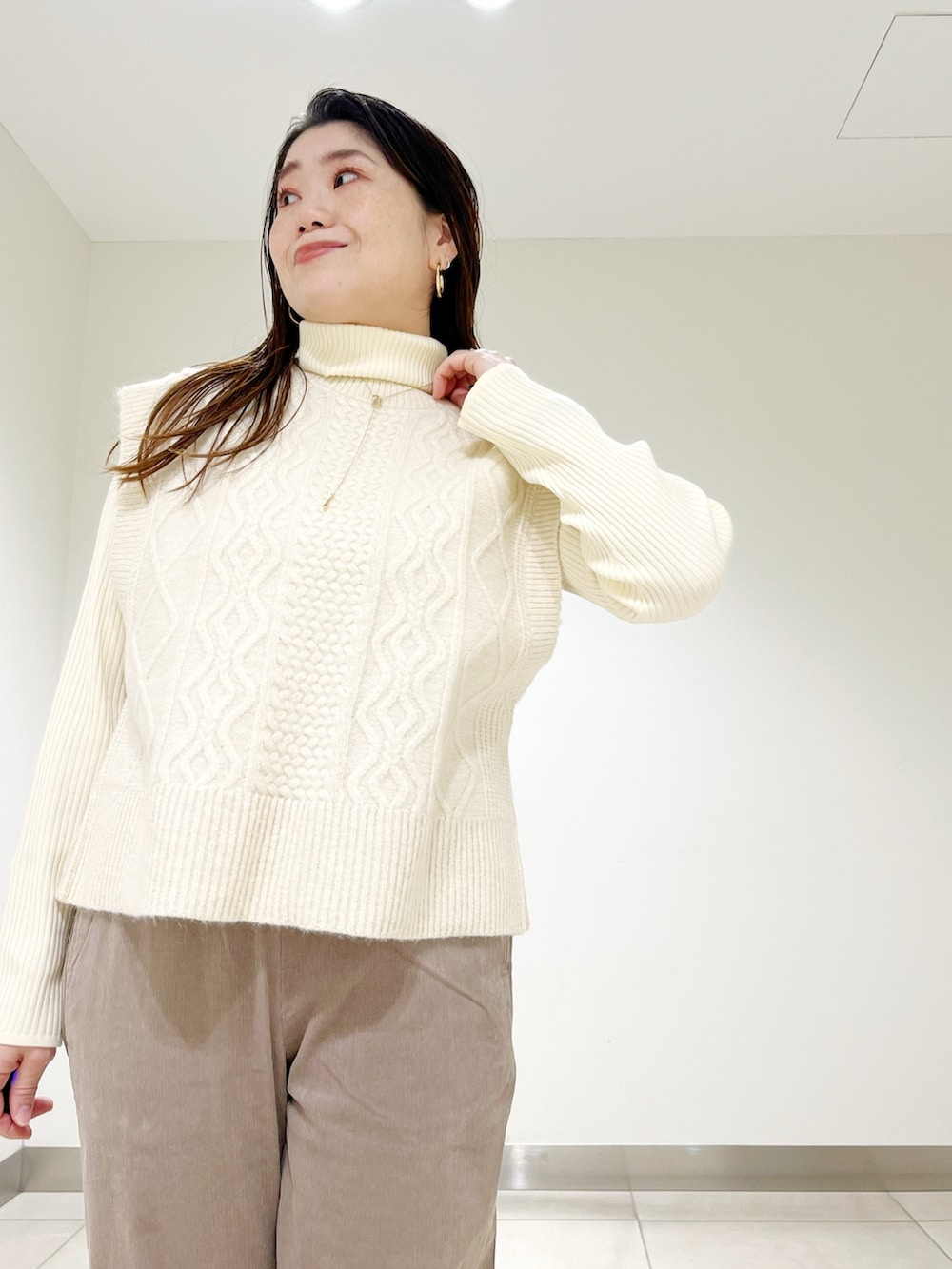ベストはタートルニット以外にもシャツ合わせにもオススメです!!
