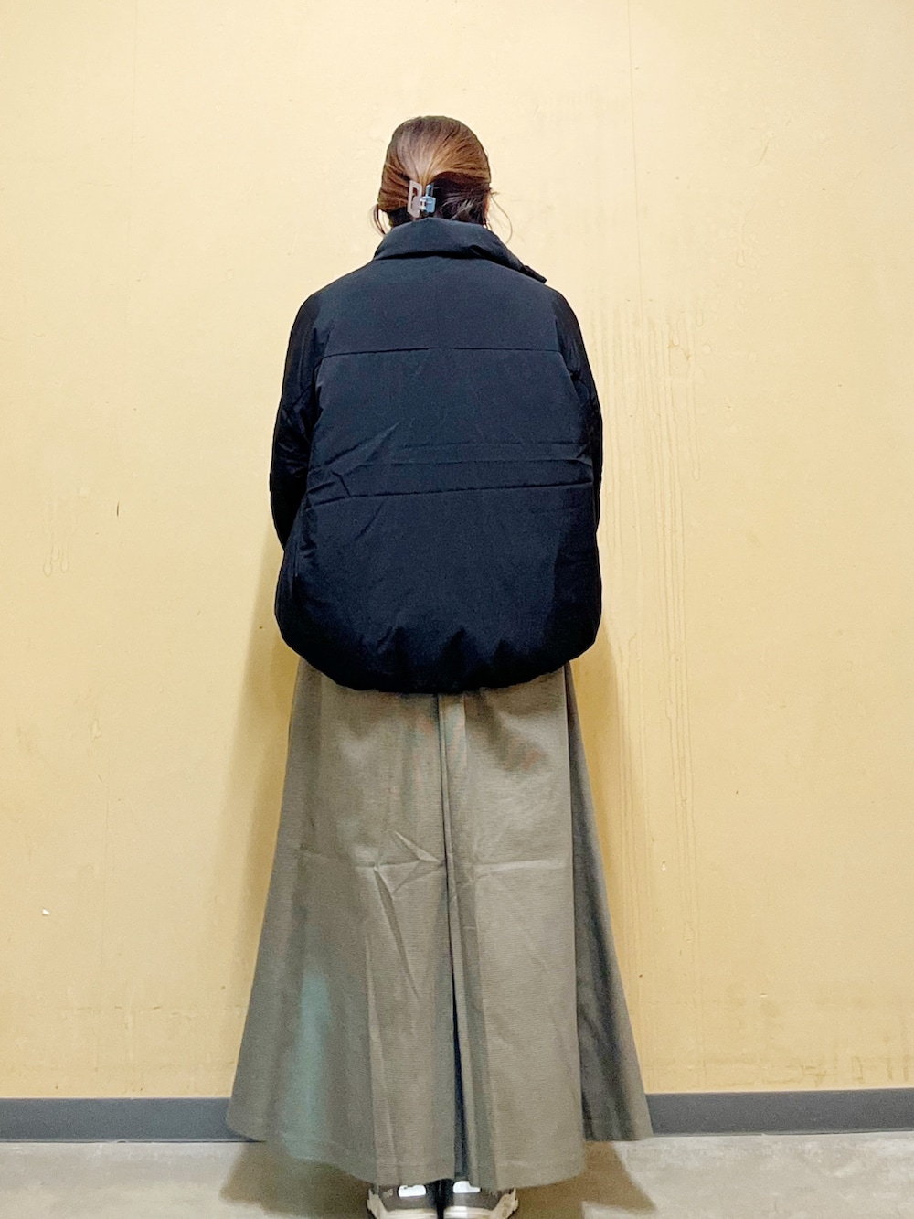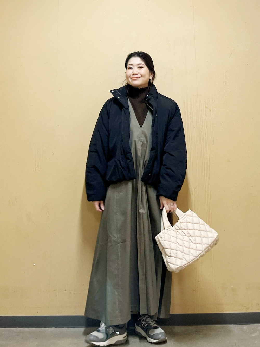 ゆったりしたジャンパーワンピースなので、ゆったりしたニットと合わせてもバッチリです☆