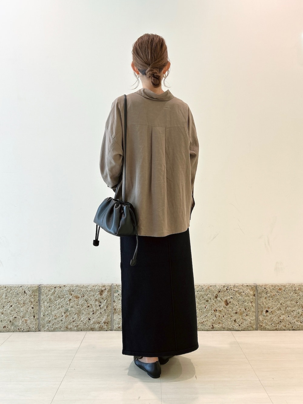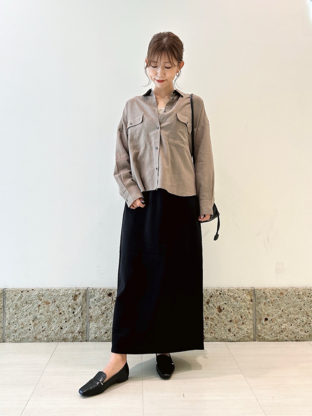ボトムにはストレートシルエットのスカートを。