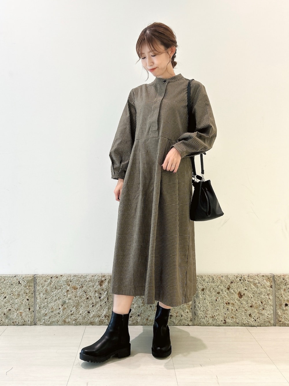 こちらのワンピは切り替えデザインとタック入りで立体感があり、