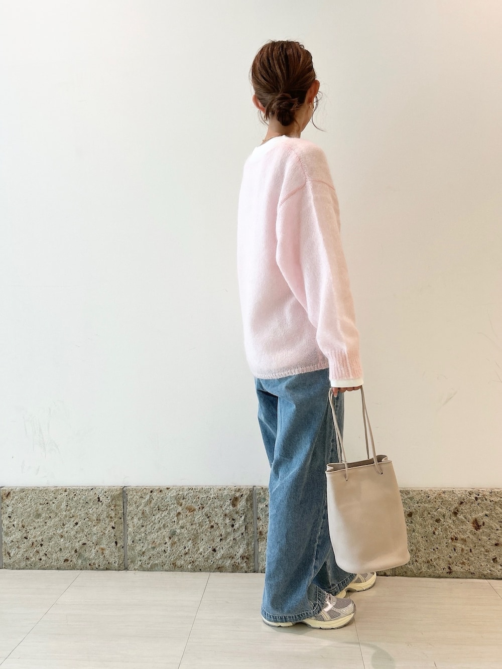 薄ピンクのカラーがコーディネートを明るく優しい雰囲気に
