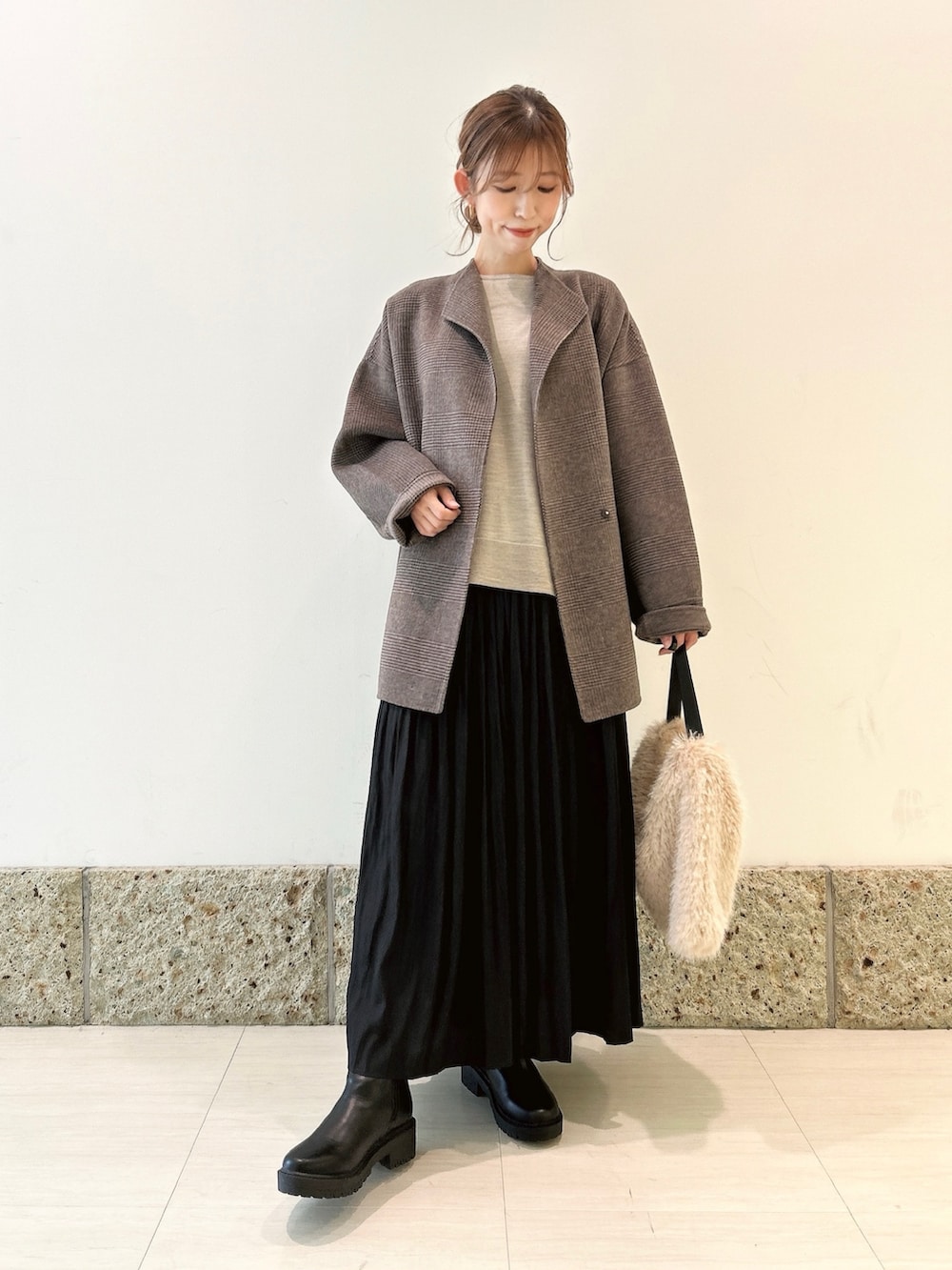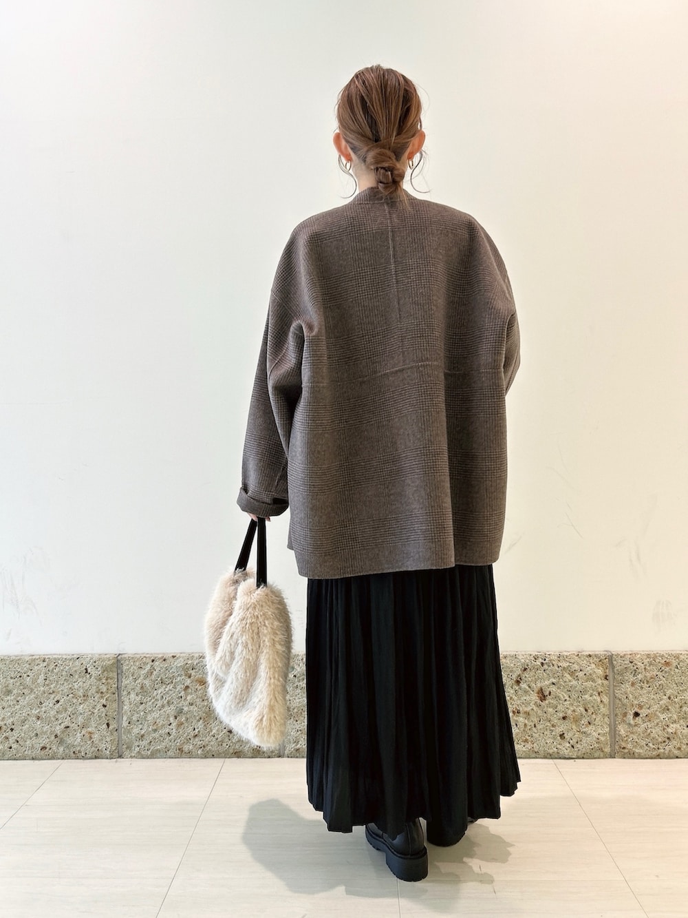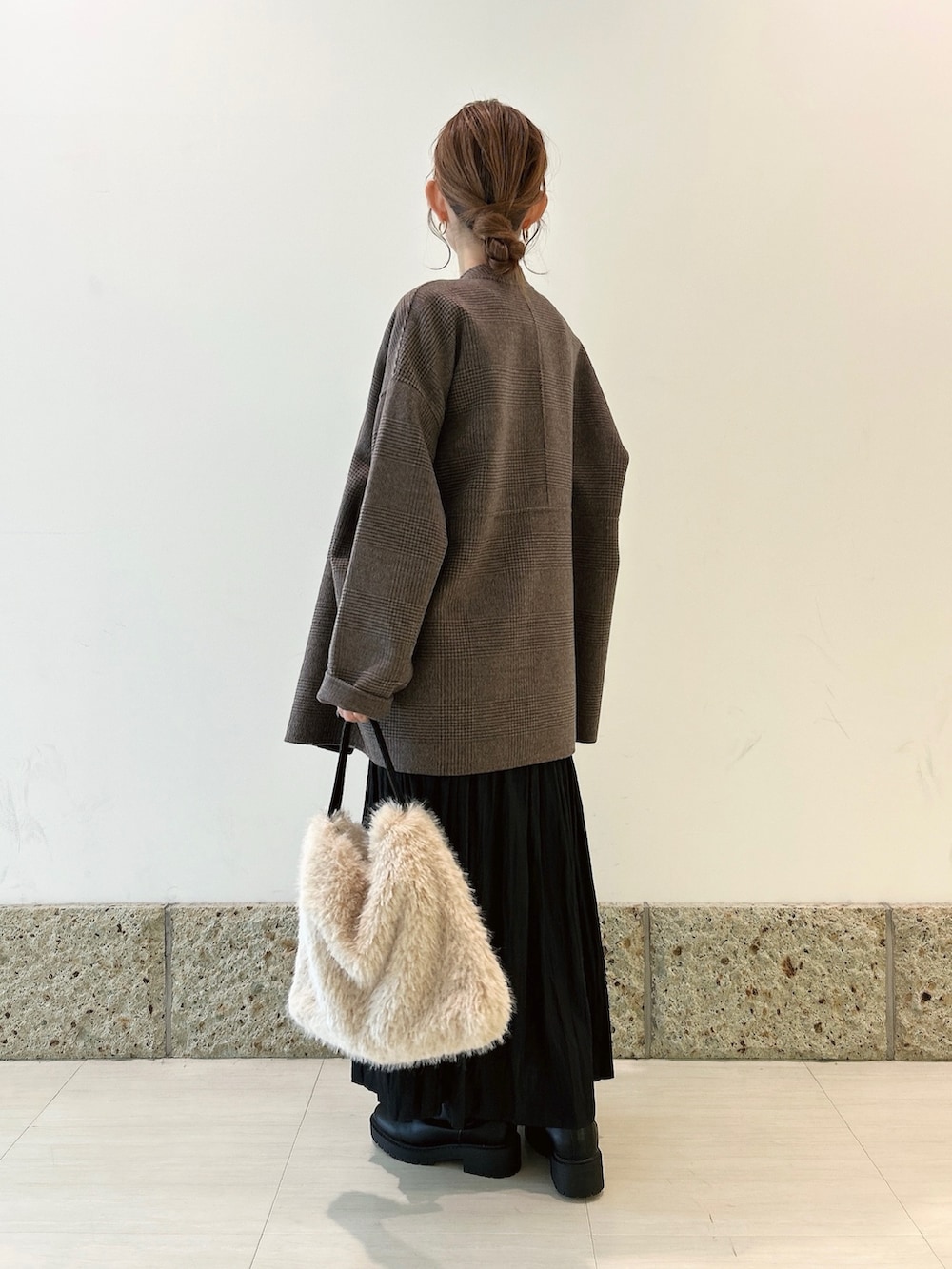 アウターはブラウンベースのチェック柄がなんとも可愛い一着。