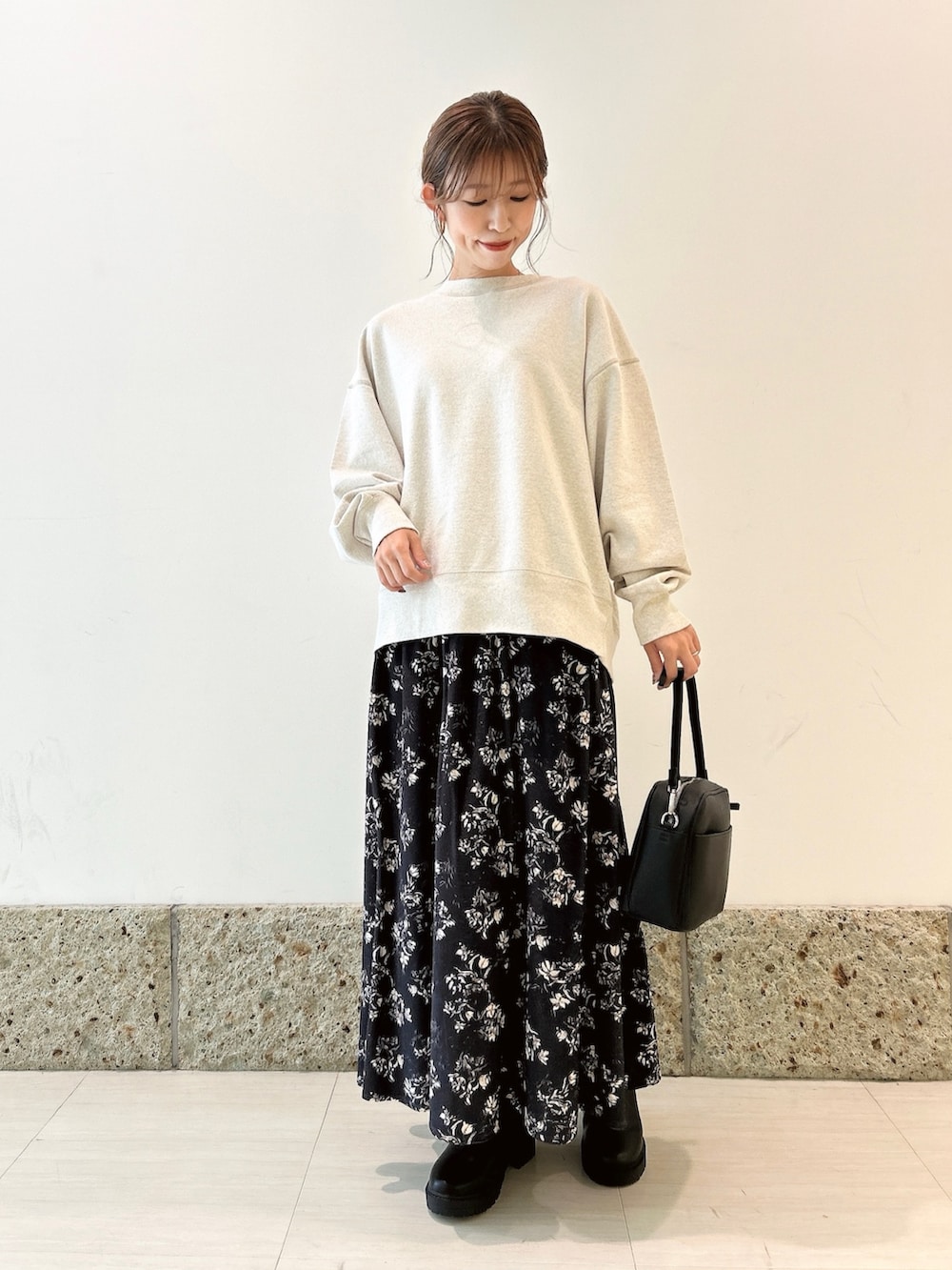 ボトムには花柄が大人可愛いスカートを。