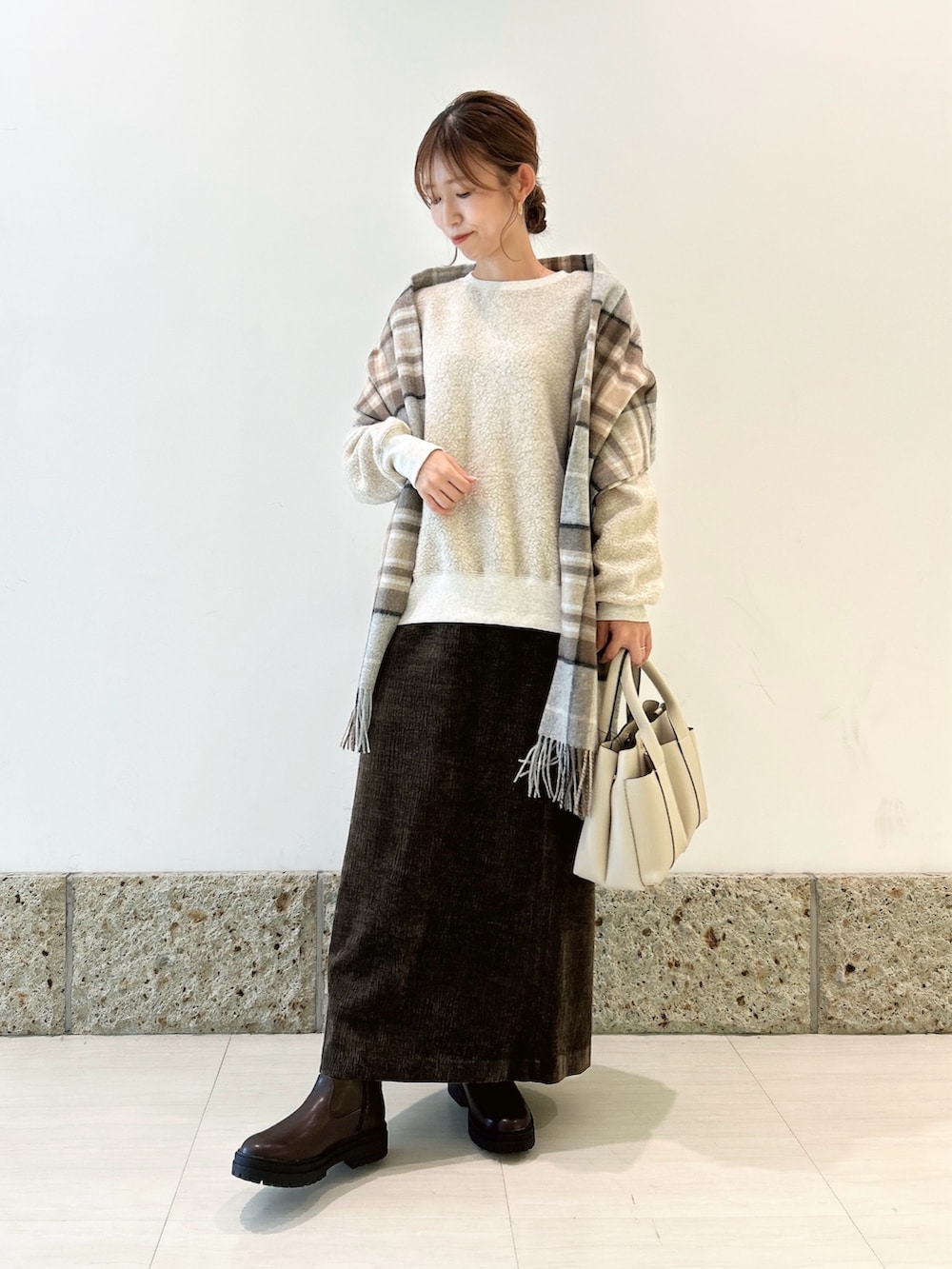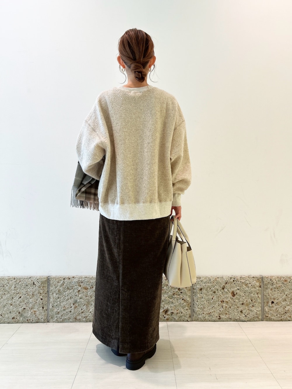 ボトムにはストレートシルエットのスカートを合わせて