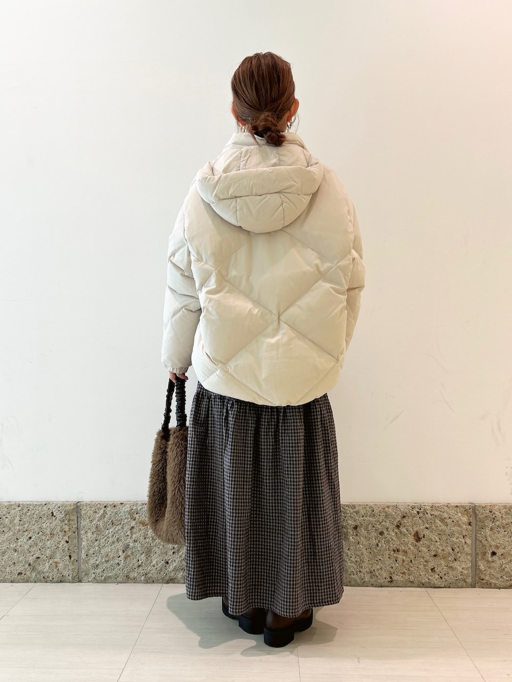 アウターにはショート丈のダウンを。