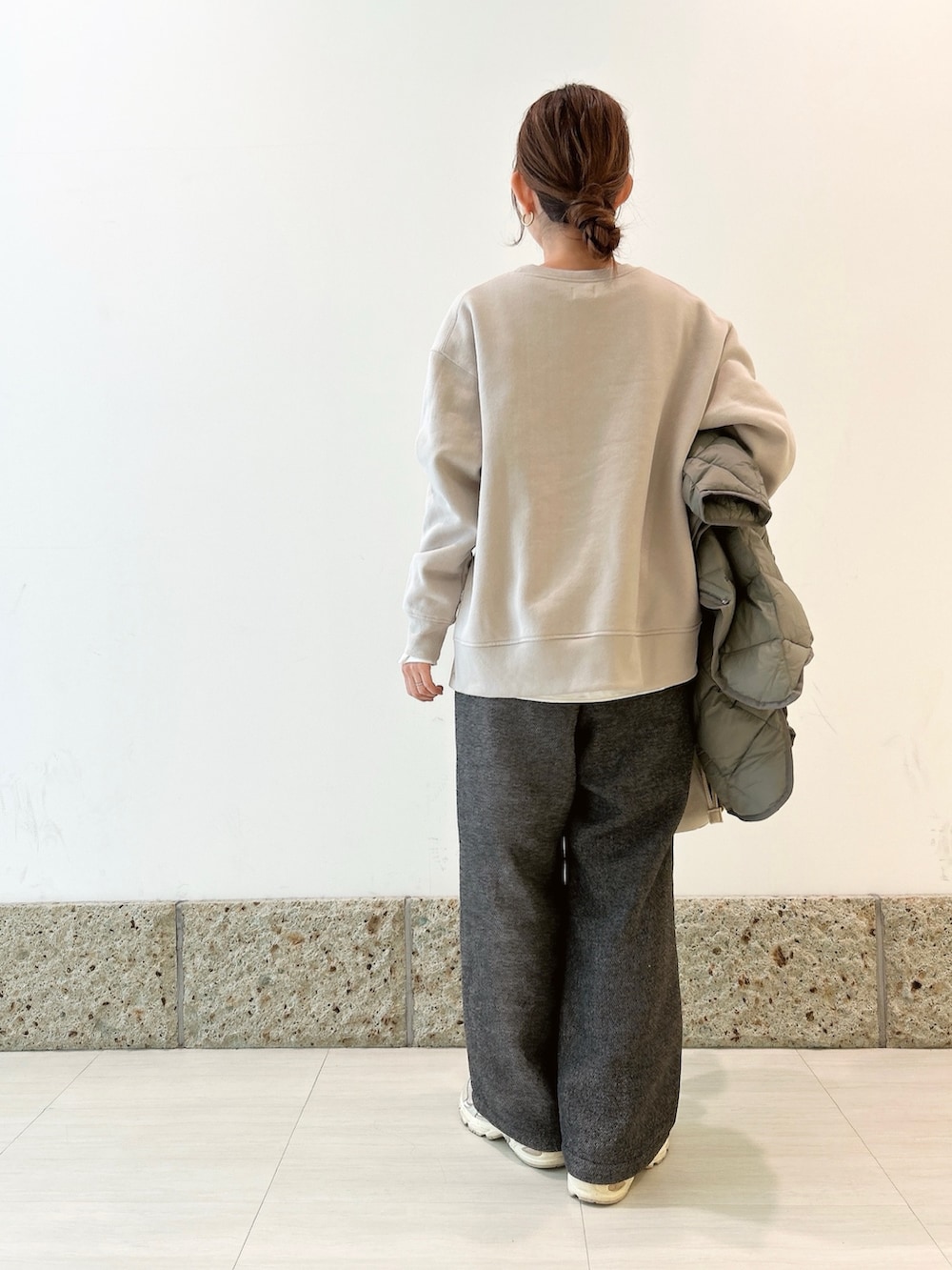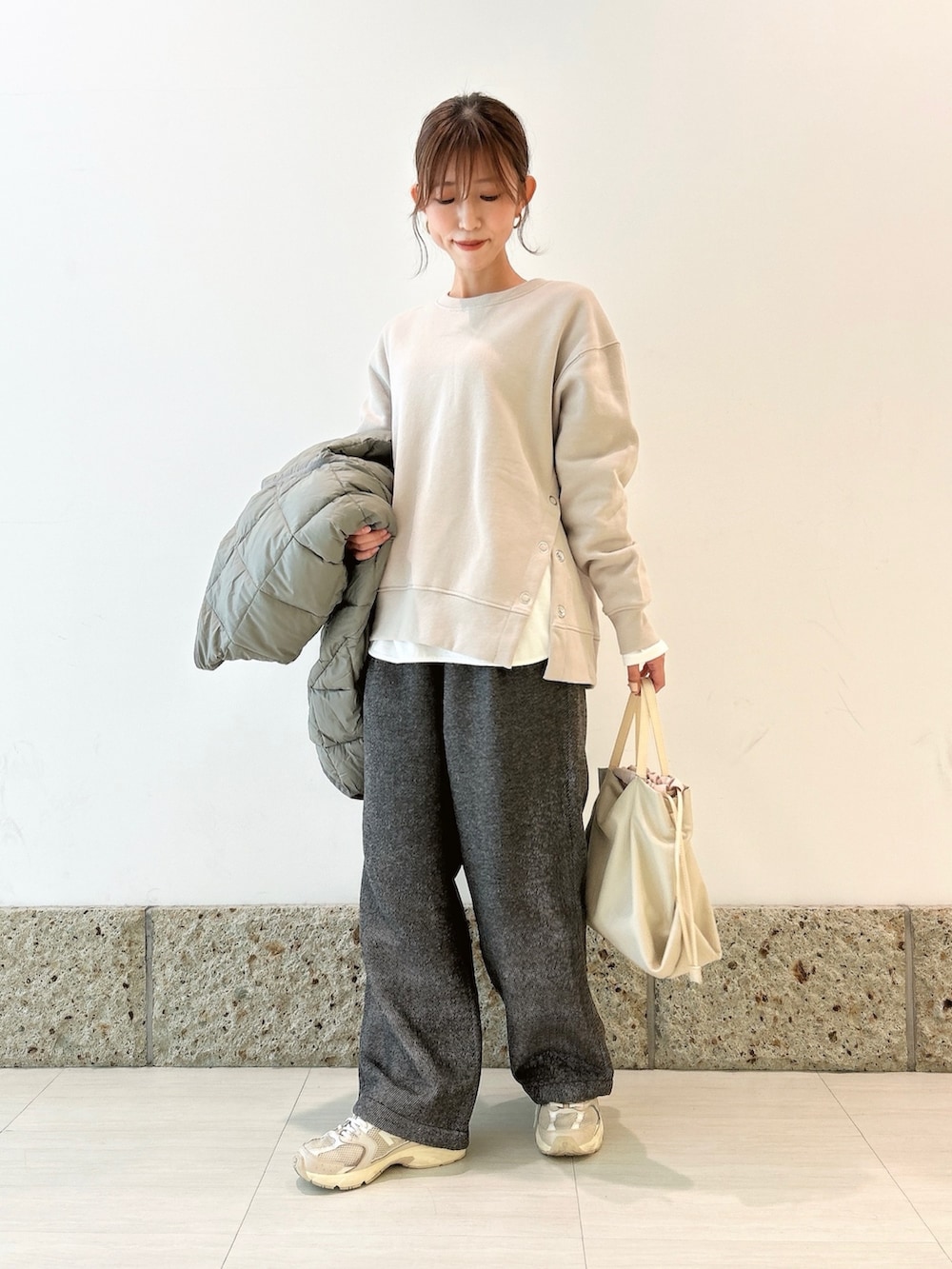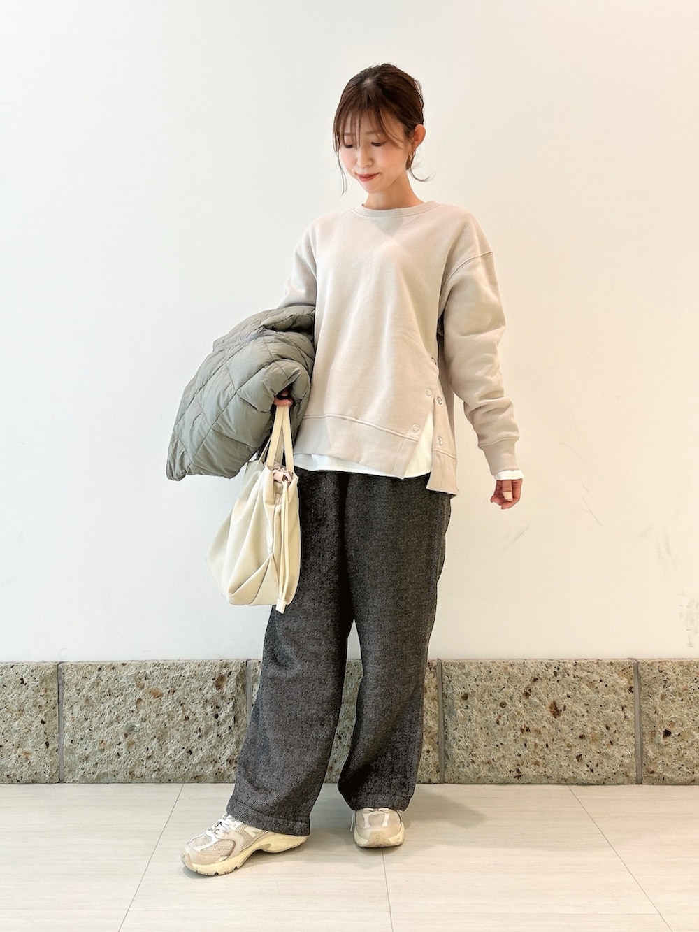 トップスはサイドボタンデザインが可愛いスウェット。