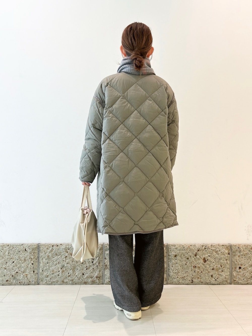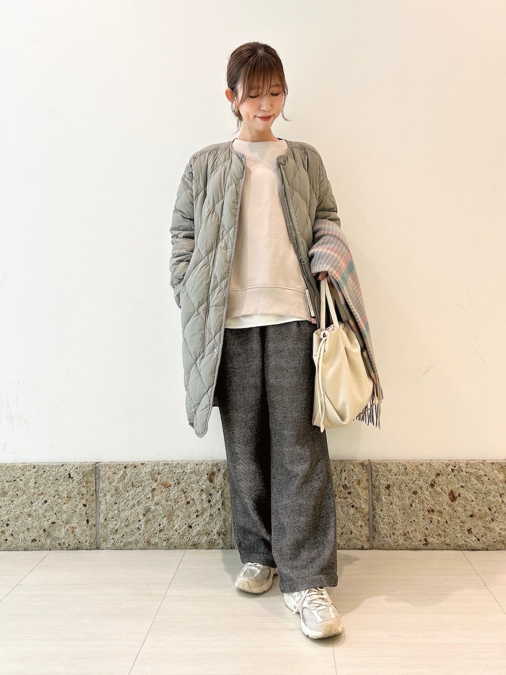 アウターにはとっても軽い着心地のライトダウンを。