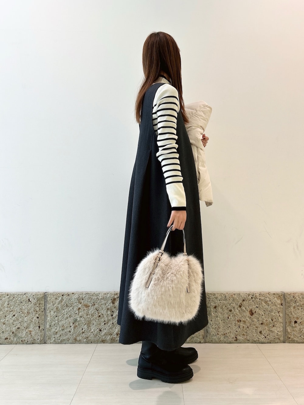 インナーにはボーダー柄が可愛いハイネックニットを。