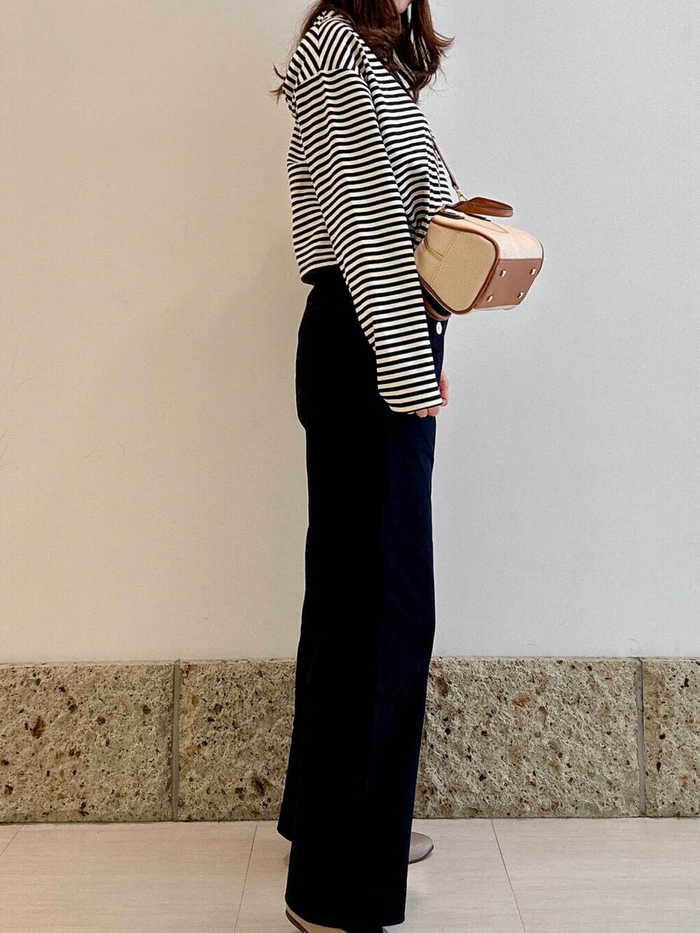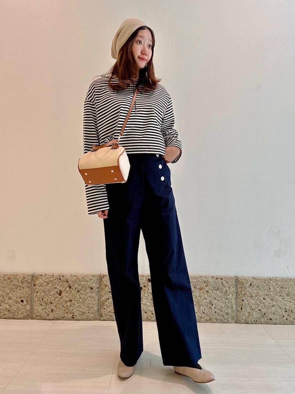 マリンパンツにボーダーを合わせ