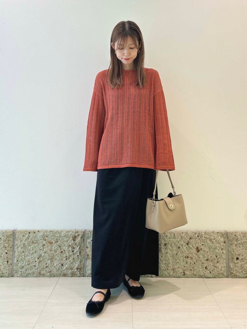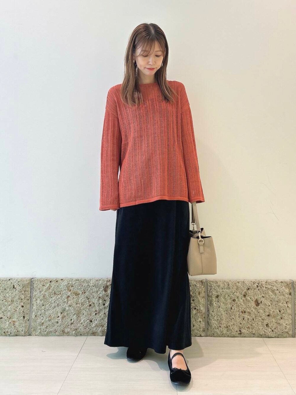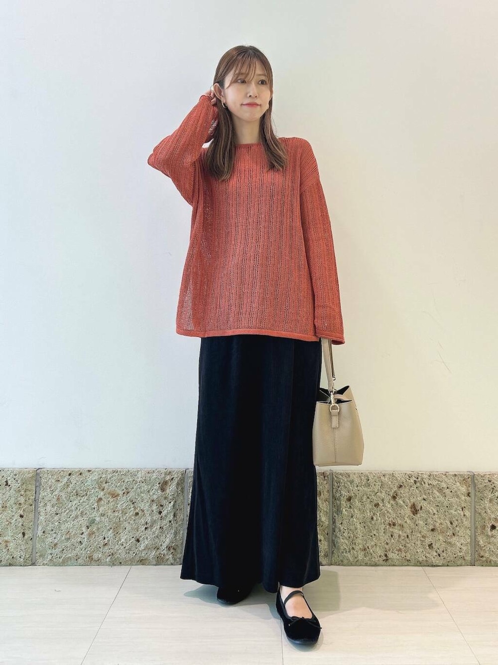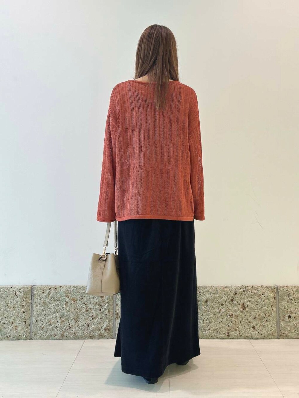 トップスのニットは綿とナイロンのしっかりめの生地で