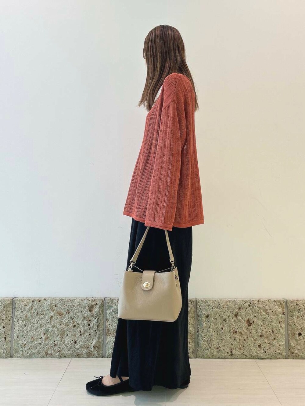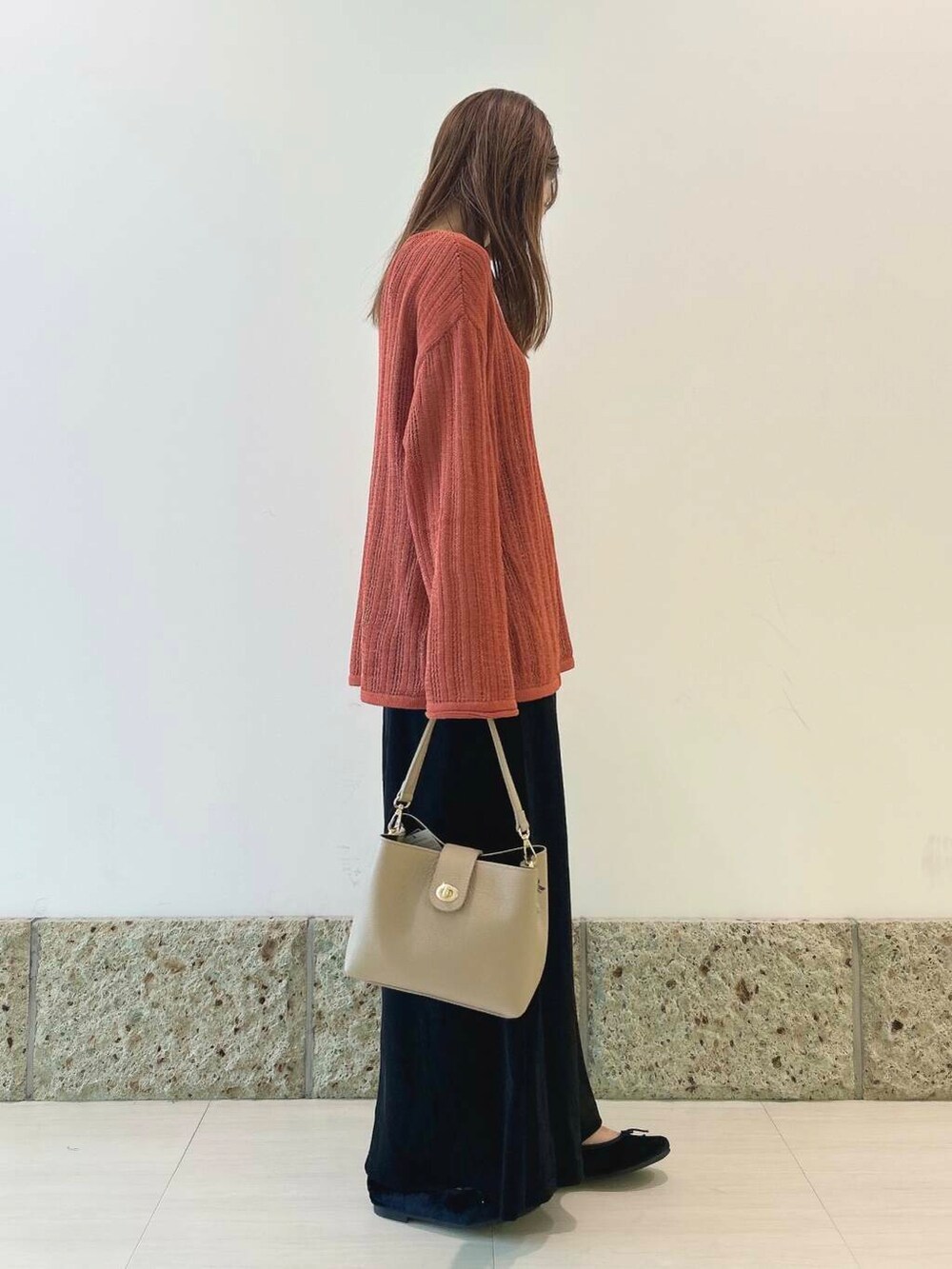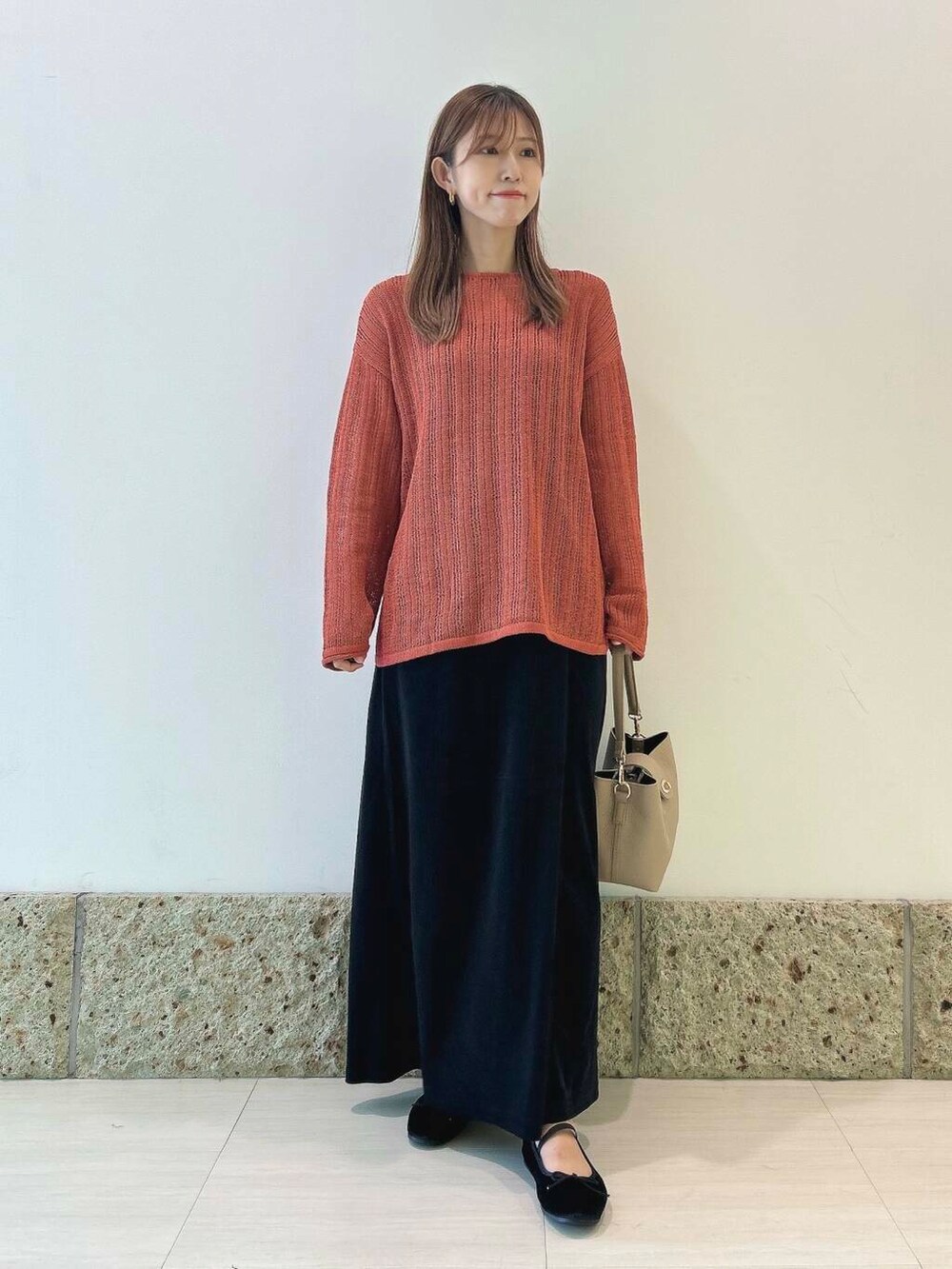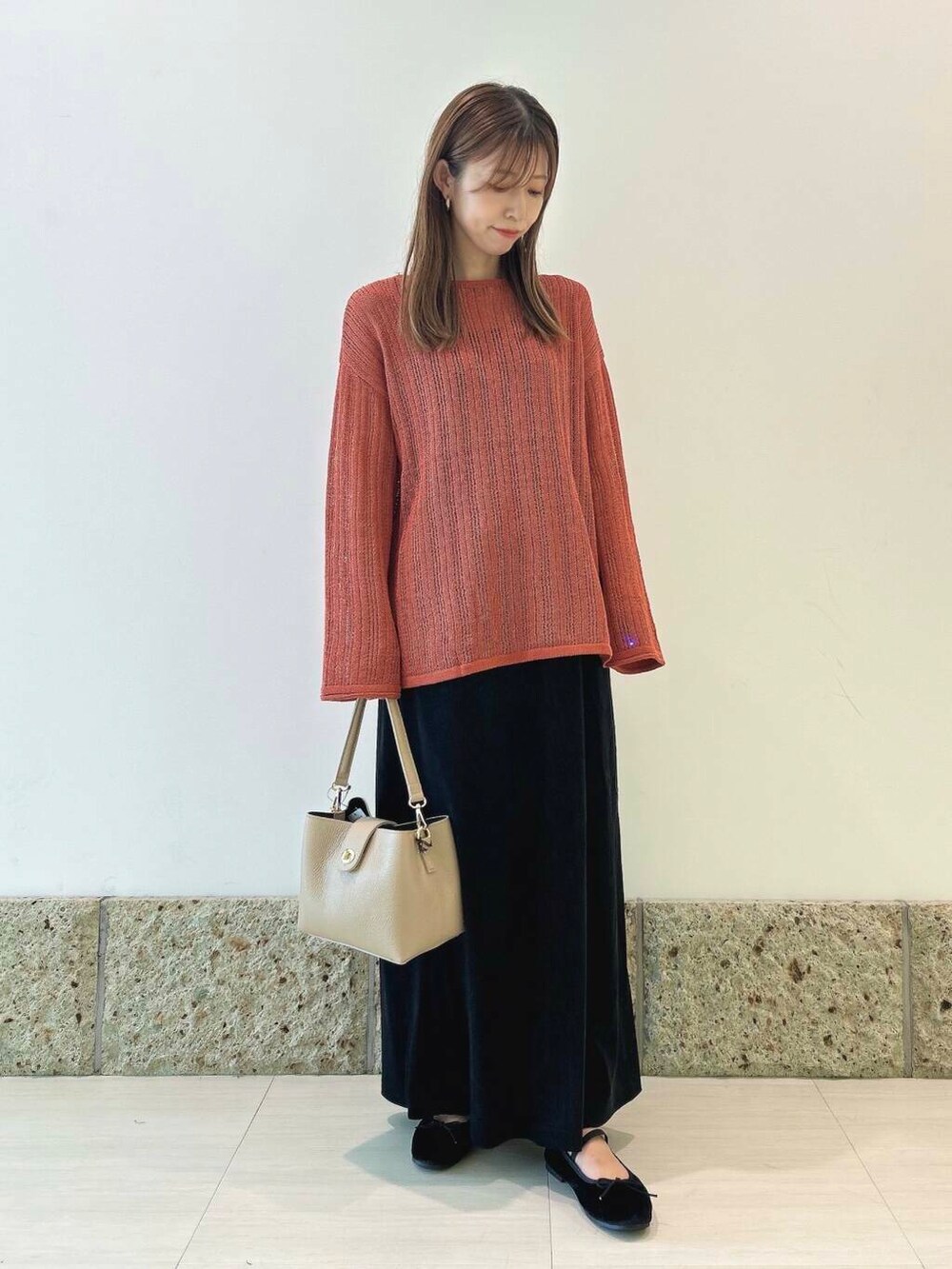 トップスのニットは綿とナイロンのしっかりめの生地で