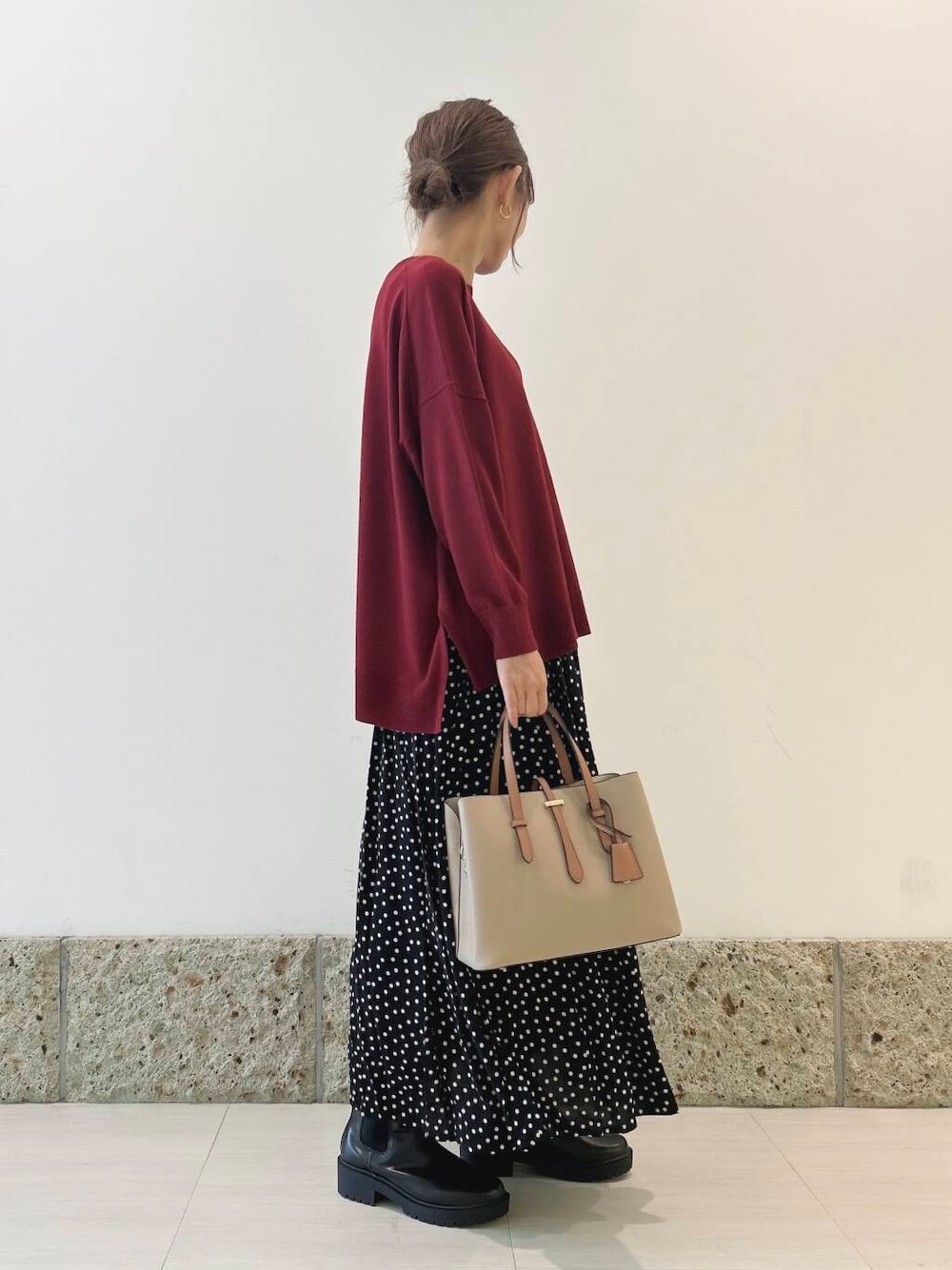 トップスは深みのあるボルドーで上品さが感じられるカラーです✨
