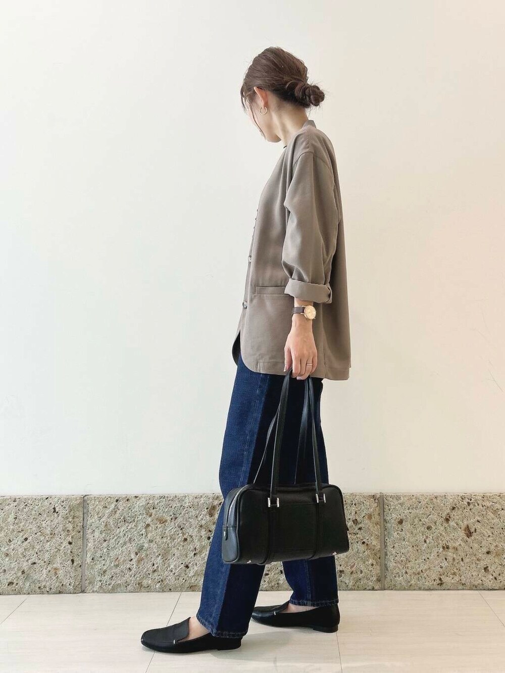こちらのジャケットはてろっとした柔らかいマットな生地感なので、カチッとしすぎずデイリー使いしやすいアイテムです!